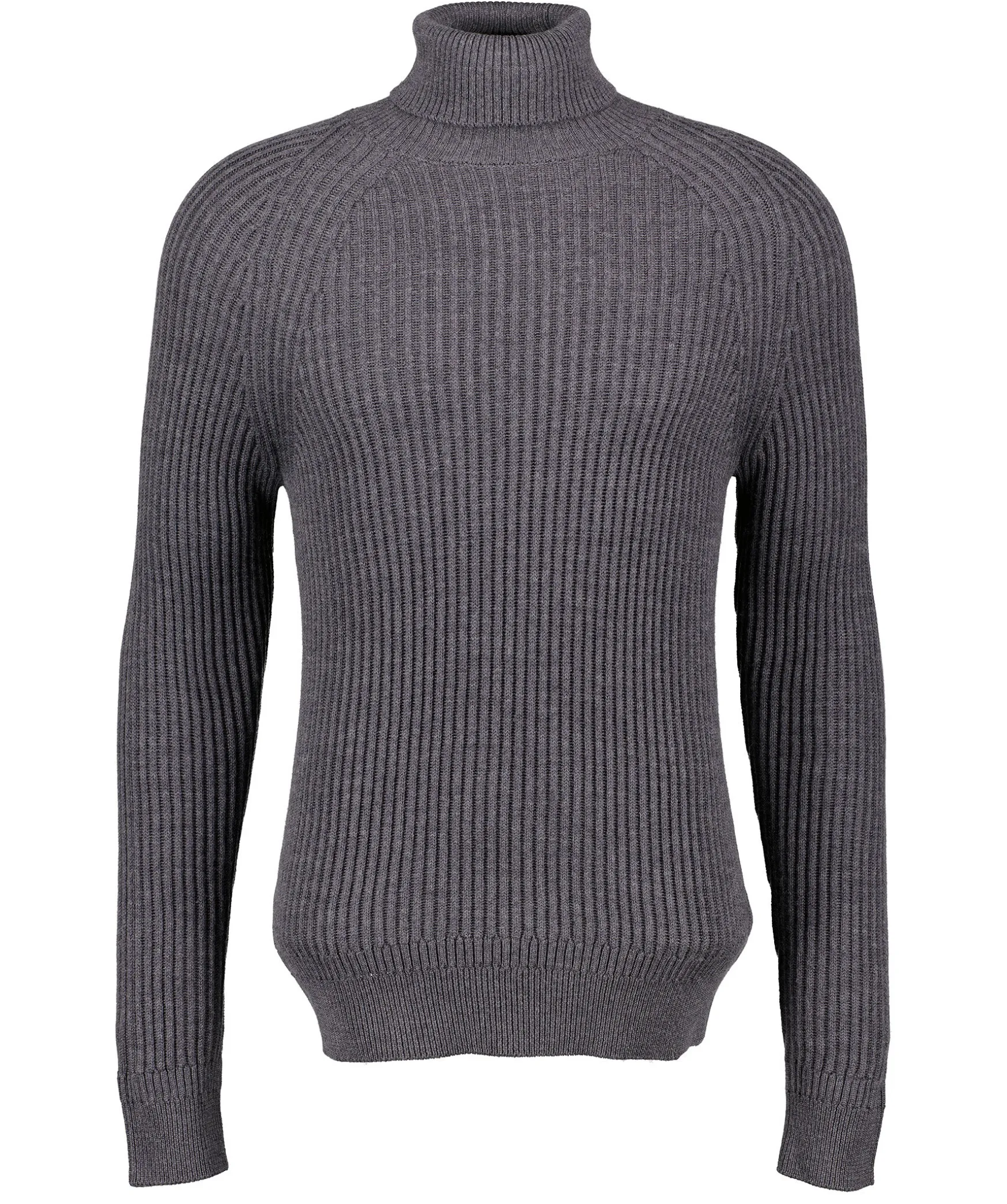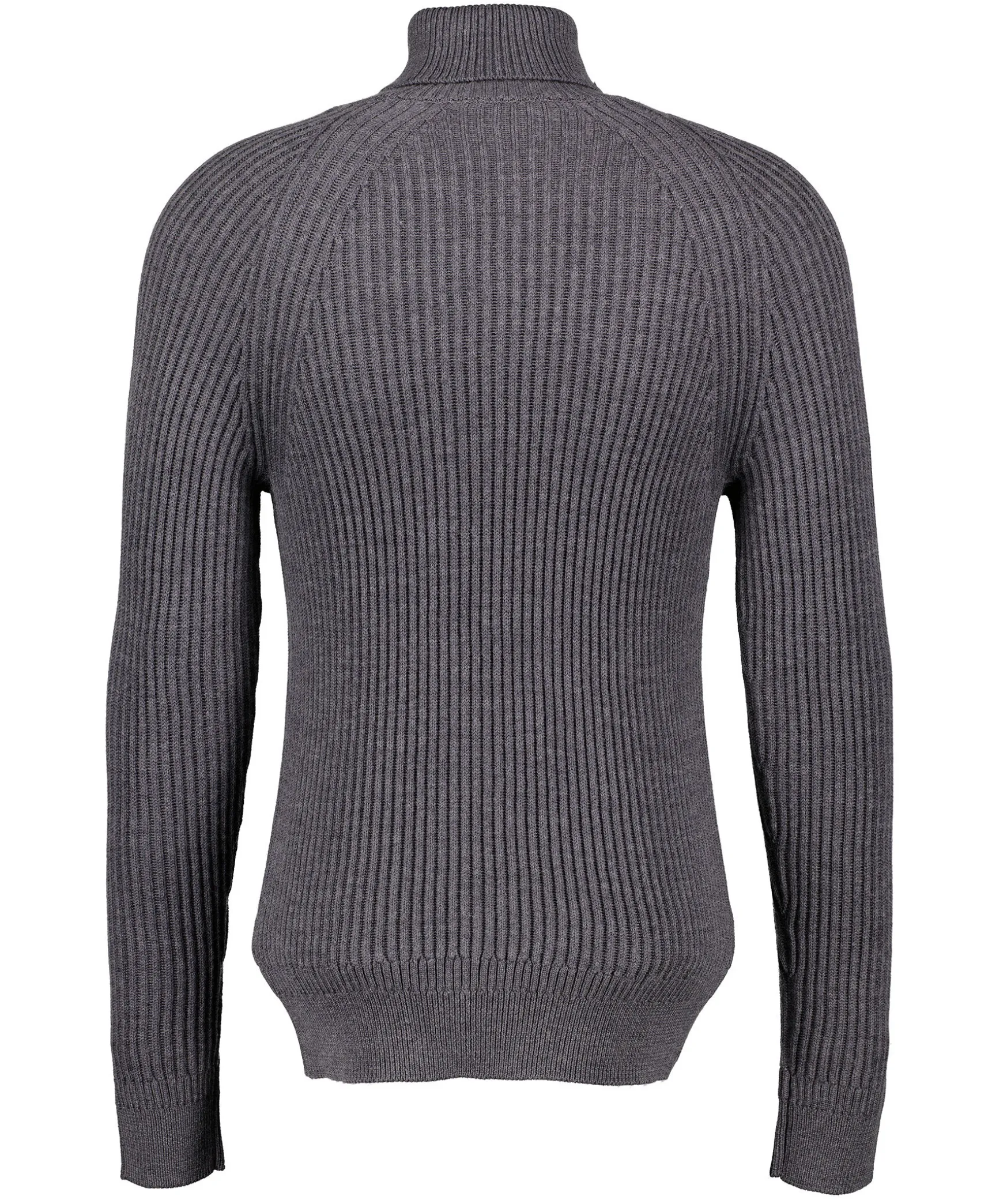 Morkgra Melerad Ribbstickad Polotroja Fran Zanone. Ribbstickad Krage, Mudd Vid Arm- Och Plaggslut. Tillverkad I 100% Virgin Wool.