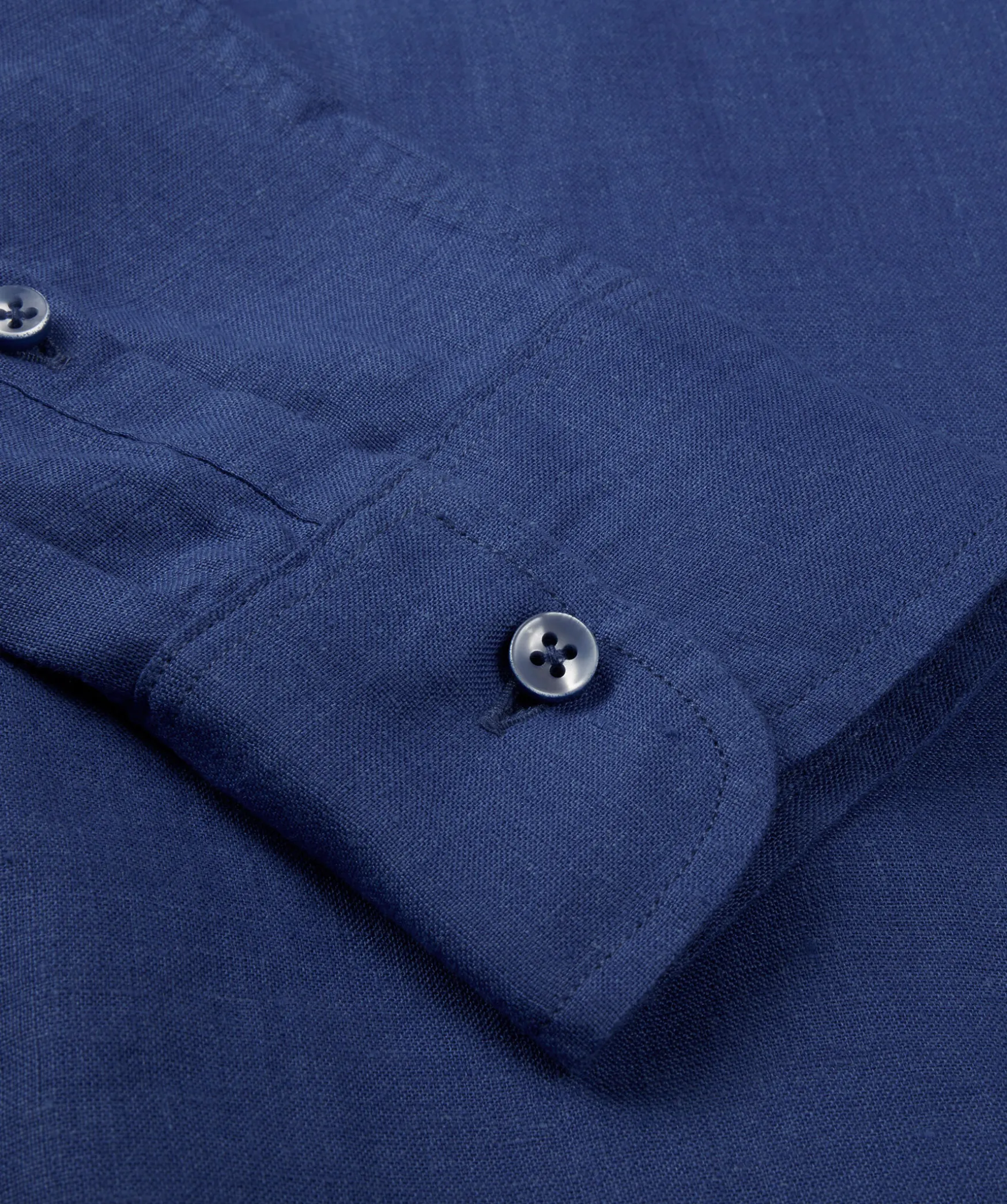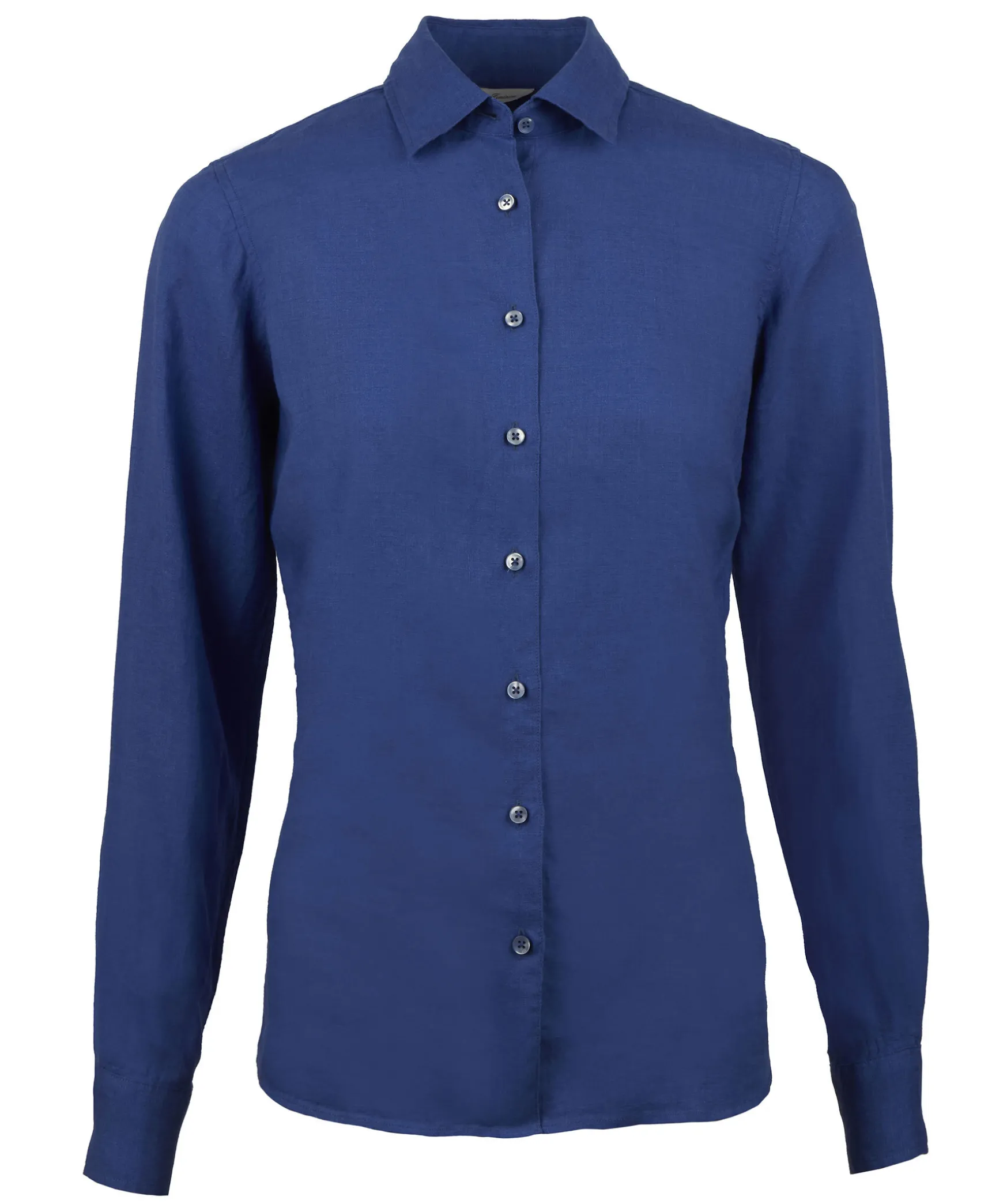 Bla Skjorta Med Feminin Passform. Tillverkad I Linne Med En Slat Knappsla, Enkla Manschetter Och Klassisk Krage.