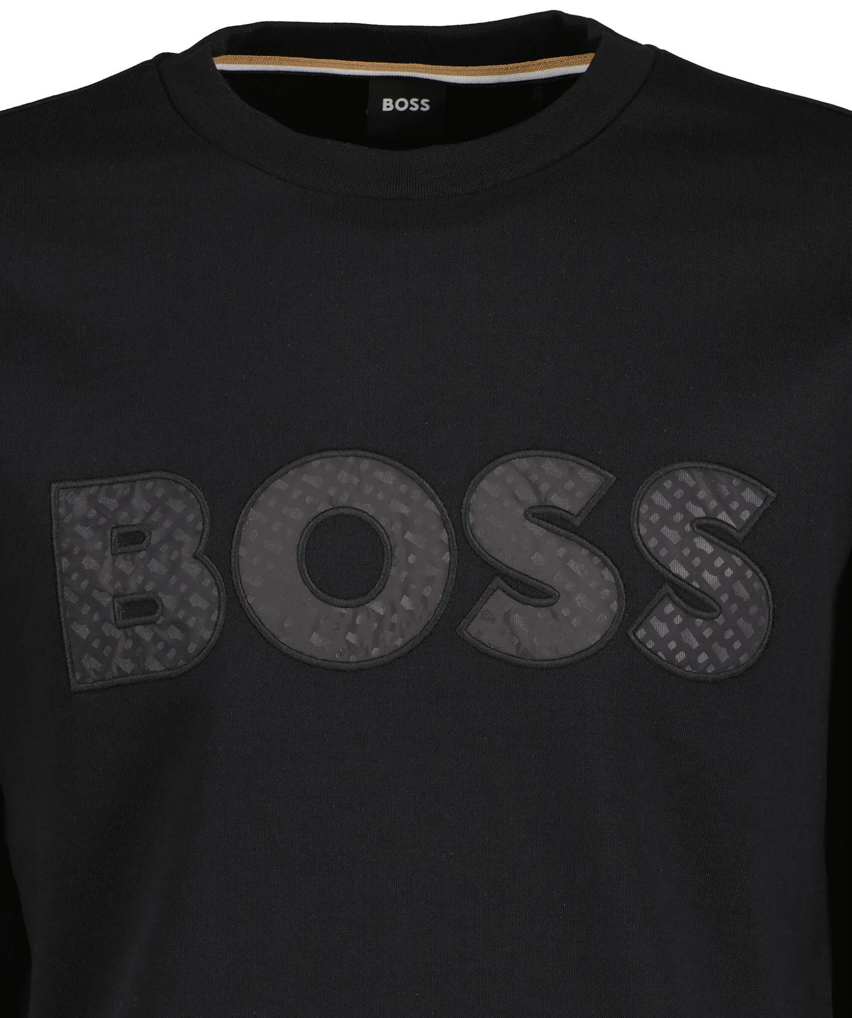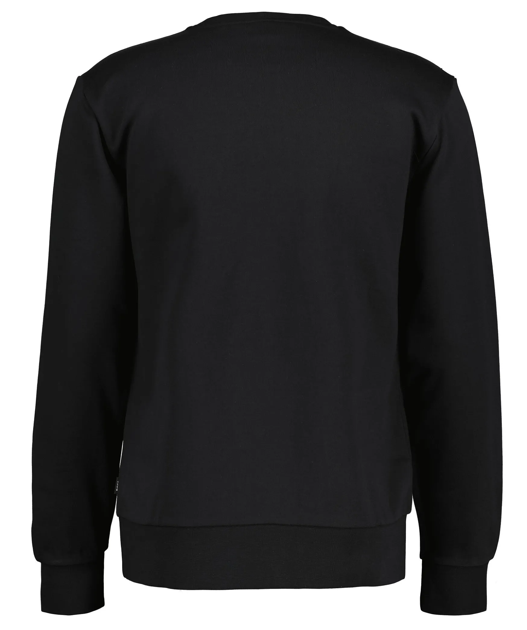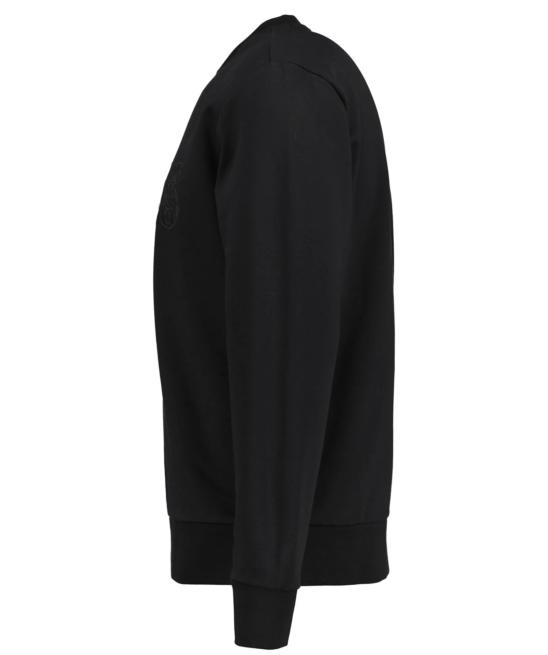 Svart Sweatshirt Fran Boss Black. Tillverkad I 100% Bomull. Svart, Stor Broderad Logotyp Med Monogrammonster Pa Framsidan. Ribbstickad Halsringning, Muddar Samt Plaggslut.