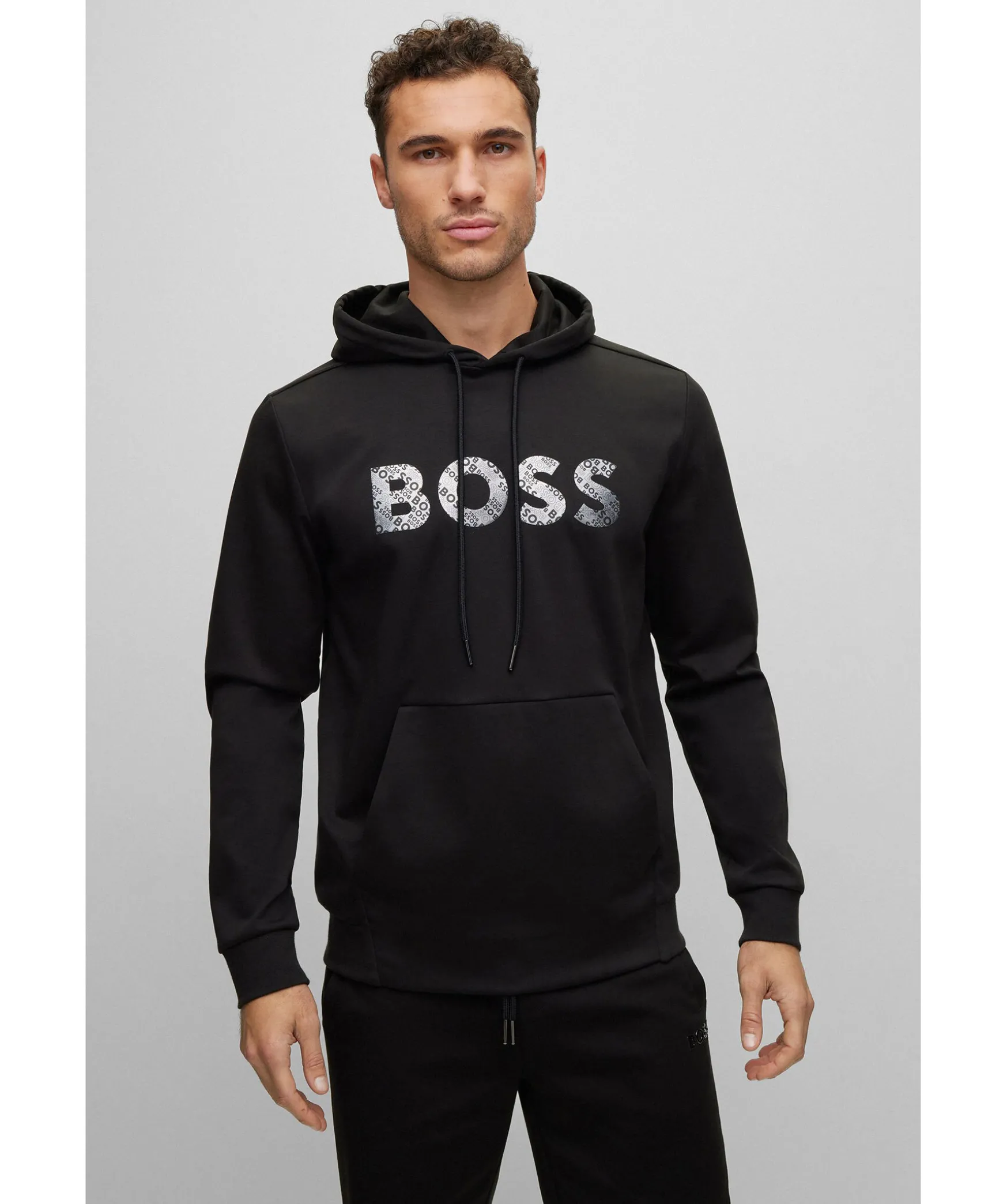 Svart Hoodie Med Avslappnad Passform Fran Boss Green. Tillverkad I Bomullsrik Jersey Och Har Ett Tryck Med Spegeleffekt Och Logotyp Monogram Pa Brostet. Avslappnad Passform, Kanguruficka Pa Magen. Langa Armar, Ribbstickade Muddar I Armslut Och Plaggslut Samt Snorning I Luvan.