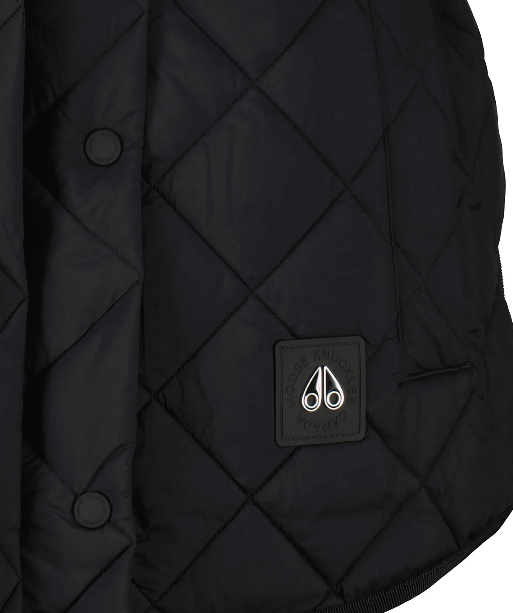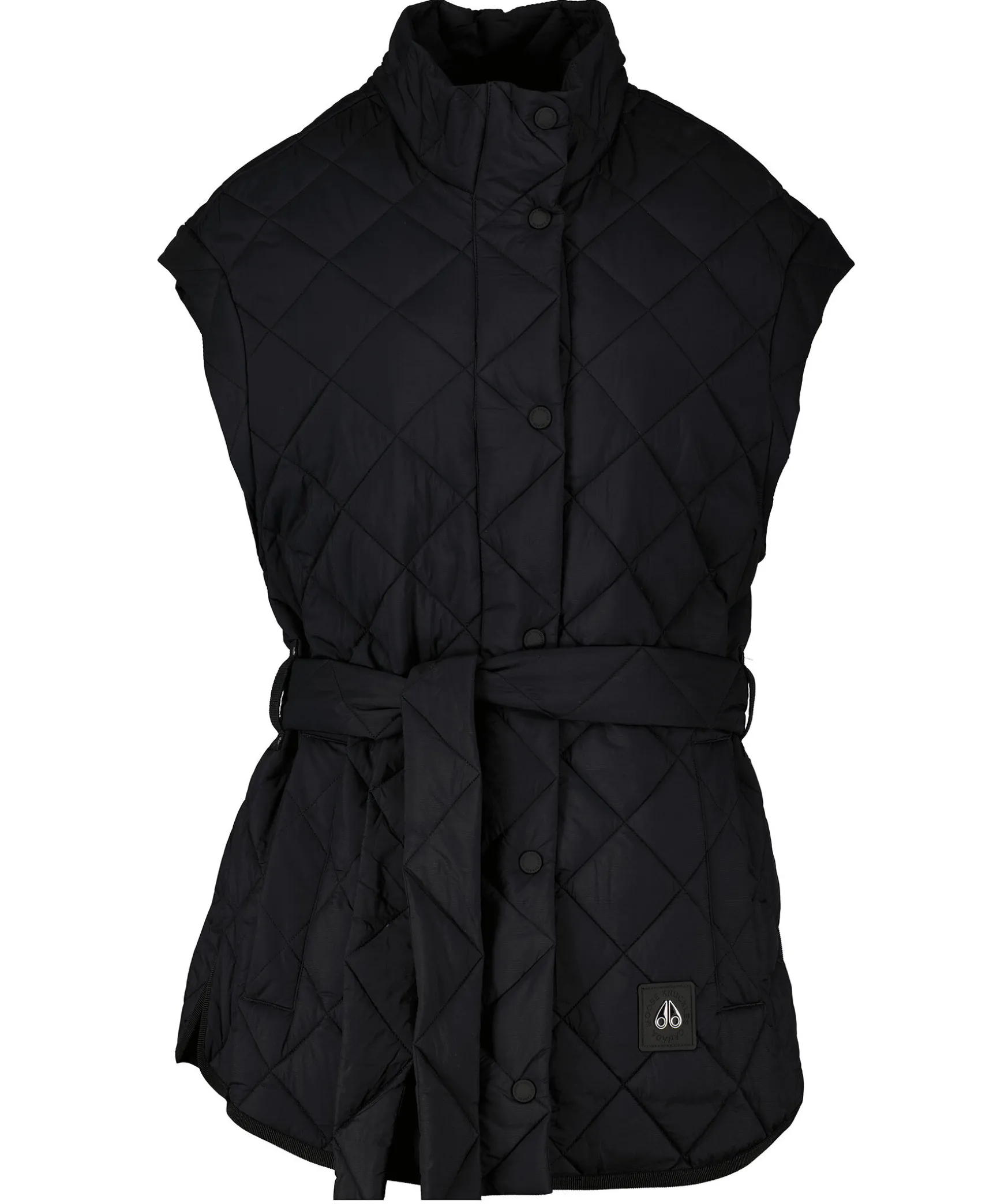 Svart Vast Fran Moose Knuckles I Sportig Stil Och Avslappnad Passform. Tillverkad I Nylon. Latt Diamant-Quiltat Monster. Avtagbart Skarpbalte. Stativkrage, Tva Sidfickor Samt Liten Logotyp Vid Plaggslut. Vasten Stangs Med Knappar.