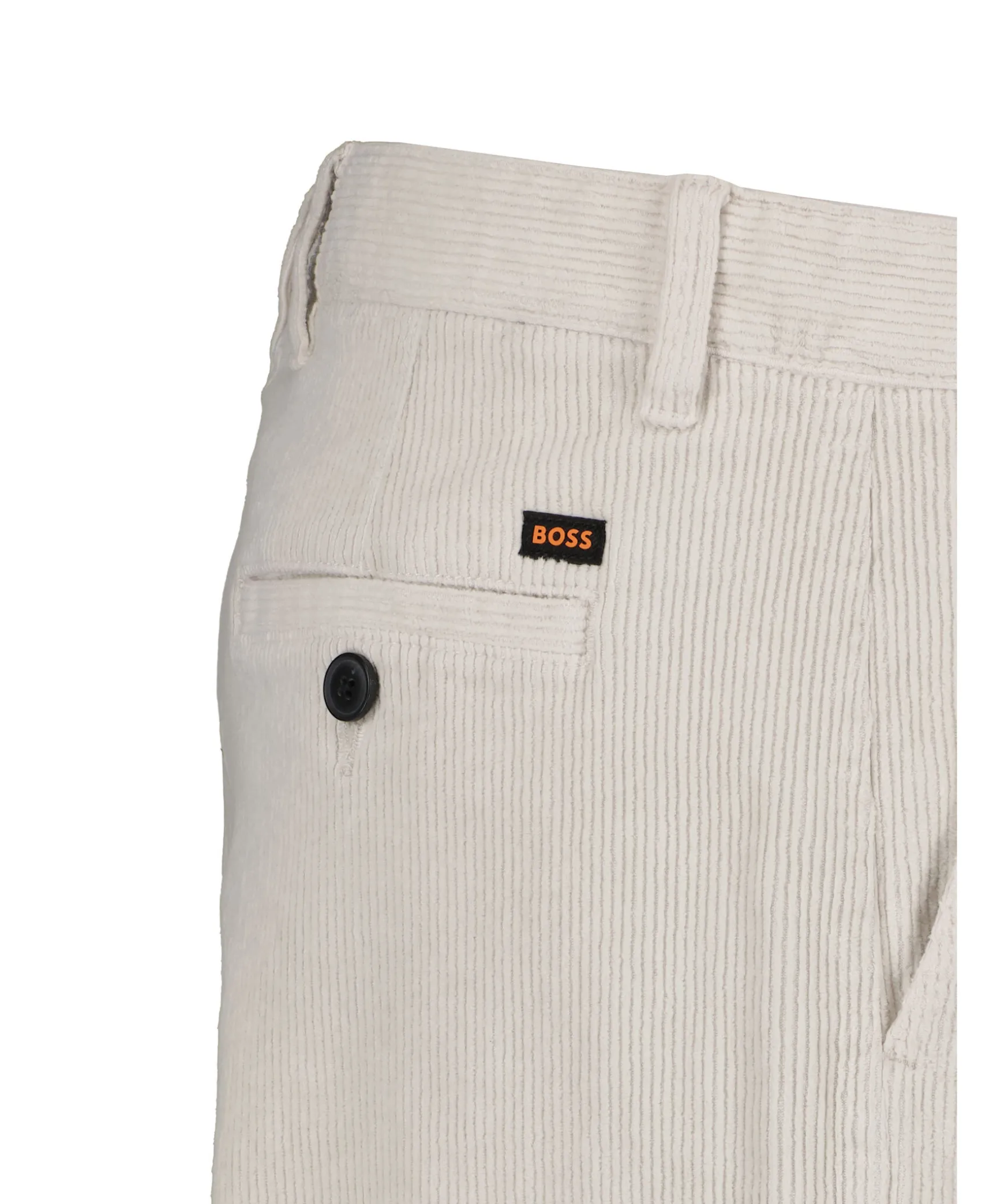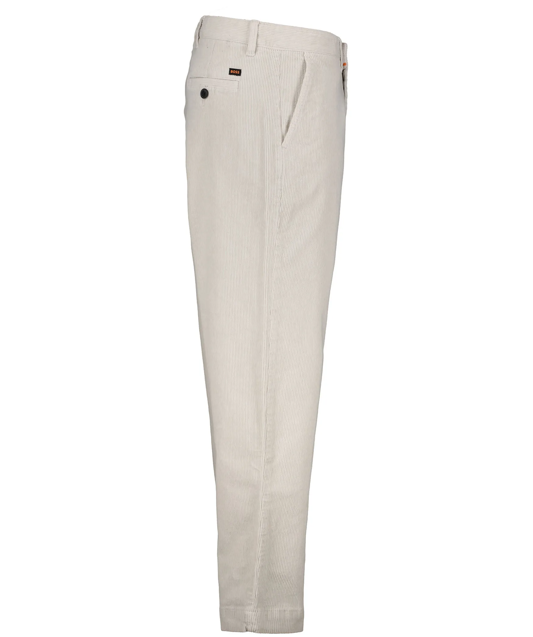 Ljusgraa Beskurna Manchesterbyxor Fran Boss Orange I Relaxed Fit. Tillverkade Av Stretchig Bomull. Fyra Fickor, Balteshallor I Midjan. Stangs Med Knapp Och Dragkedja.