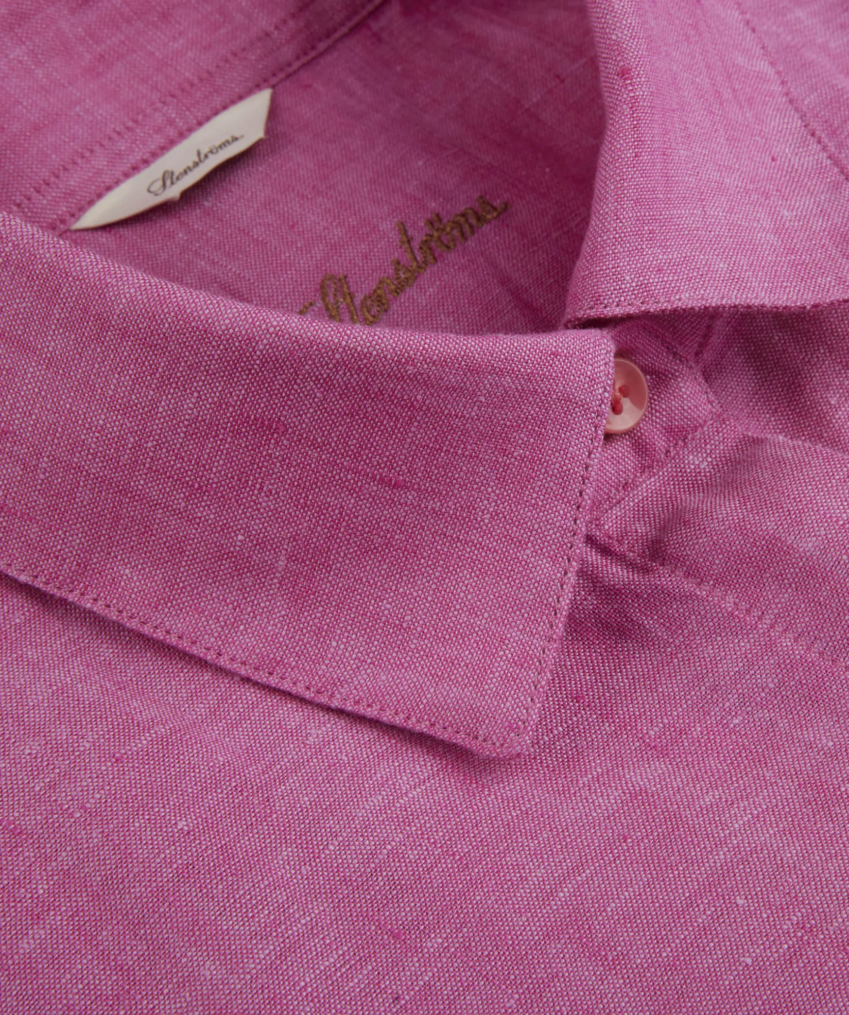 Rosa Skjorta, Med En Popover Los Passform, Tillverkad Av 100% Linne. Detaljerad Med Dold Knappsla Och Trekvartsarm.