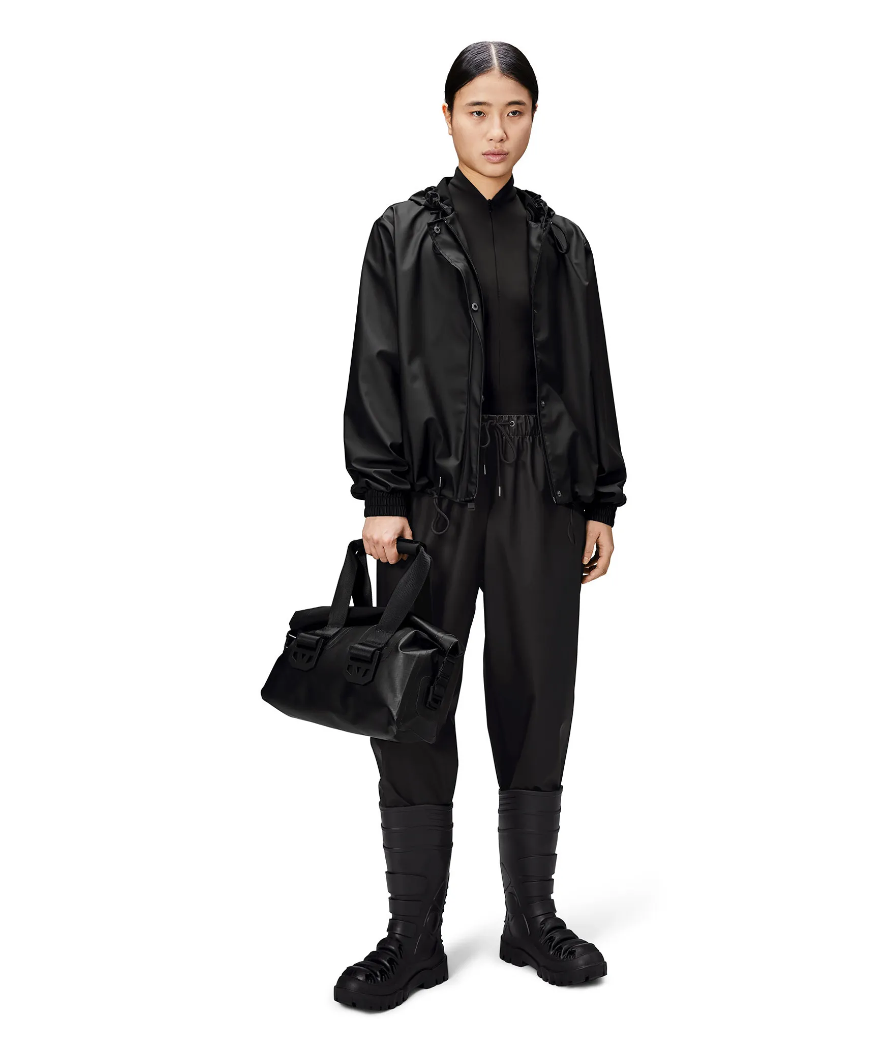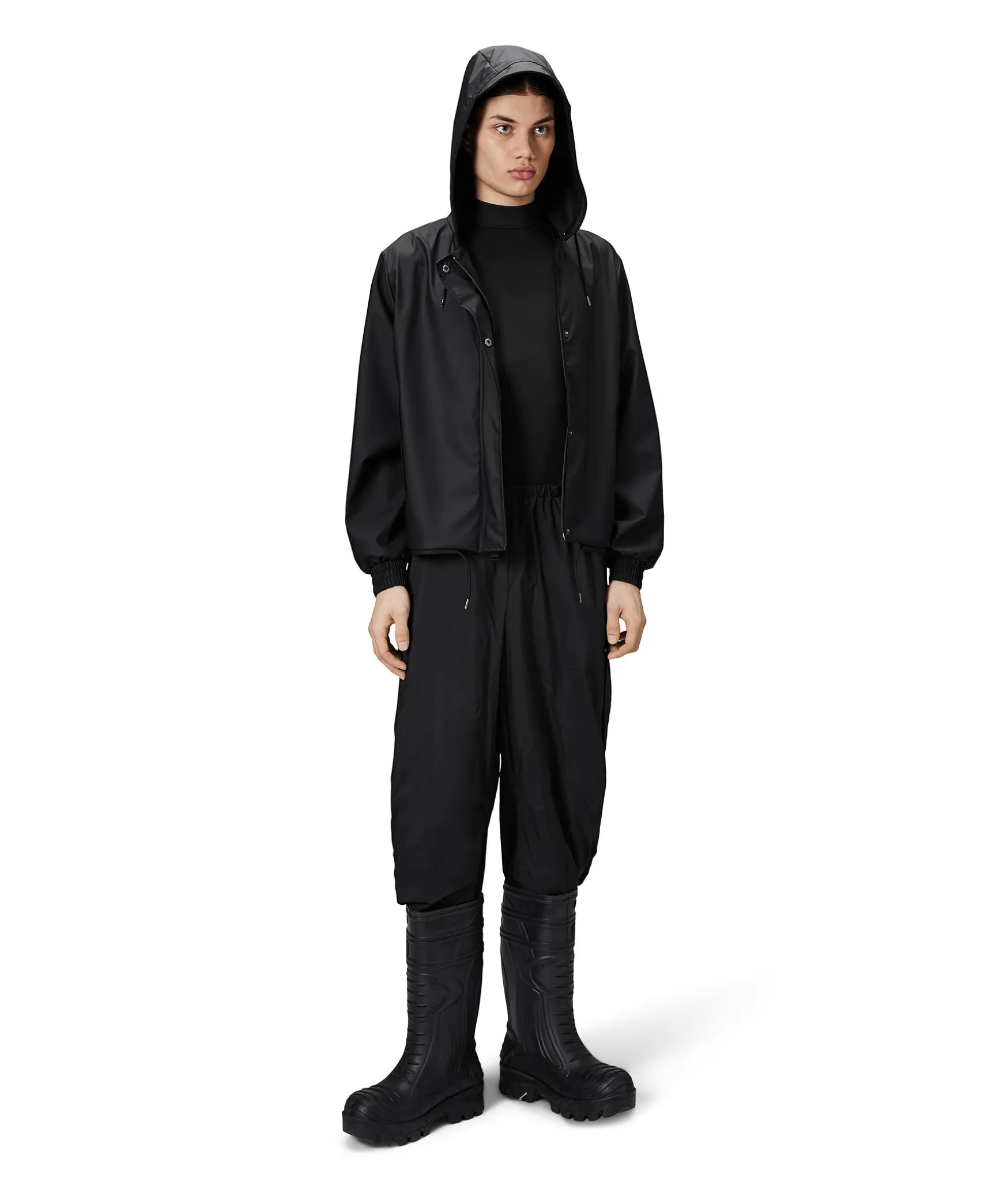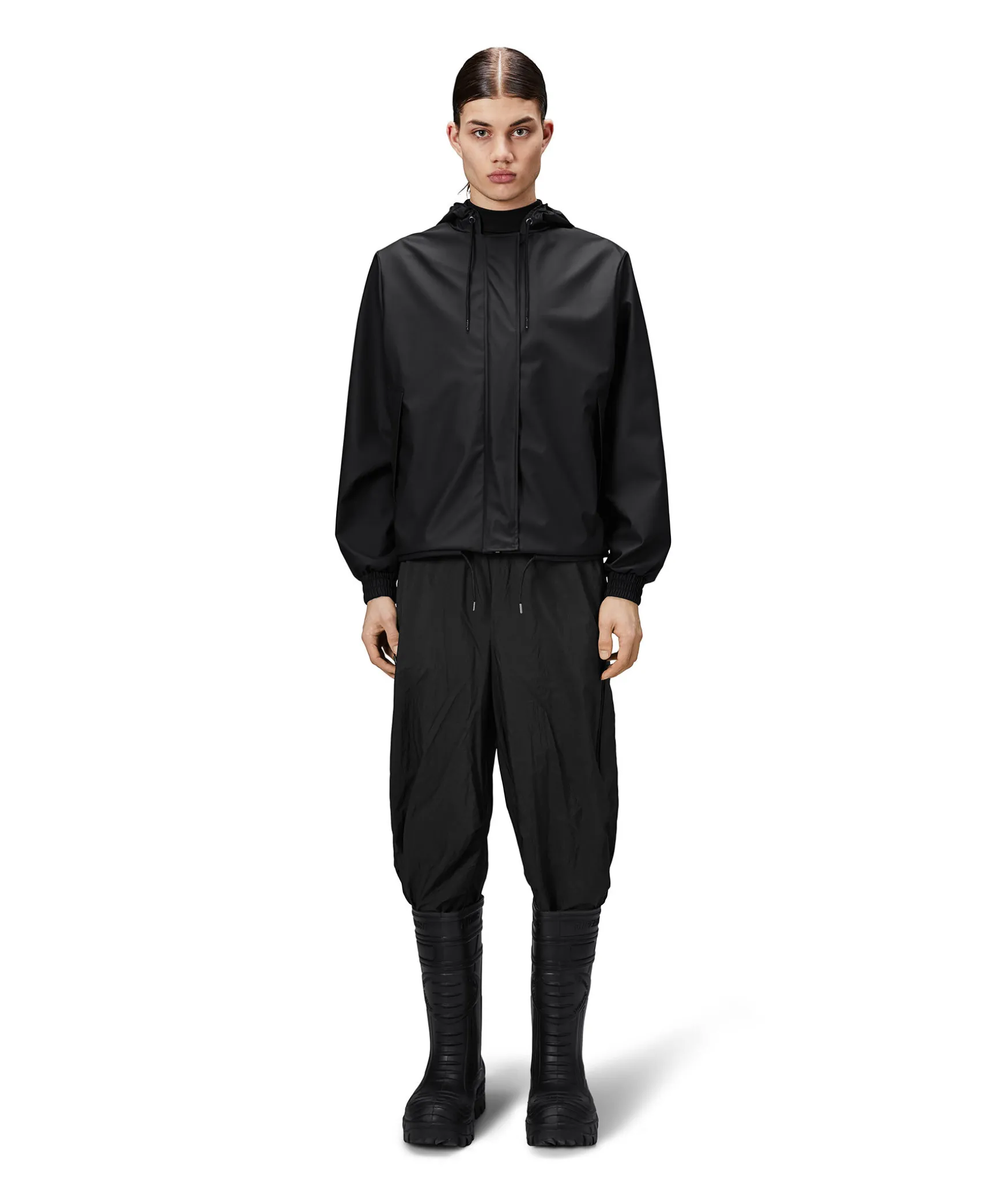 Svart Jacka Fran Rains. String W Jacket Ar En Beskard Regnplaggssilhuett Med Los Kortare Passform. Plagget Har Elastiska Manschetter, Diagonala Framfickor Och Armhalsoljetter For Ventilation. Silhuetten Kan Andras Med Hjalp Av Dragskofallen, Medan En Knappsla Med Tryckknappar Och En Signaturhuva Med Kepsbratte Fullandar Looken. Den Har Vattentata Jackan Tillverkas I Rains Pu-Signaturtyg Med Ultraljudsforseglade Sommar. Den Har En Lattviktsfinish Med Mjuk Yta Och Snyggt Fall.