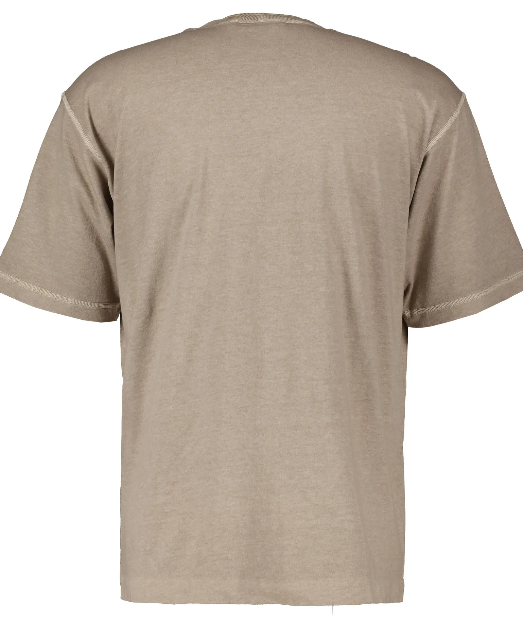 Beige T-Shirt Fran Stone Island. Rundad Halsringning, Med Ribbstickad Mudd. Tillverkad I 100% Bomull. Synliga Overlocksommar. Broderad Logotyp Pa Brostet.