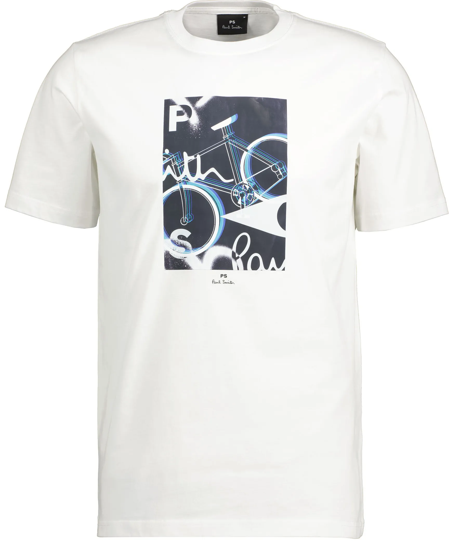 Vit T-Shirt Med Rektangulart Tryck Fram Med En Cykel Och Logotyp Pa Fran Ps Paul Smith. Tillverkad I 100% Bomull Och Har En Rundad Halsringning. Rak, Normal Passform Och Fint Ribbad Halsringning.