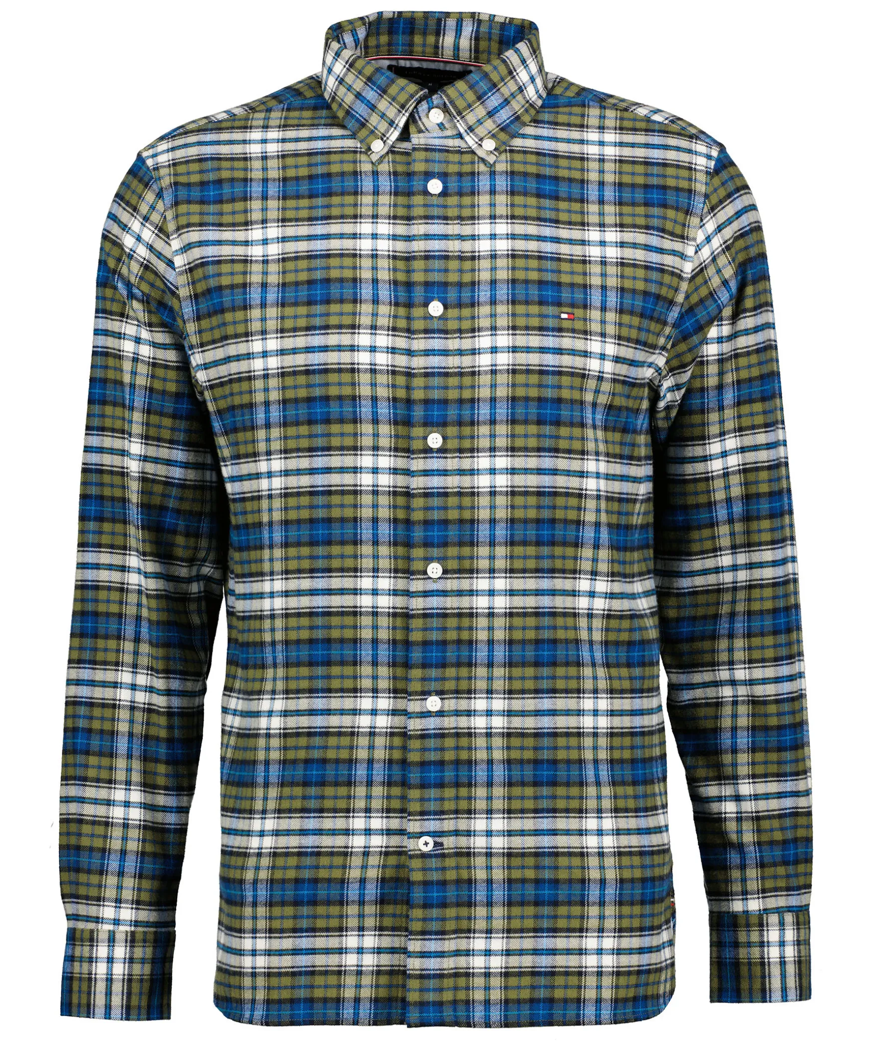 Bla Och Gronrutig Skjorta Fran Tommy Hilfiger. Denna Skjorta I Borstad Bomull I Signatur Tartan Kombinerar En Traditionell Vav Med Markesaccenter For En Modern Look. Button-Down Krage Och Tommy Hilfiger Flaggabroderi Pa Brostet. Normal Passform.