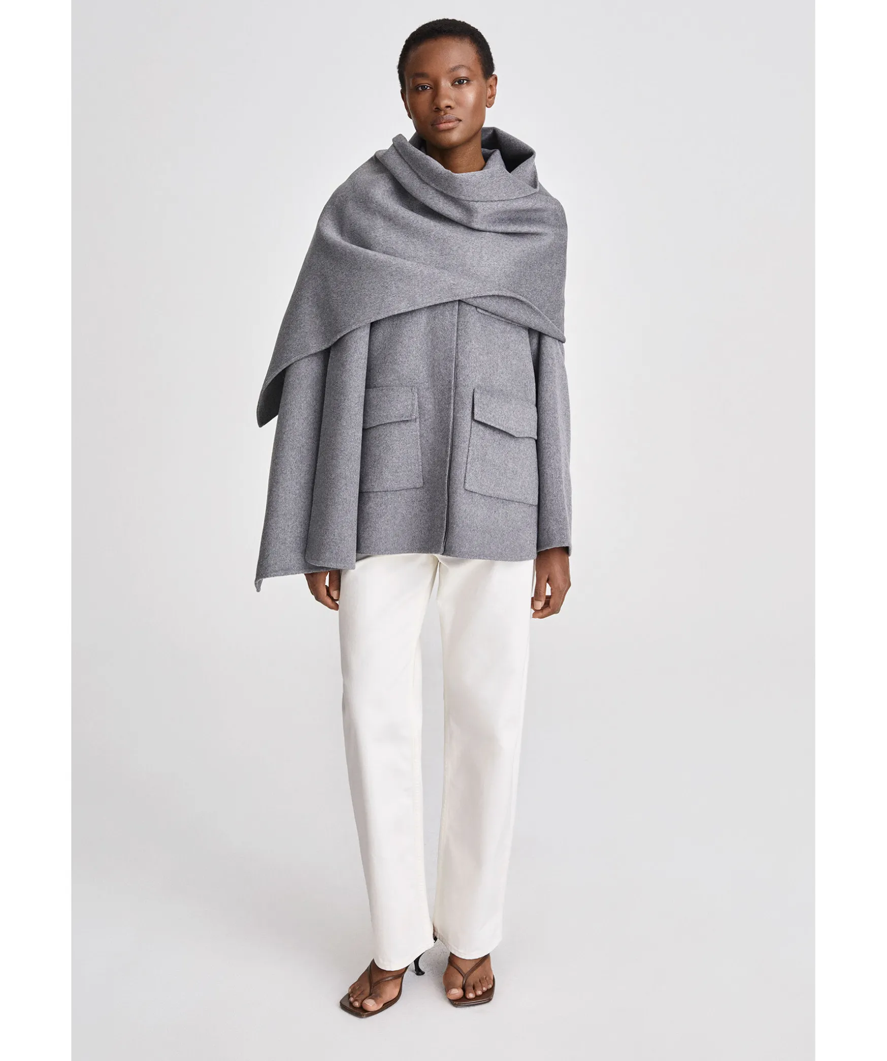 Gra Halsduk Fran Stylein. Tecla Ar Deras Breda Signaturscarf Gjord I En Fantastisk Dubbelsidig Ullblandning. Kombinera Tecla-Scarf Med Tulle Jackan For En Matchande Och Chic Look. One Size. Matt: B: 47 Cm, L: 210 Cm.
