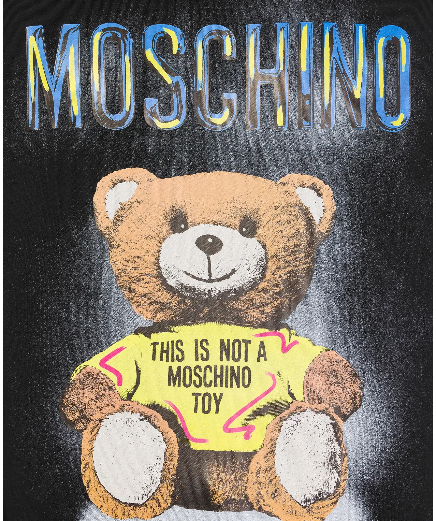 Svart Sweatshirt Fran Moschino Med Tryckt Over Brostet Och Magen. Stor Logotyp I Svart Over Brostet. Rundad Halsringning, Ribbstickade Muddar Pa Halsringningen, I Armslut Och Plaggslut. Tillverkad I 100% Bomull.