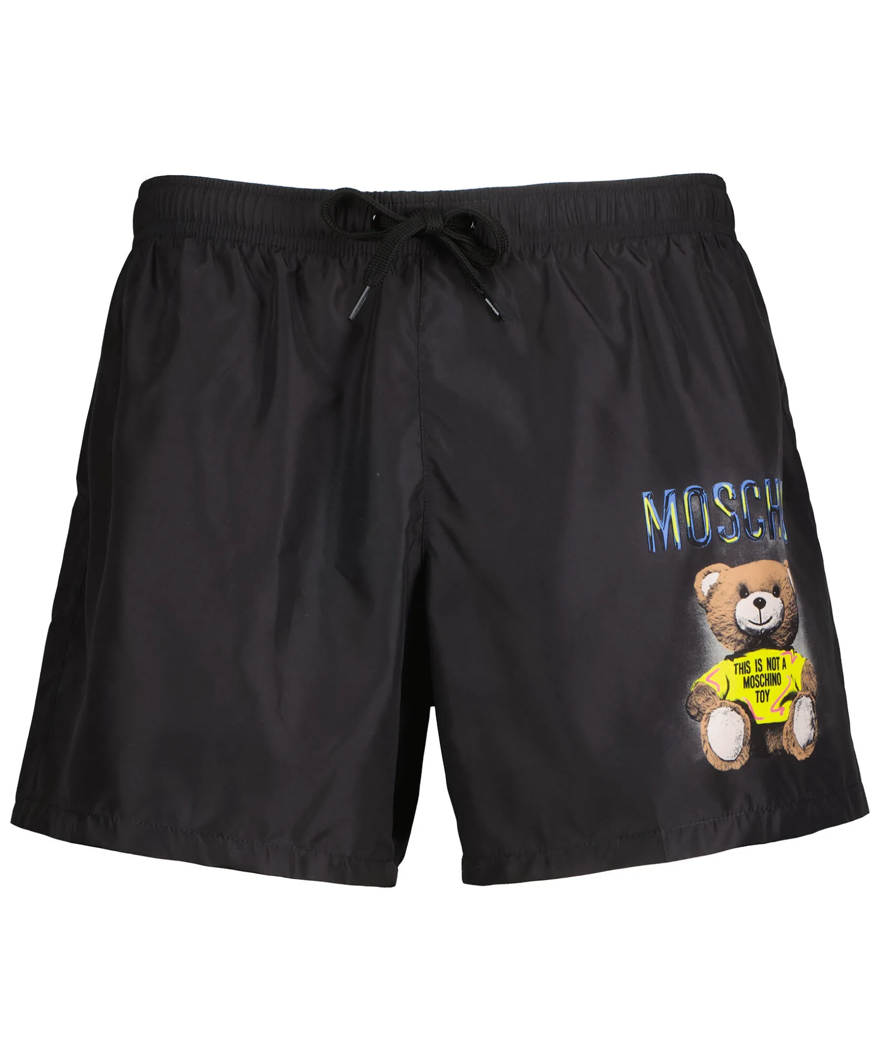 Svarta Badshorts Fran Moschino. Dragsko I Midjan. Tryck Pa Vanster Lar. Innerbyxa I Mesh.