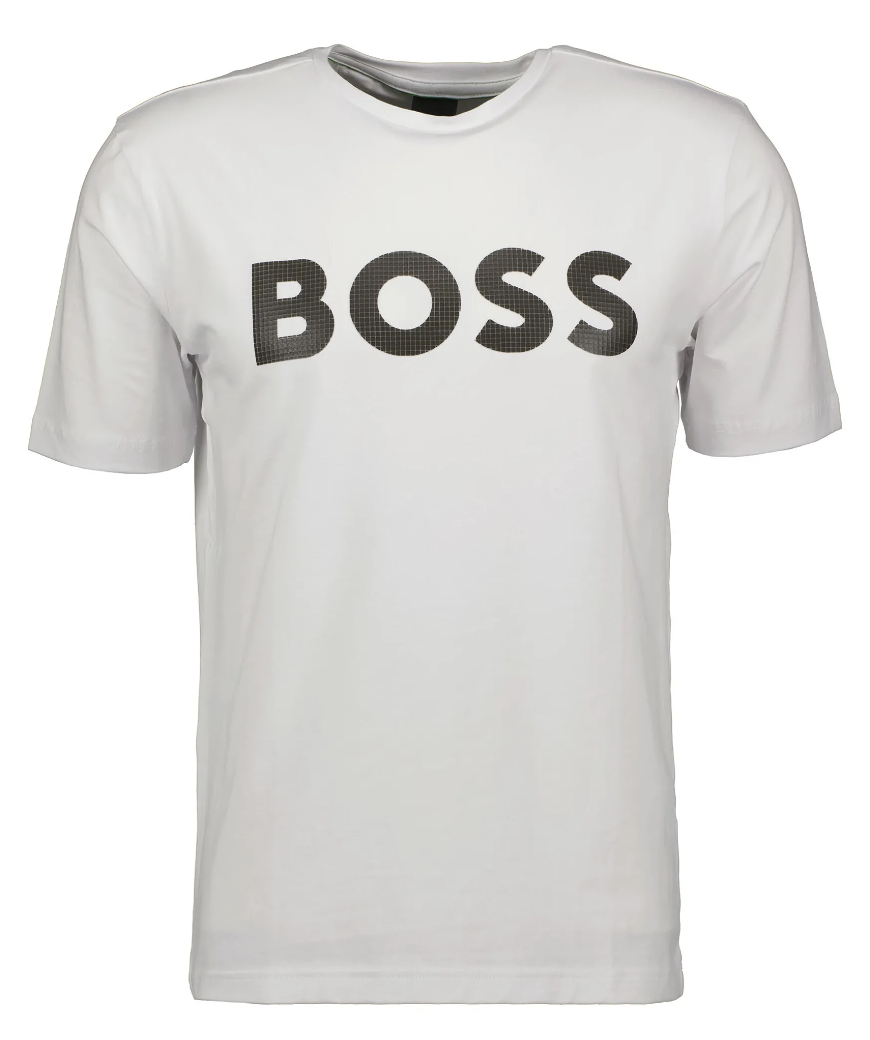 Vit T-Shirt Fran Boss Green. Tillverkad I En Stretchig Bomullsblandning. T-Shirten Har En Gra Logotyp Pa Framsidan. Rundad Halsring.