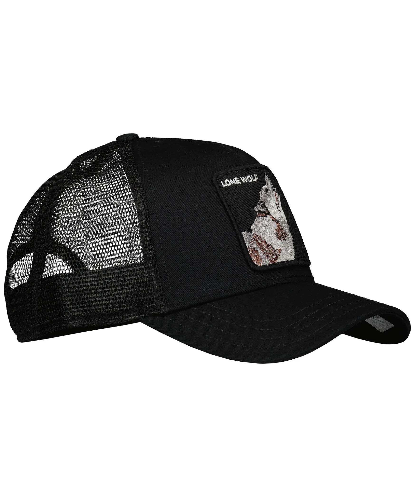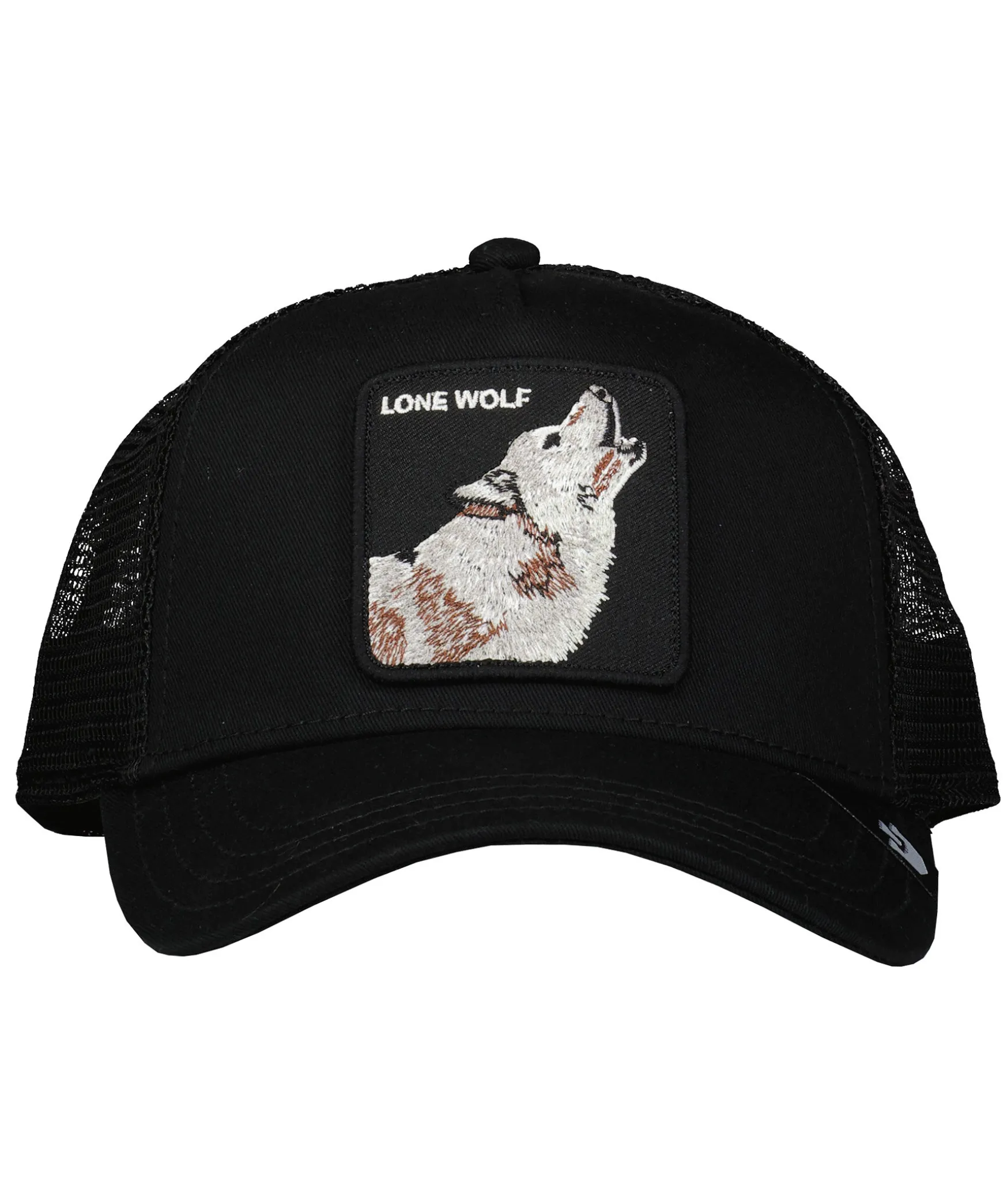 Svart Keps I Trucker-Basebollmodell Med Fyrkantig Patch Med En Varg Framtill Fran Goorin Bros. Onesize Storlek Med Ett Justerbart 4-Snap-In-Rem, Vilket Betyder Att Storleksintervallet Ar 55 Cm-61 Cm Med 58 Cm I Mitten. Ett Bomullssvettband Finns Fastsytt Pa Insidan. Tillverkad I Polyester Bak Och Polyuretan Pa Framsidan.
