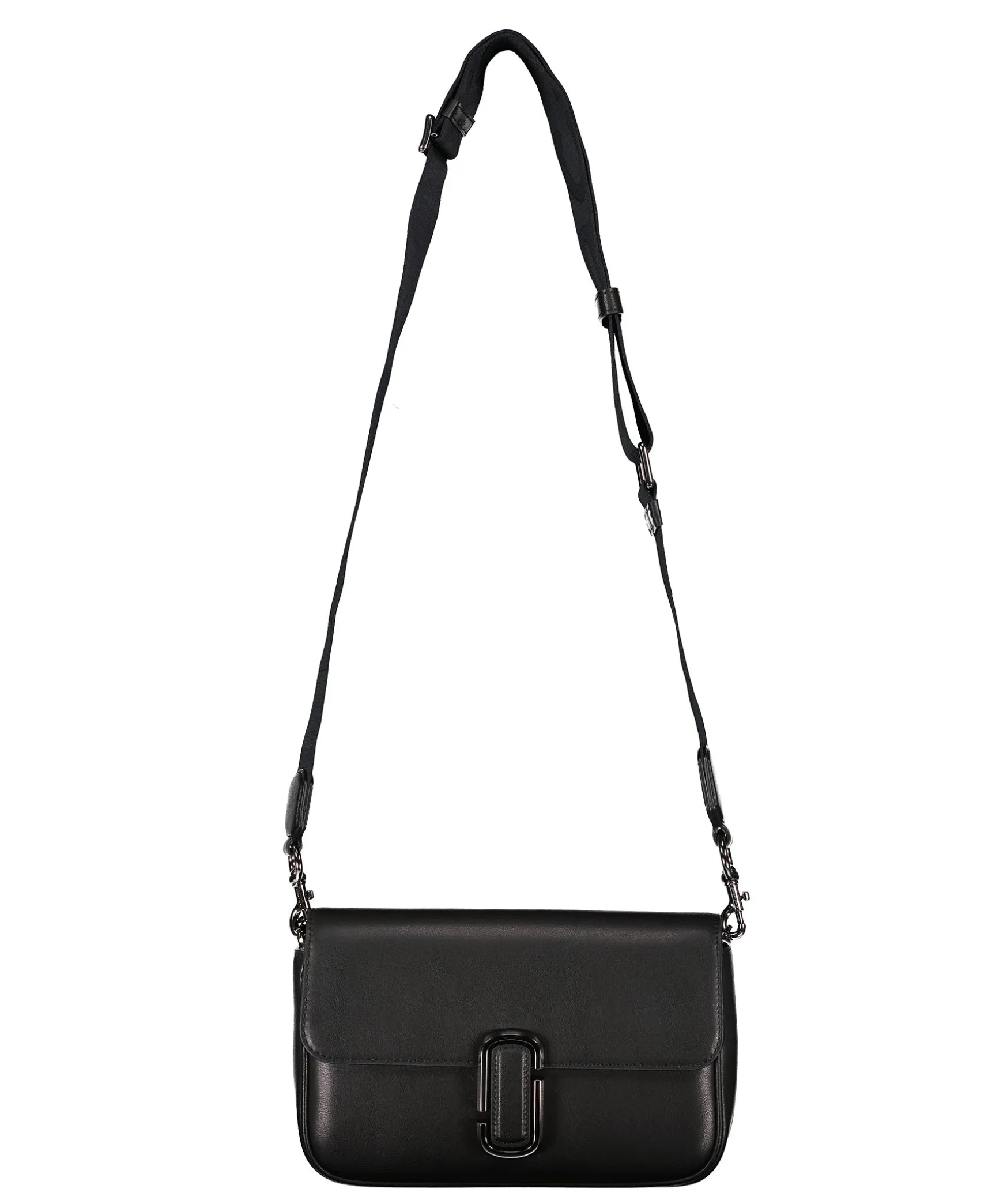 Svart Handvaska Fran Marc Jacobs. Langt Axelband I Textil Med Logotyp Samt Kort Handtag I Guldfargad Kedja. Guldfargad Logotyp Fram, Magnetstangning, Tva Invandiga Fickor. Dustbag Medfoljer. 25 X 5 X 16 Cm