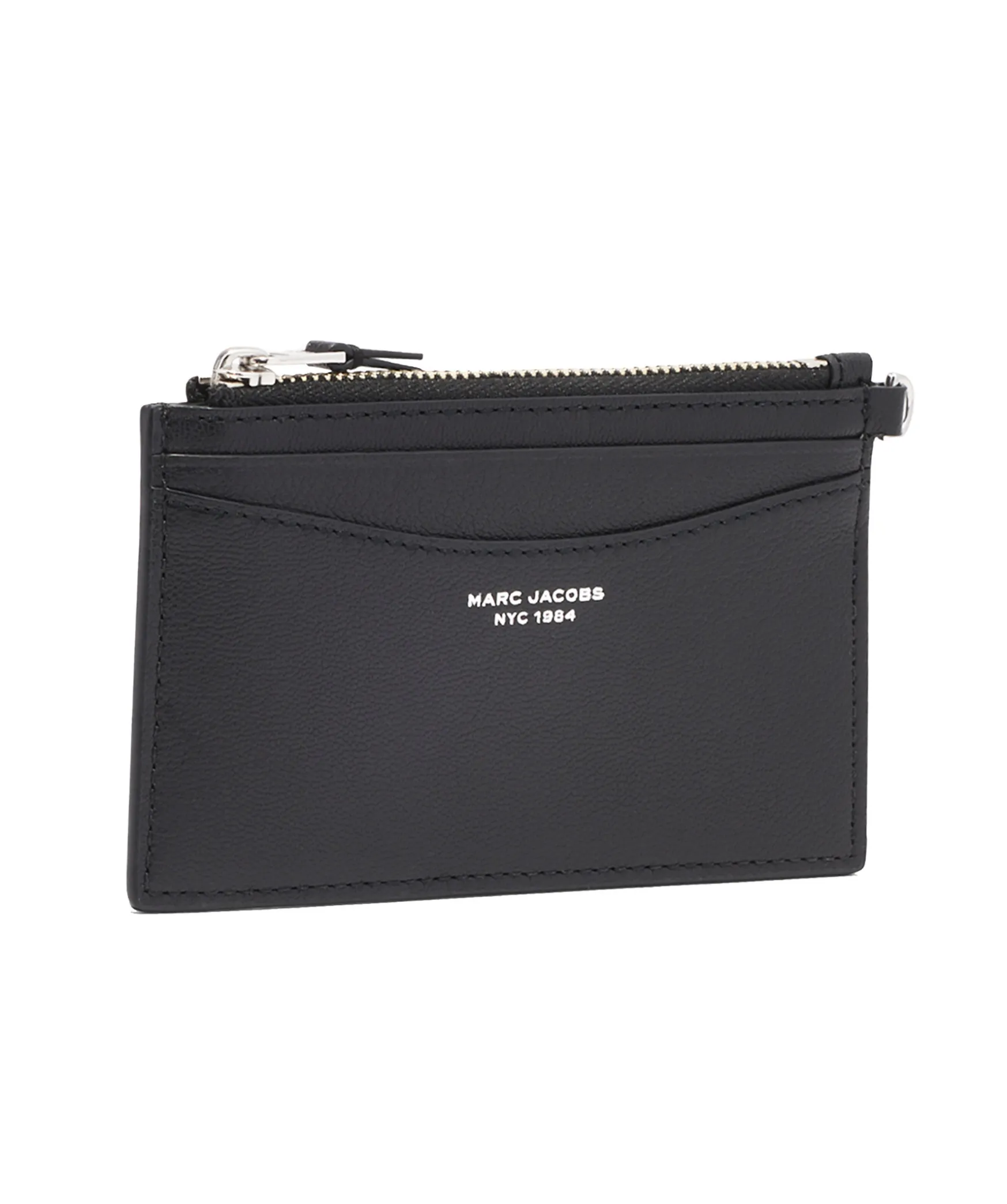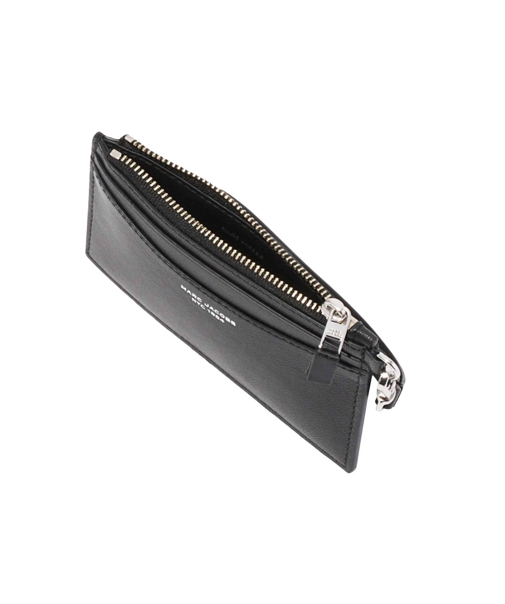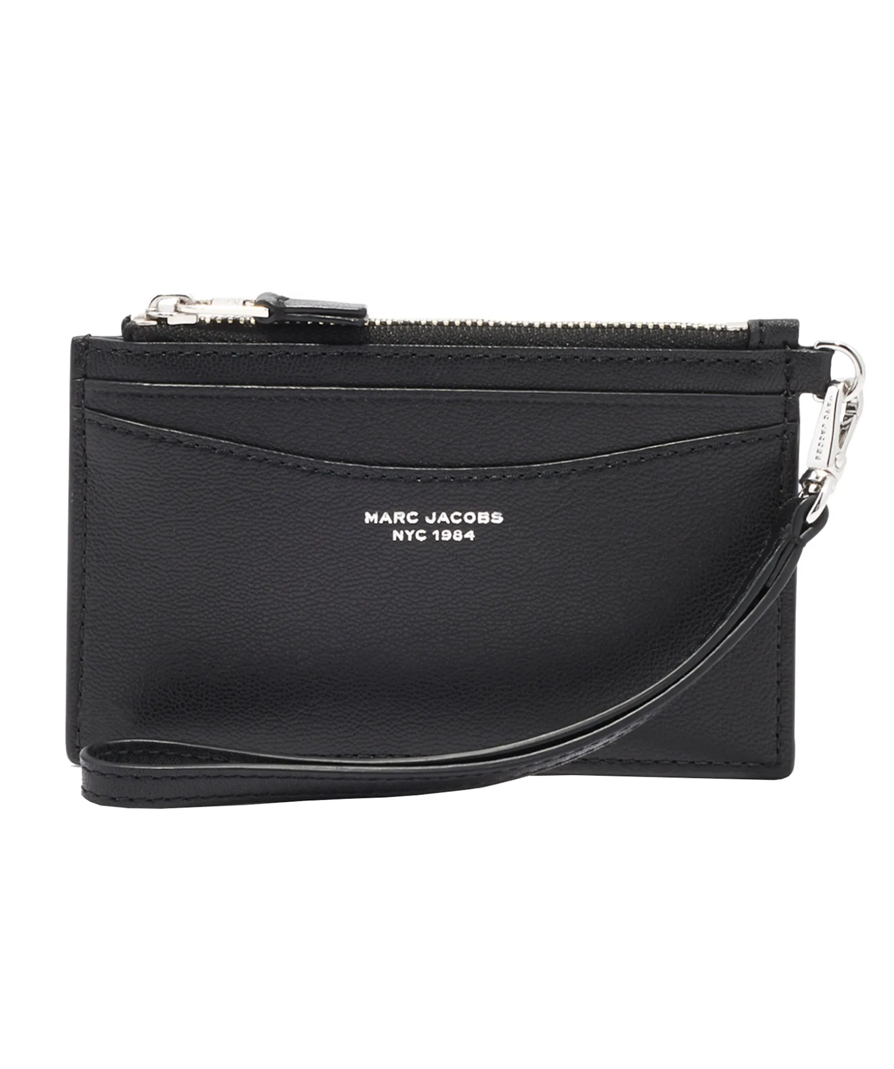 Svart Planbok I Lader Med Silverdetaljer Fran Marc Jacobs. Minimalistisk Stil Med En Dragkedja Upptill For Kort Och Kontanter. Liten Logotyp Framtill I Silver, 4 Utvandiga Kortfack, 3 Utvandiga Fickor, 1 Toppficka Med Dragkedja, 1 Kedja Med Nyckelrin Pa Insidan. Avtagbar Armbandsrem. Matt: 13,5 X 8 Cm.