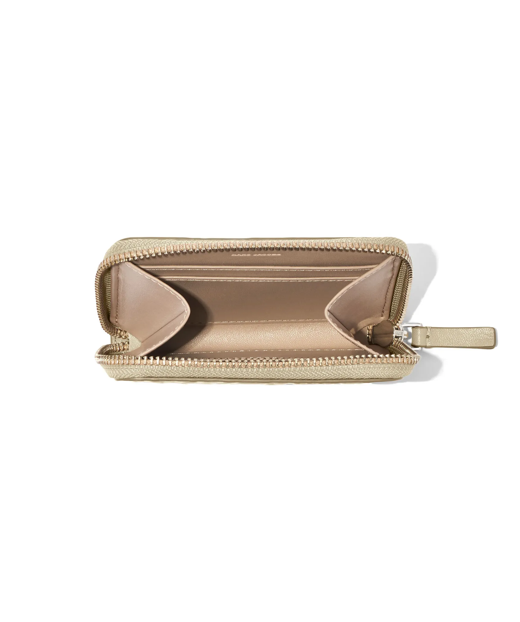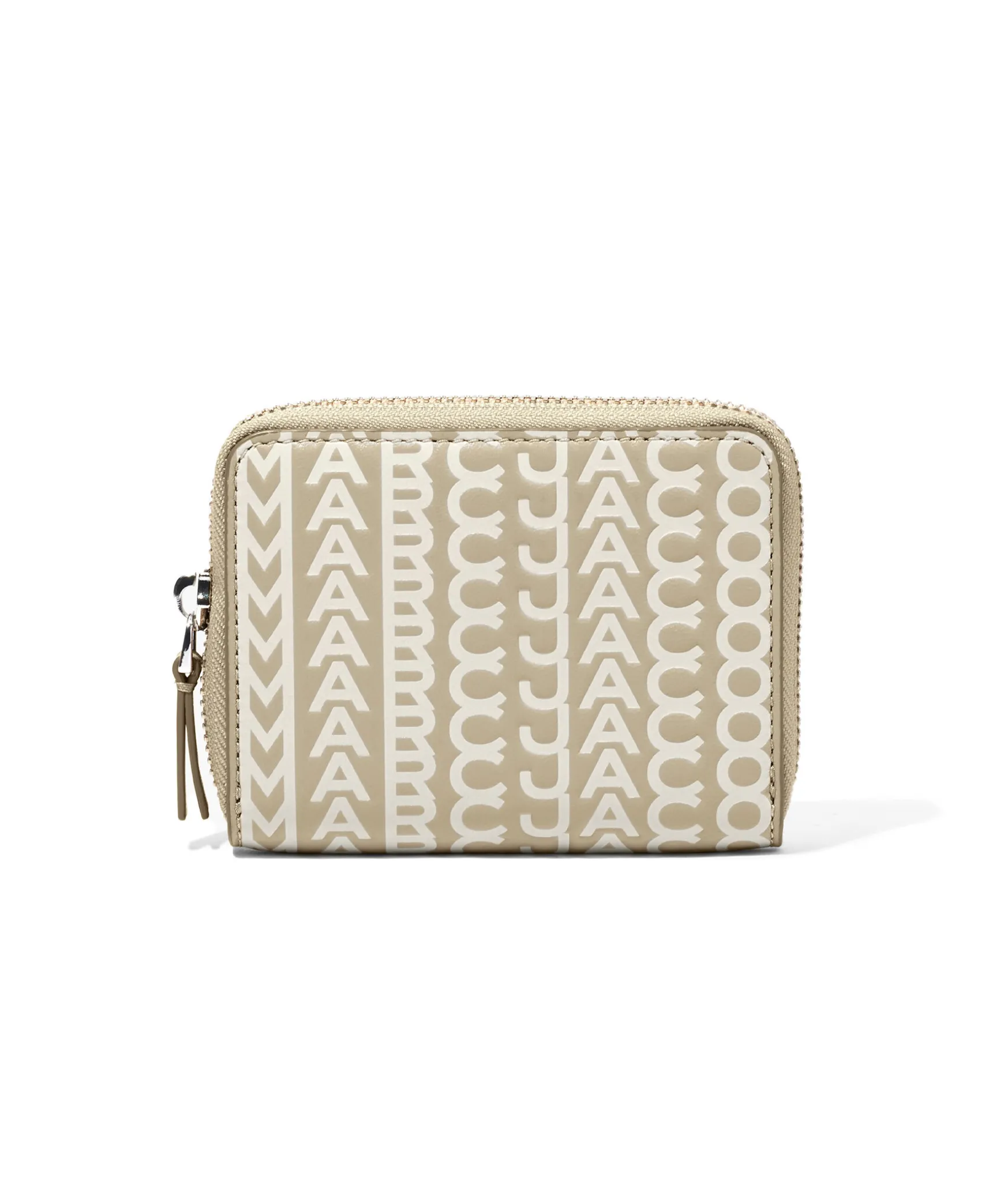 Liten Khakifargad Planbok Fran Marc Jacobs Med Overgripande Praglad Monogramdesign. Planboken Ar Tillverkad I Lader. Dragkedjan Gar Runt Planboken. Den Har 4 Invandiga Kortplatser Och 1 Glidfack. Matt: 12Cm L X 3Cm D X 9Cm H