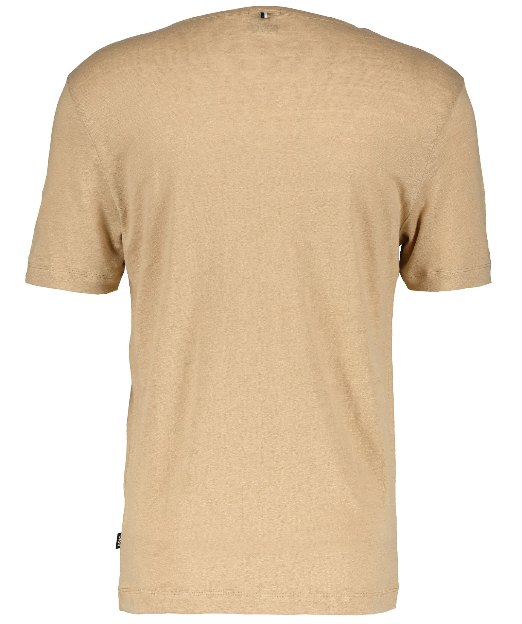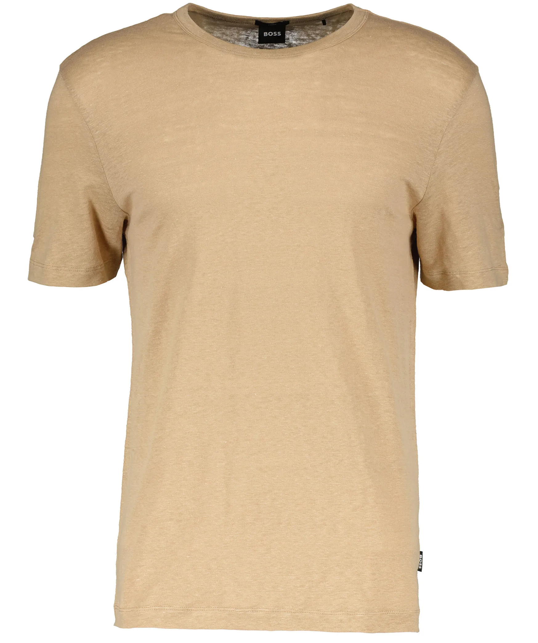 Beige Melerad T-Shirt Fran Boss Black. Tillverkad I 100% Linne. Rundad Halsring. Normal Passform.