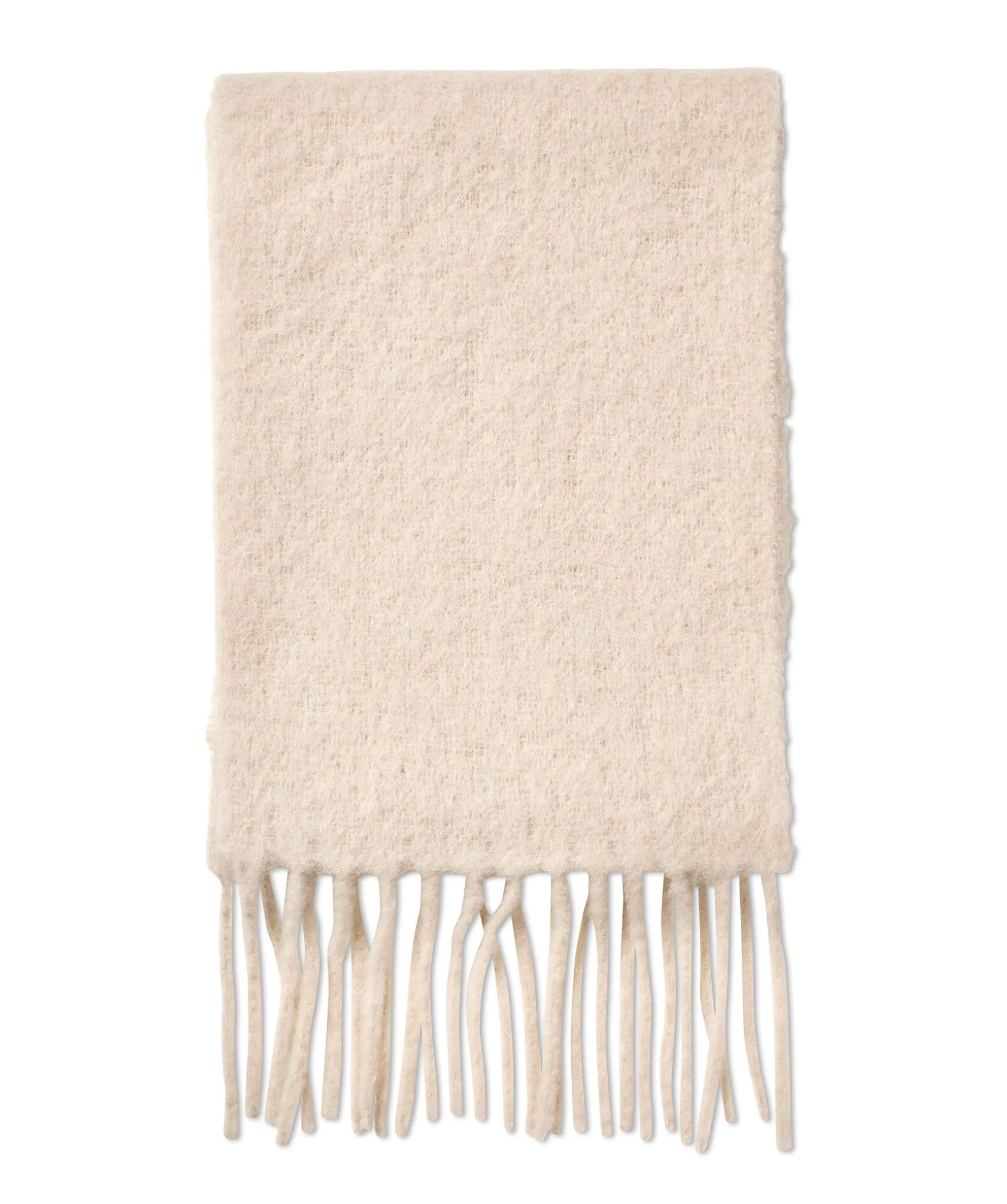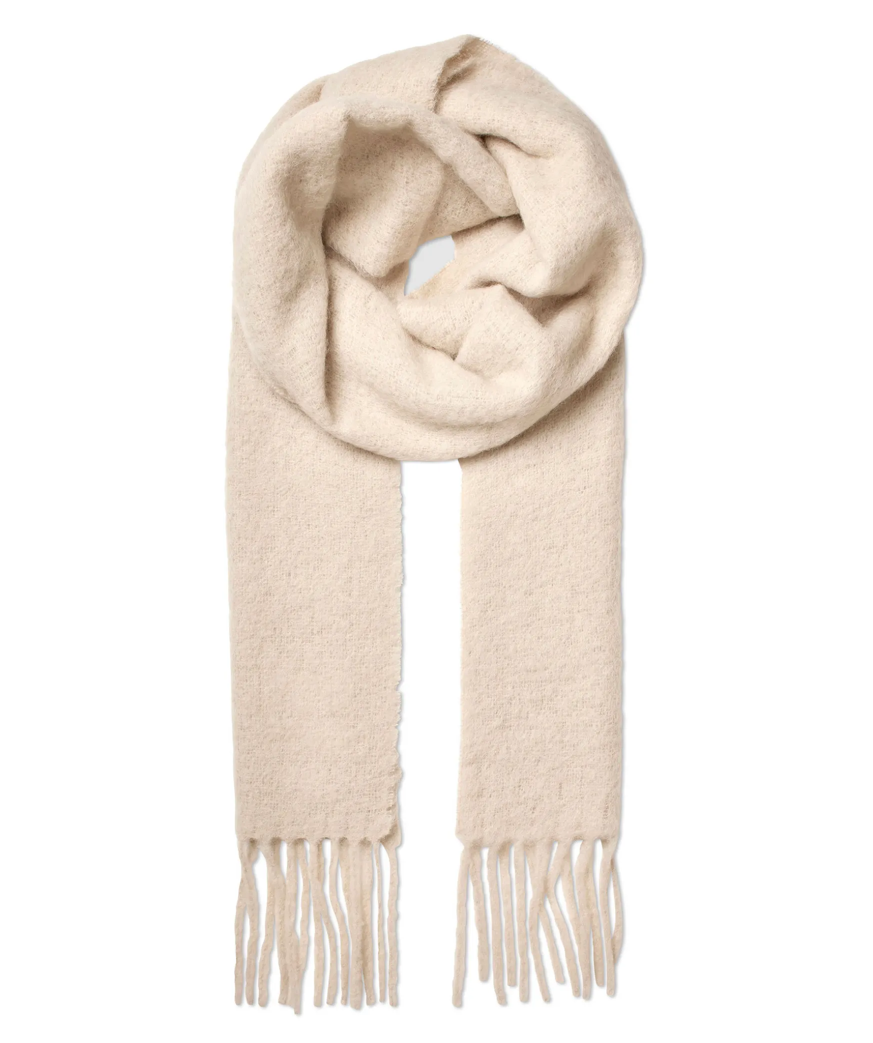 Beige Halsduk Med Fransar Fran Samsoe Samsoe. Gjord I En Mjuk Alpackablandning. Halsduken Ar 25Cm Bred Och 210Cm Lang Utan Fransarna.