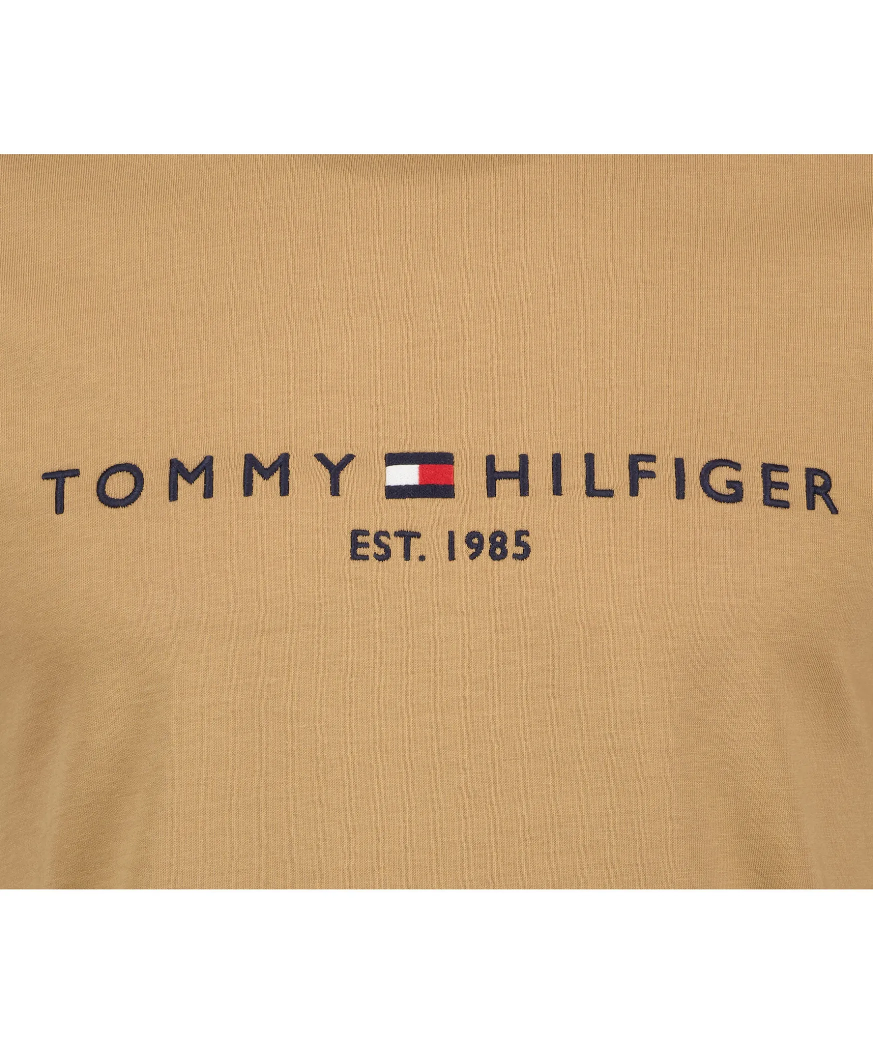 Khakifargad T-Shirt Fran Tommy Hilfiger. Rundad Hals, Stor Broderad Logotyp Pa Brostet, Liten Broderad Logga Pa Vanster Arm. Tillverkad I 100% Bomull.