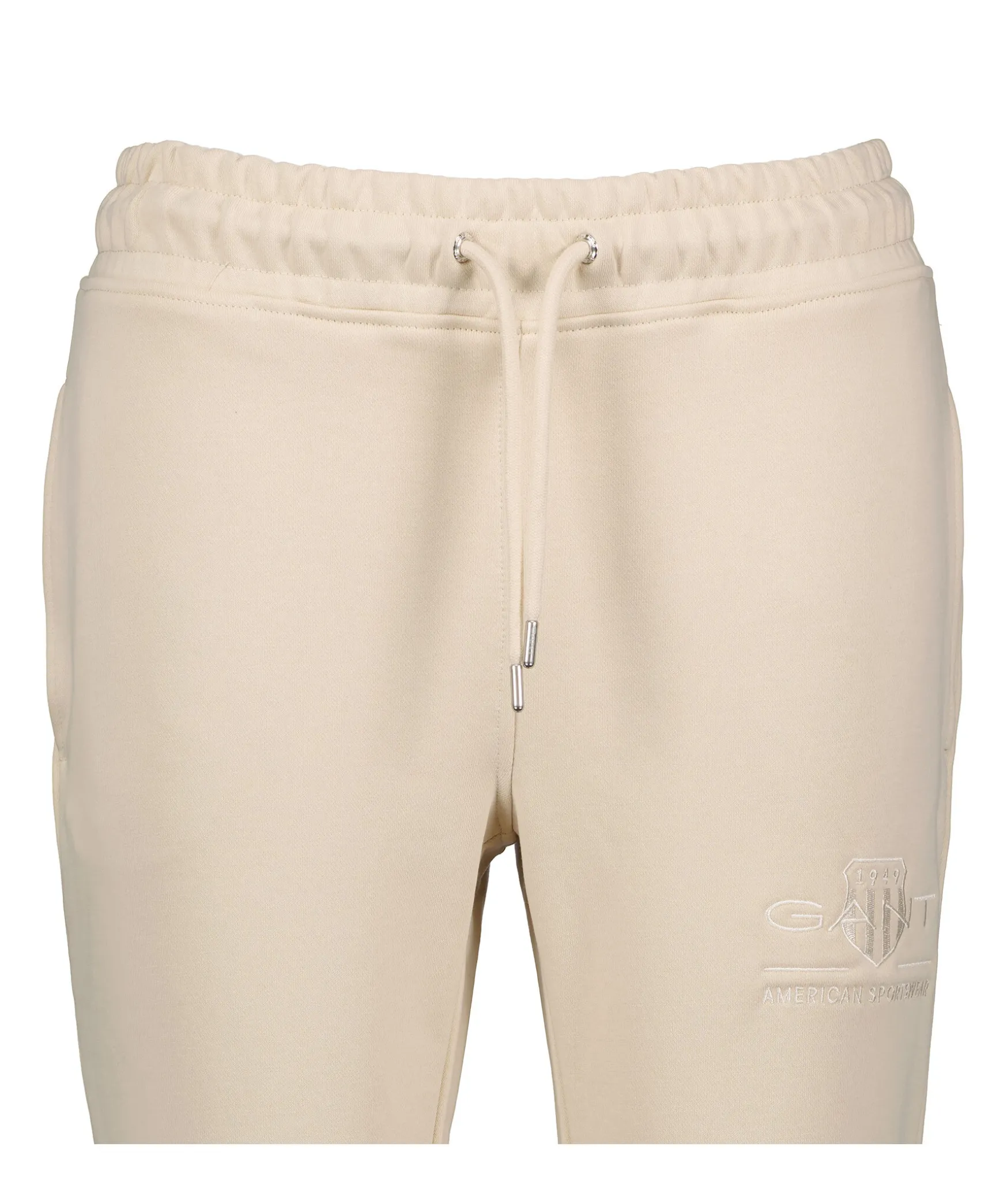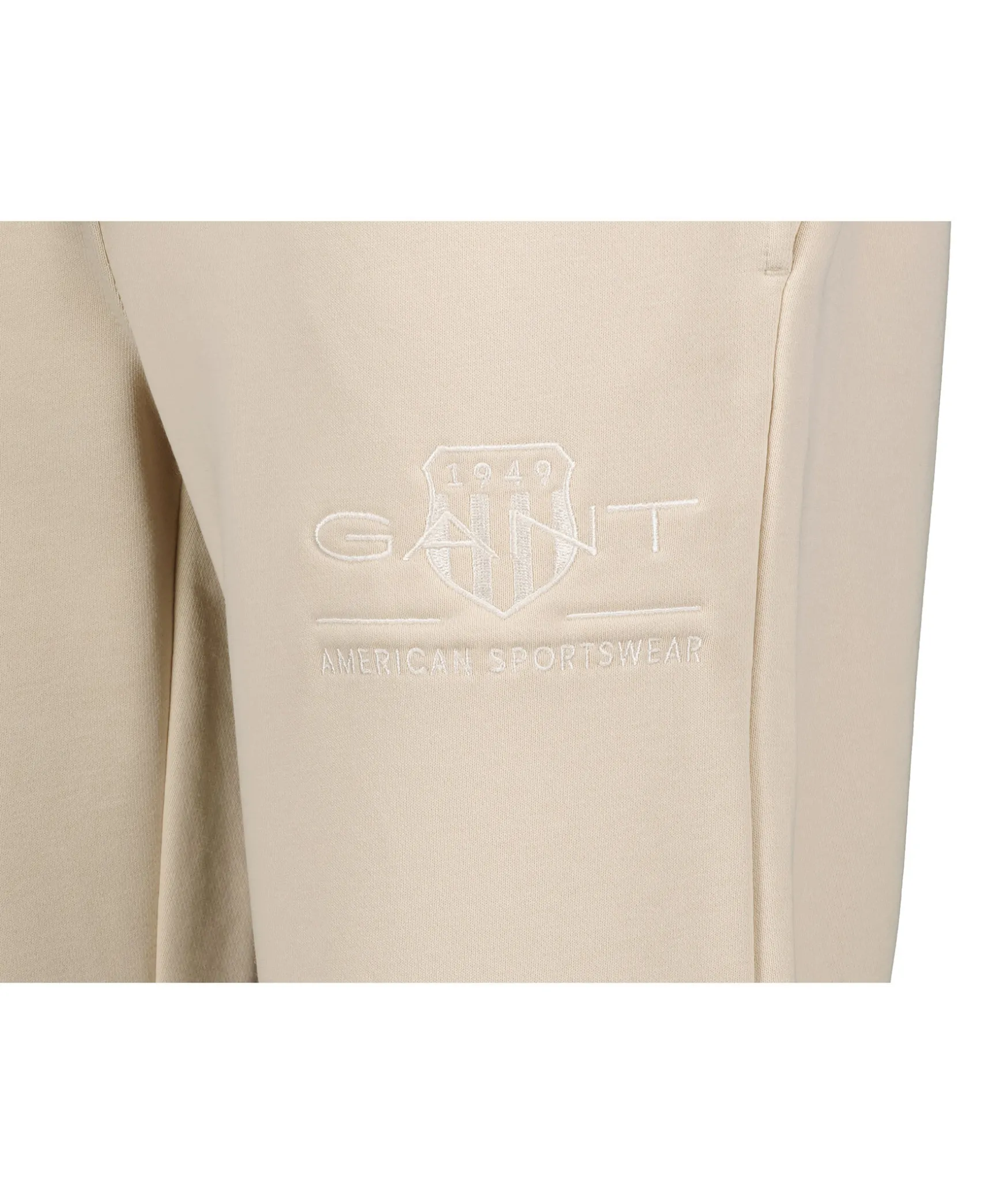 Beigea Mjukisbyxor Fran Gant. Broderad Logotyp Pa Vanster Lar. Tva Fickor I Sidorna. Dragsko I Midjan. Resar Vid Benslut. Tillverkad I Bomullsblandning.