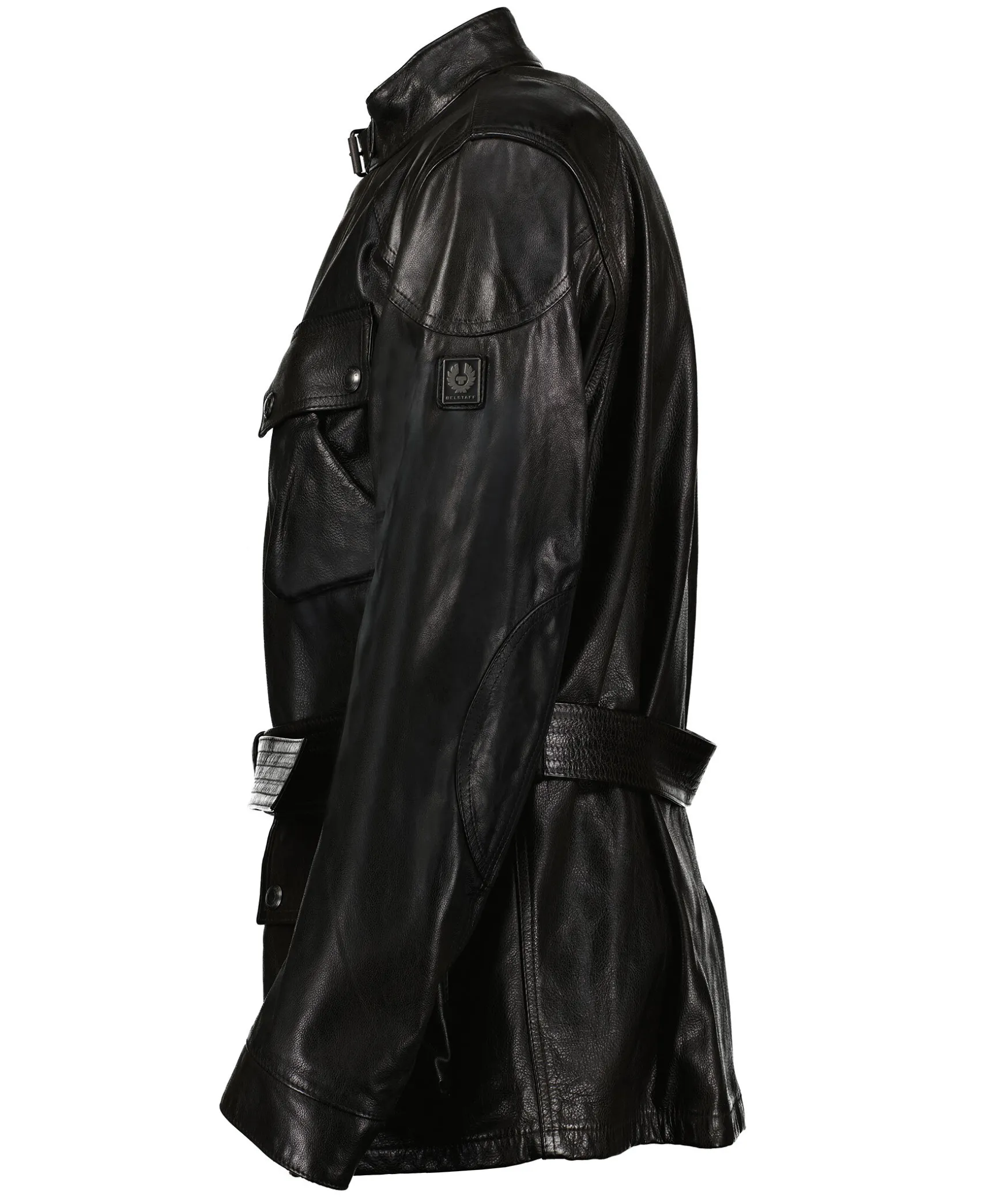 Laderjacka Fran Belstaff. Jackan Ar Gjord I Svart Handvaxat Kalvskinn. Fyra Balgframfickor Och En Innerficka. Knappsla Framtill Och Dragkedja. Signature Belstaff Rutig Bomullsfoder. Stakrage Med Justerbar Halssparr. Forstarkta Axel- Och Armbagspaneler Samt Ventilation Under Armarna. Pa Grund Av Handvaxprocessen Som Anvands Ar Varje Enhet Nagot Annorlunda. Variationer I Fargintensitet Och Textur Ar En Integrerad Del Av Designen. Jackans Hantverksmassiga Handfinish Ger En Unik Patina Och Ger Ladret En Vattenavvisande Egenskap. Patinan Morknar Och Blir Rikare Med Okad Alder Och Slitage.