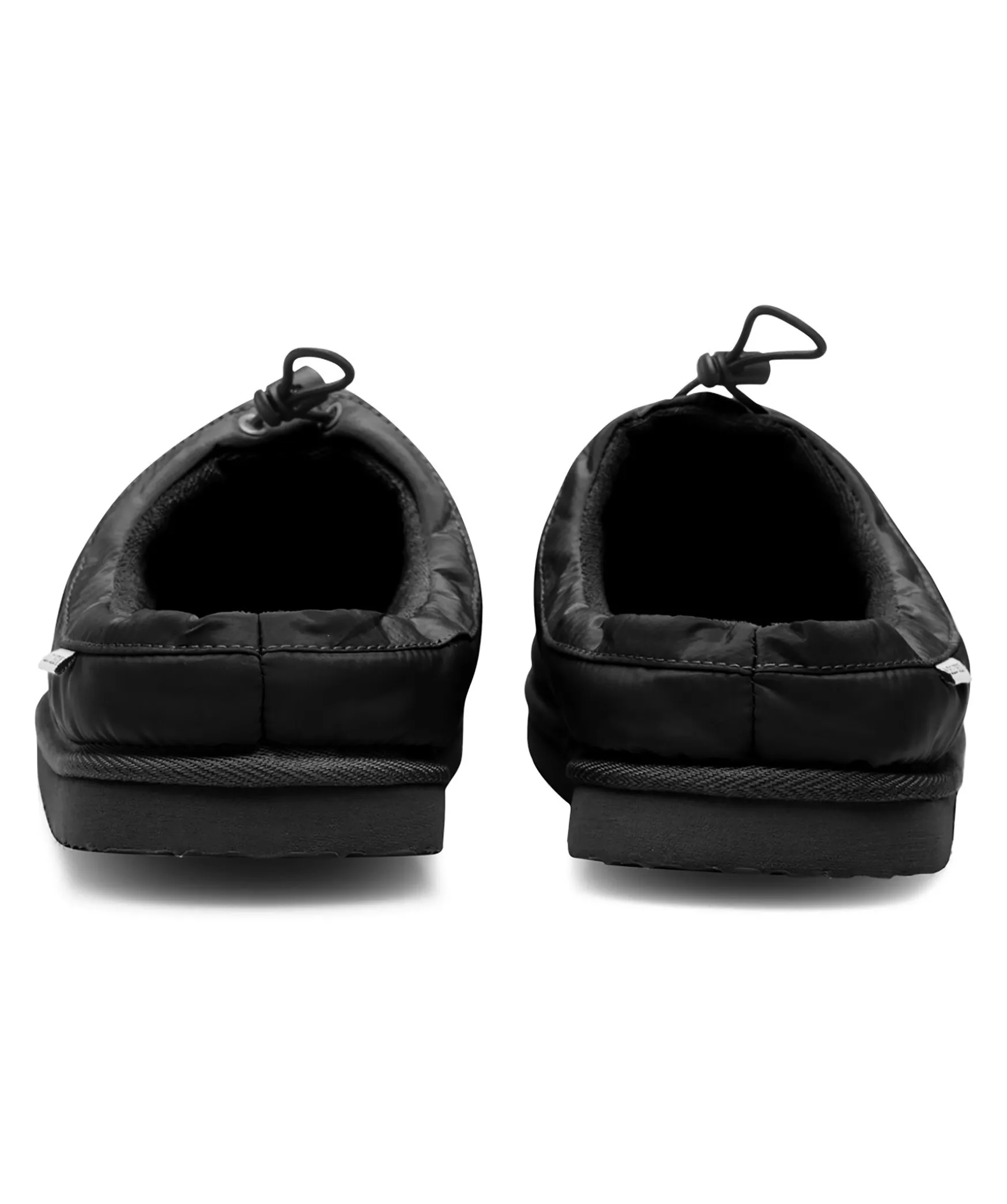 Svarta Innetofflor Med Vadderade Paneler Fran Led Seux. Designade Med En Supermjuk Insida For Att Halla Tarna Varma Under Vintersasongen Och Har En Logotyp Pa Framsidan. De Har En Tjock Skumsula For Stod Och Elastisk Snorning.