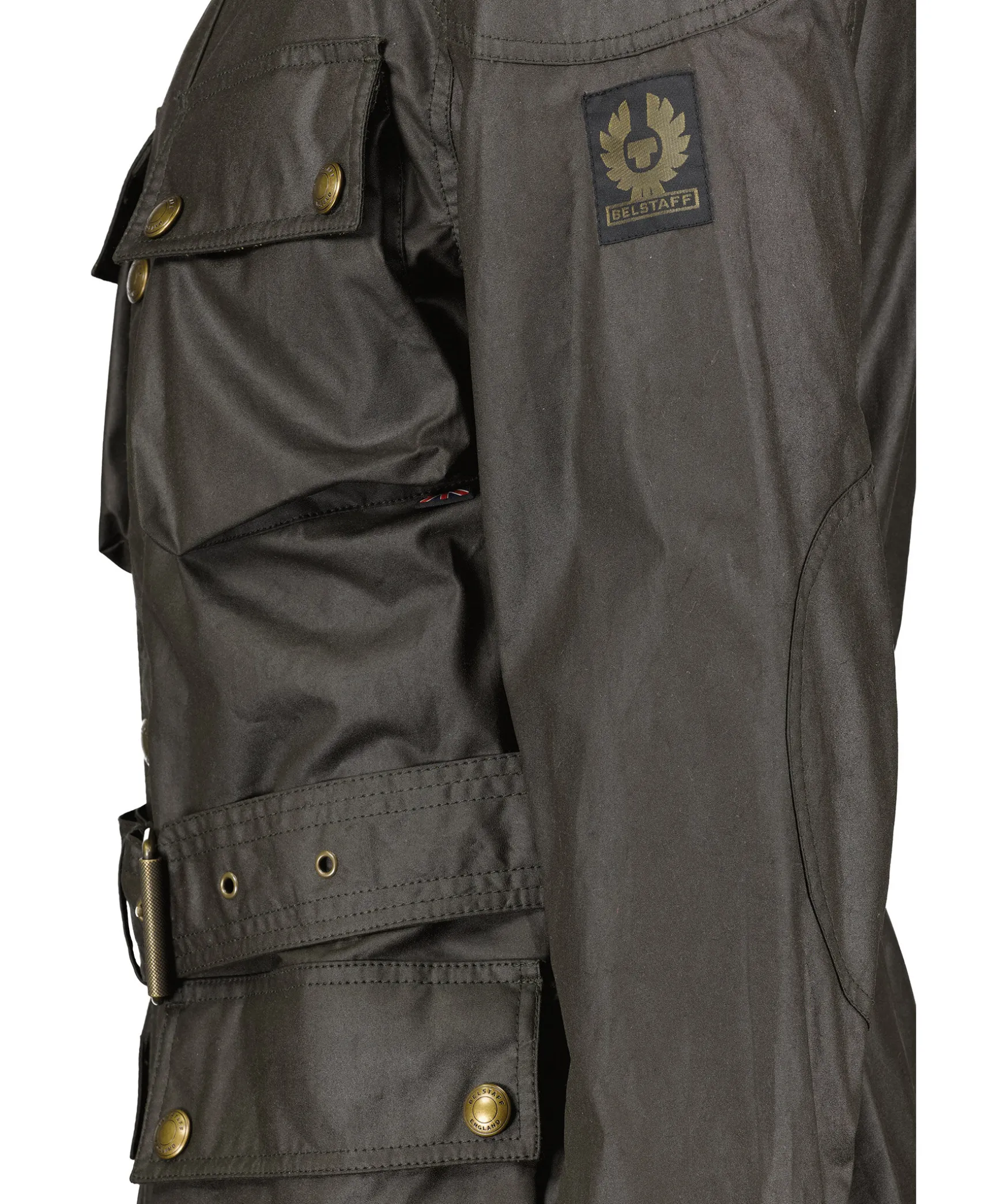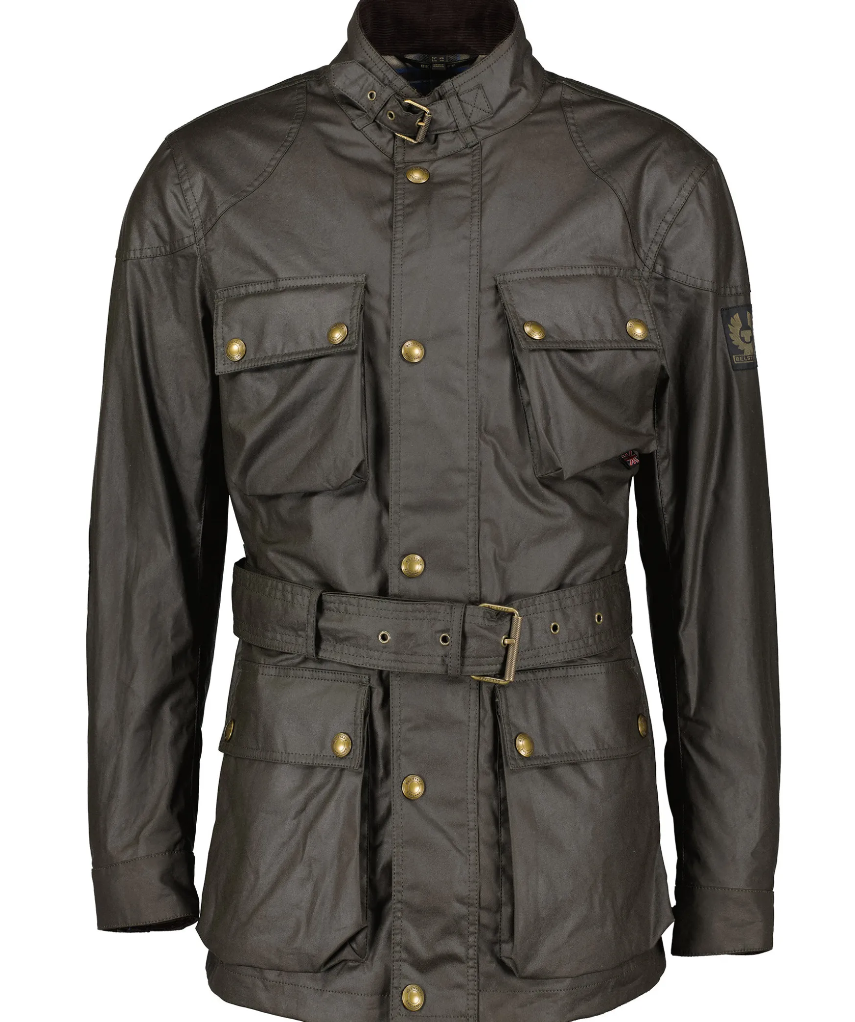 Morkbrun Jacka I Vaxad Bomull, Fran Belstaff. Stangs Med Tryckknappar Och Dragkedja Framtill. Fyra Fickor Framtill Som Stangs Med Tryckknappar Och Lock. Avtagbart Balte I Midjan. Spanne Vid Kragen. Justerbara Armslut Med Tryckknapp. Patch Med Logotyp Pa Vanster Arm. Gar Att Knappa Fast Fodret Waistcoat Gilet Som Saljes Separat.