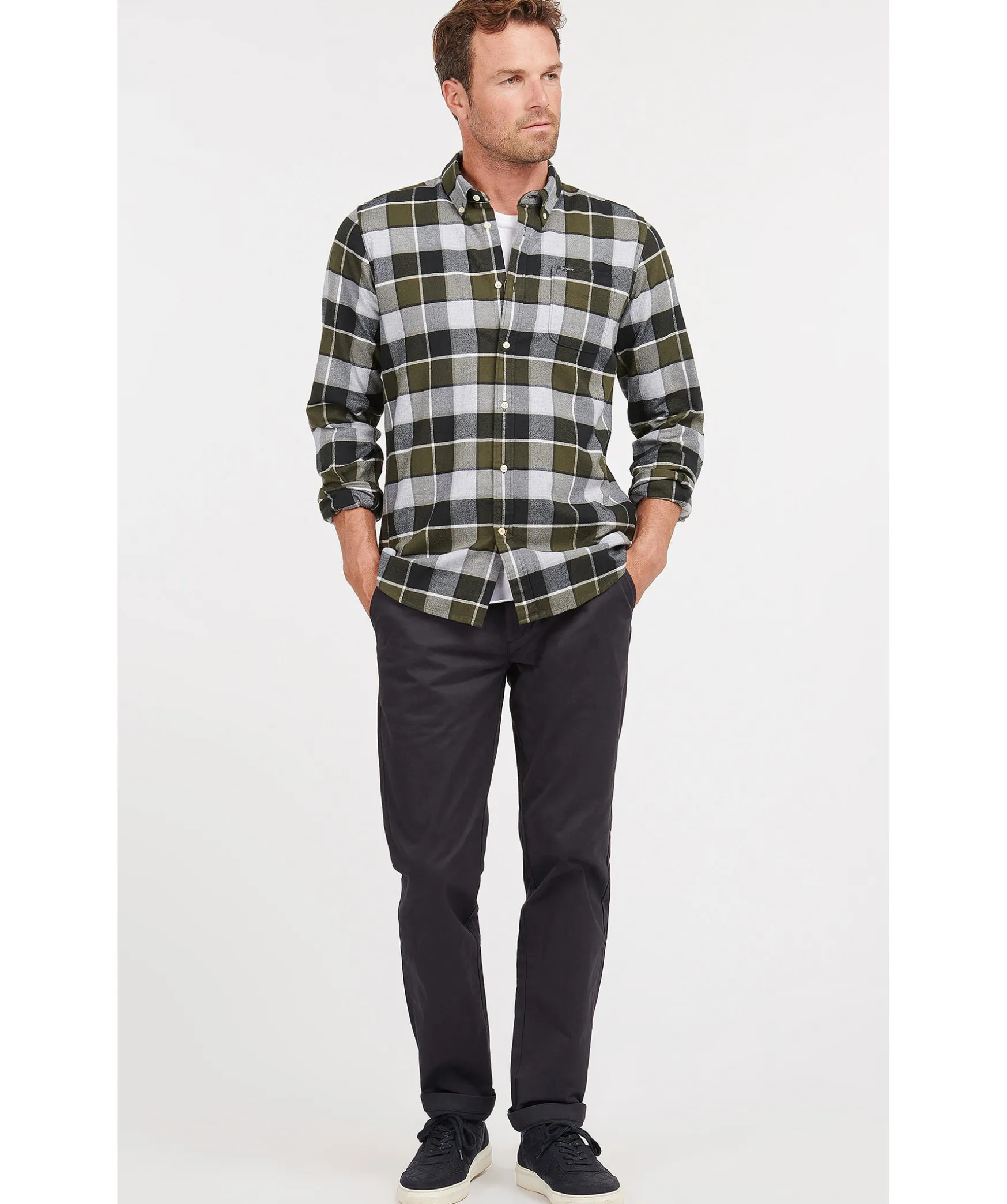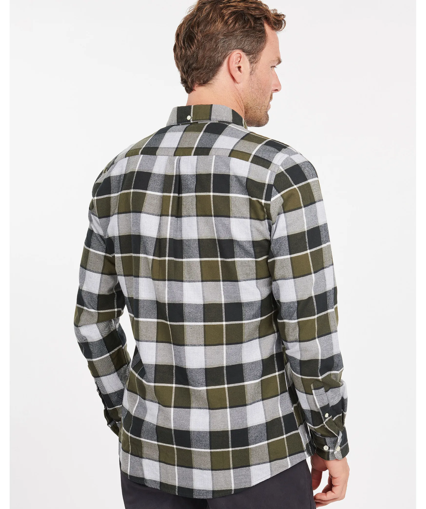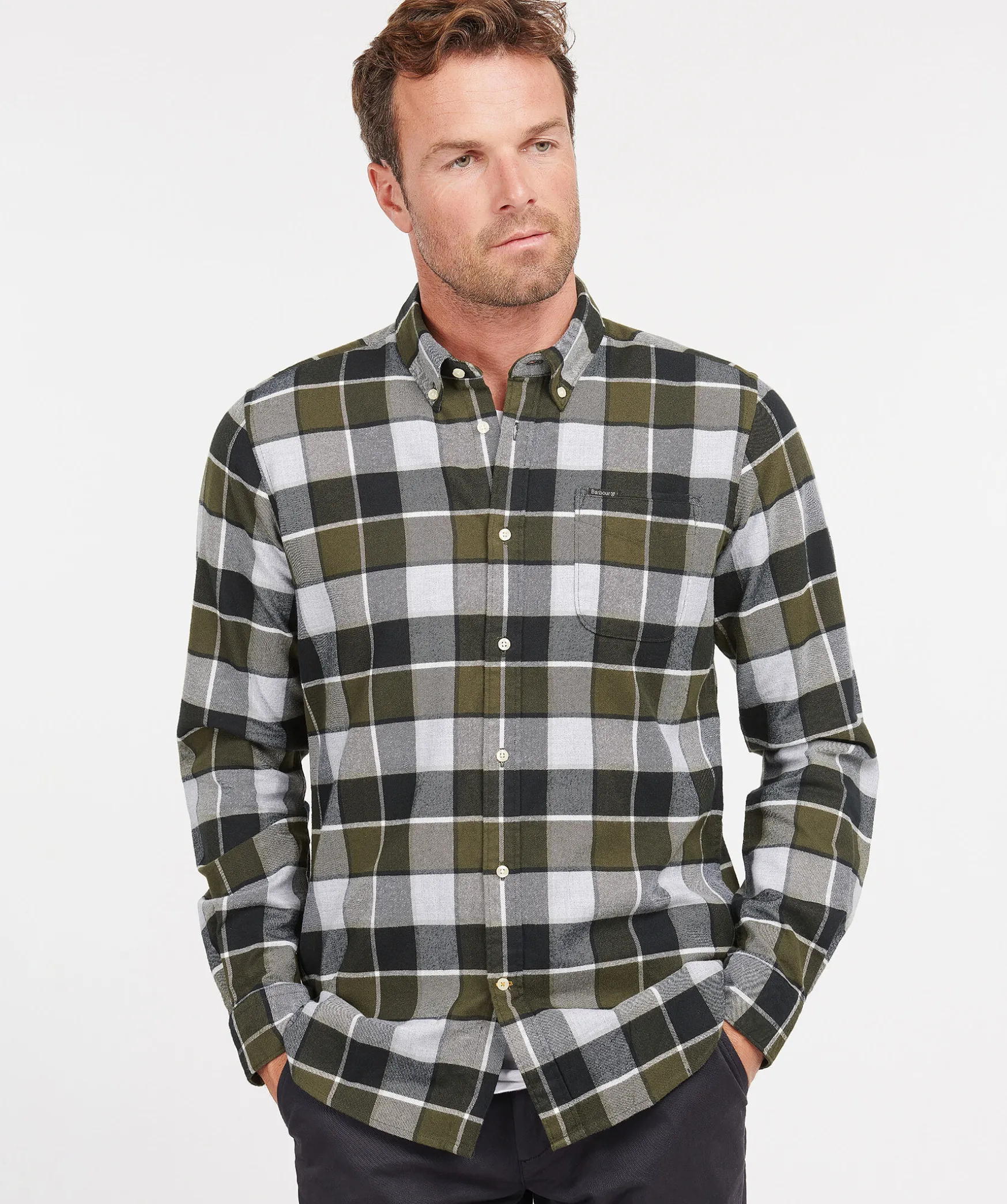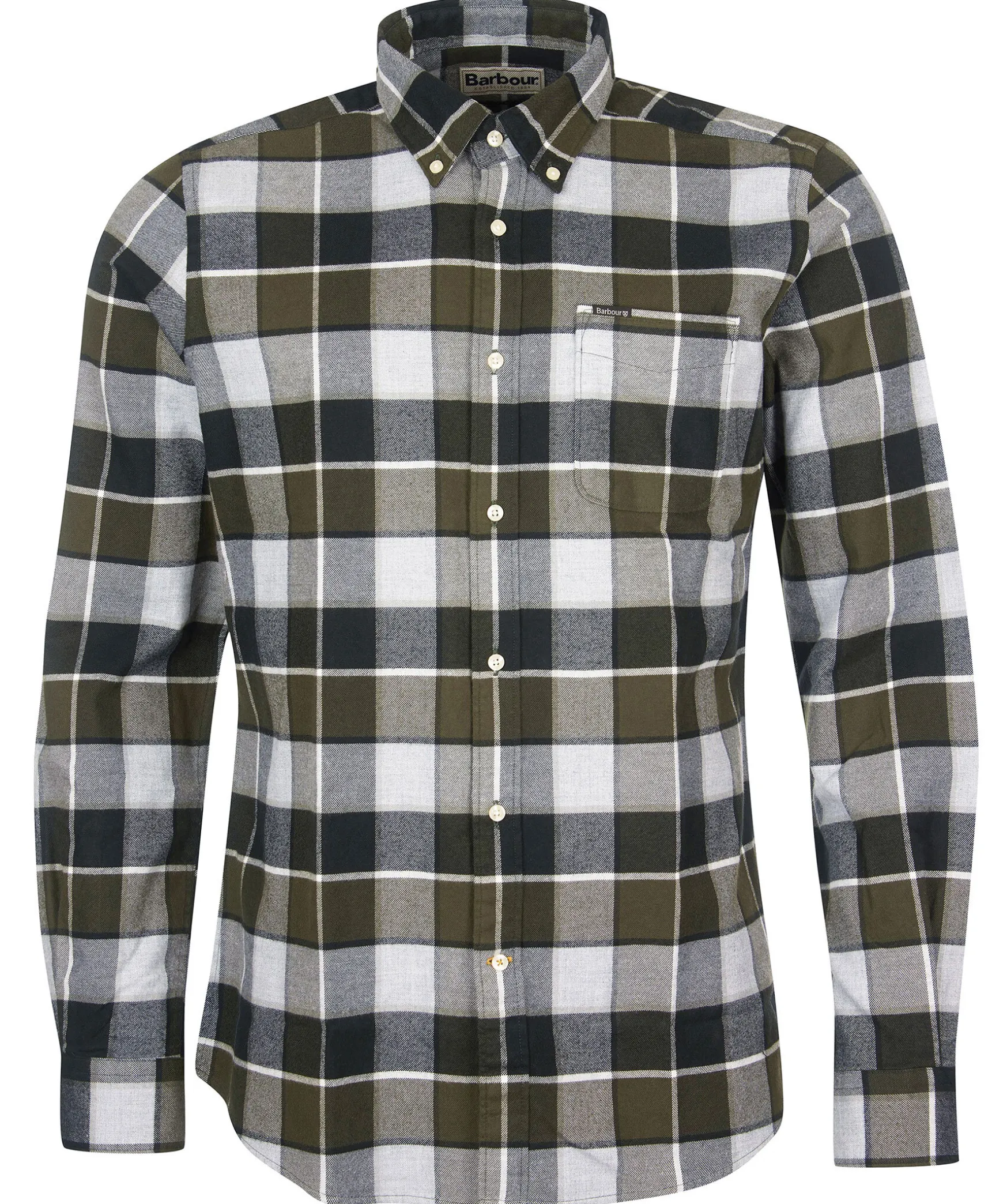 Gron Och Gra, Rutig Skjorta Fran Barbour. Tillverkad I Mjuk Bomull. Button Down Krage, Tailored Fit, Brostficka Med Liten Logotyp I Tyg. Vita Knappar Fram Och I Armslut.