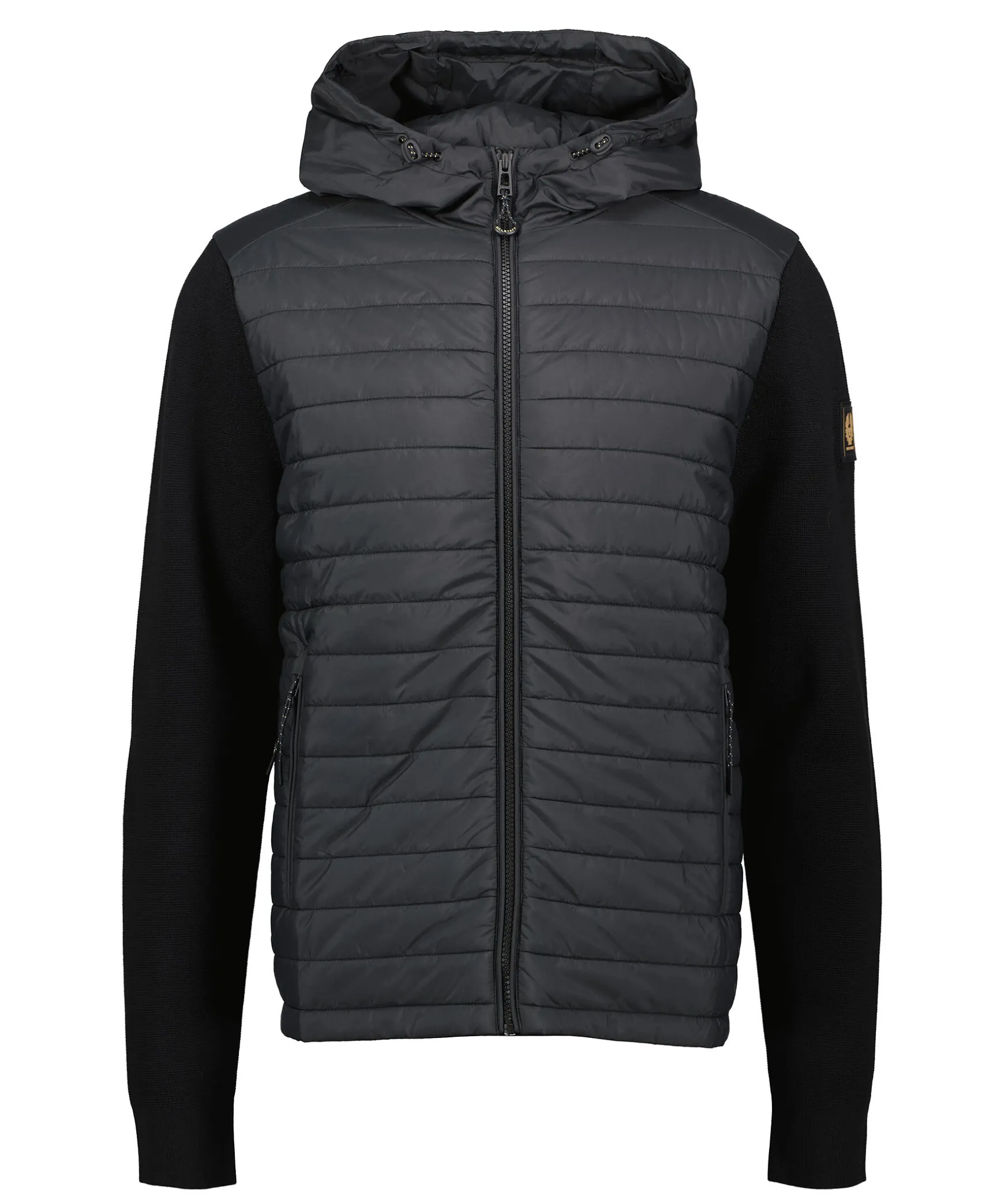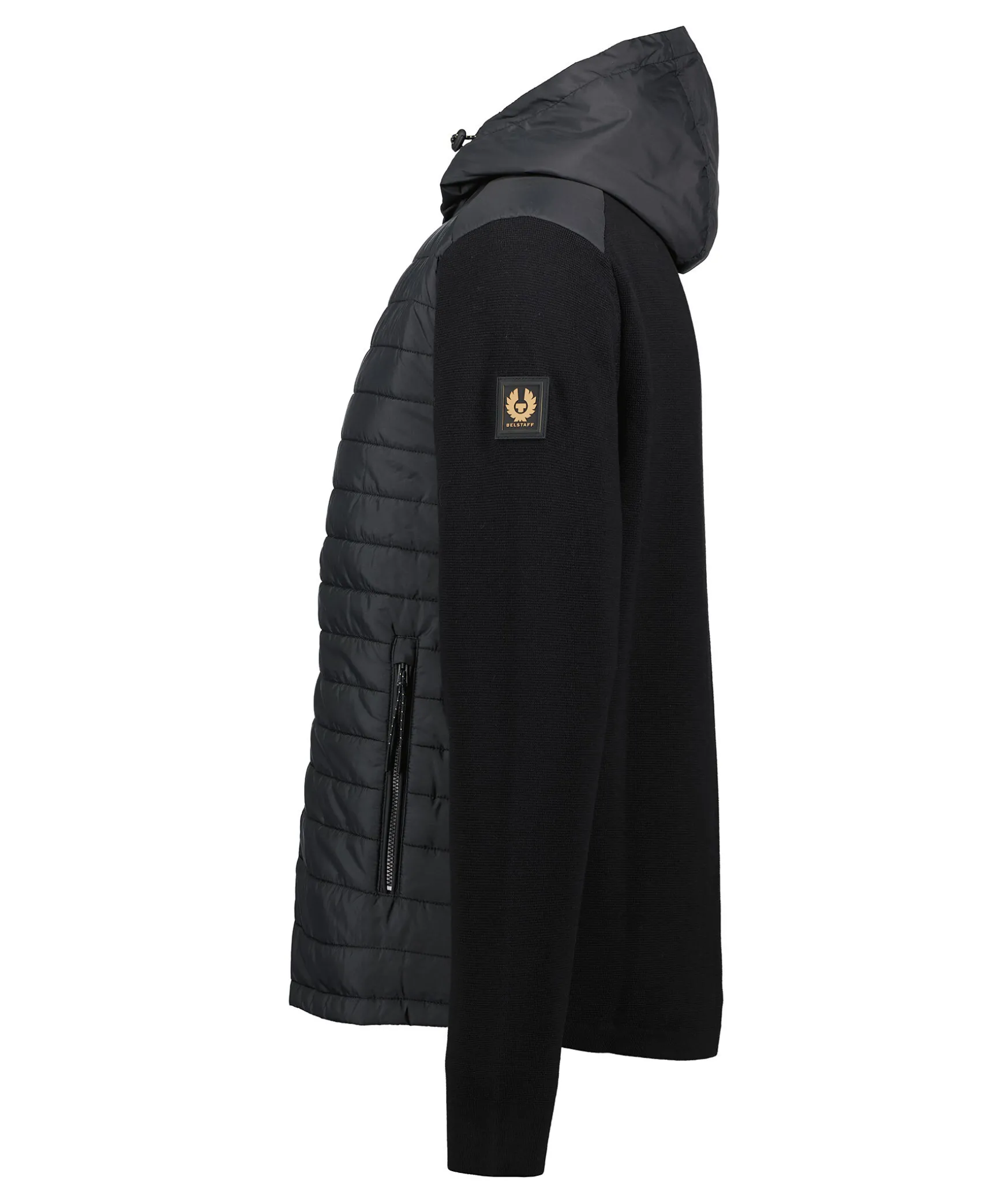 Svart Cardigan Med Huva Fran Belstaff. Koftan Stangs Med Tvavagsdragkedja Framtill Och Har Tva Sidfickor Med Dragkedja. Quiltat Skaltyg Framtill. Den Har En Blandning Av Material For En Djarv, Skyddande Finish. Den Kanal-Quiltade Skalpanelen Och En Tratthals Med Dragsko Garanterar Komfort Under Svalare Forhallanden. Phoenix-Lapp Med Broderad Kant Pa Armen.