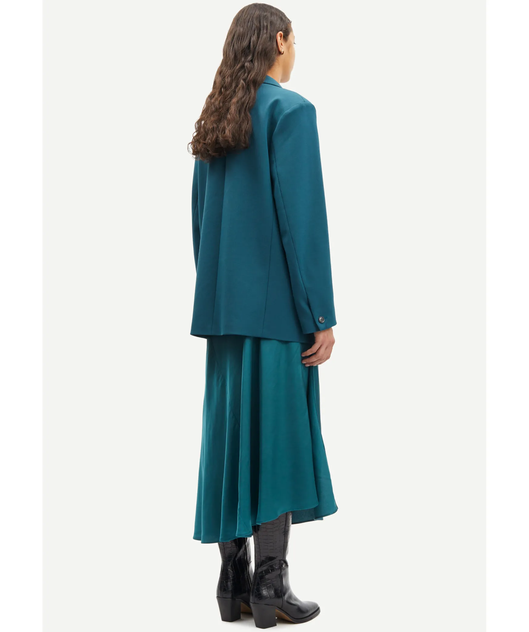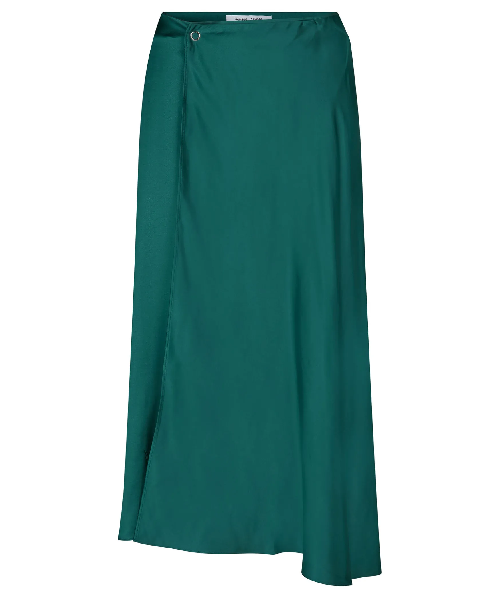 Gronbla Lang Kjol Fran Samsoe Samsoe. Omlott Modell Med Asymmetriskt Plaggslut Som Fasts Med Tryckknapp. Satin Vavt Tyg I Viskos.