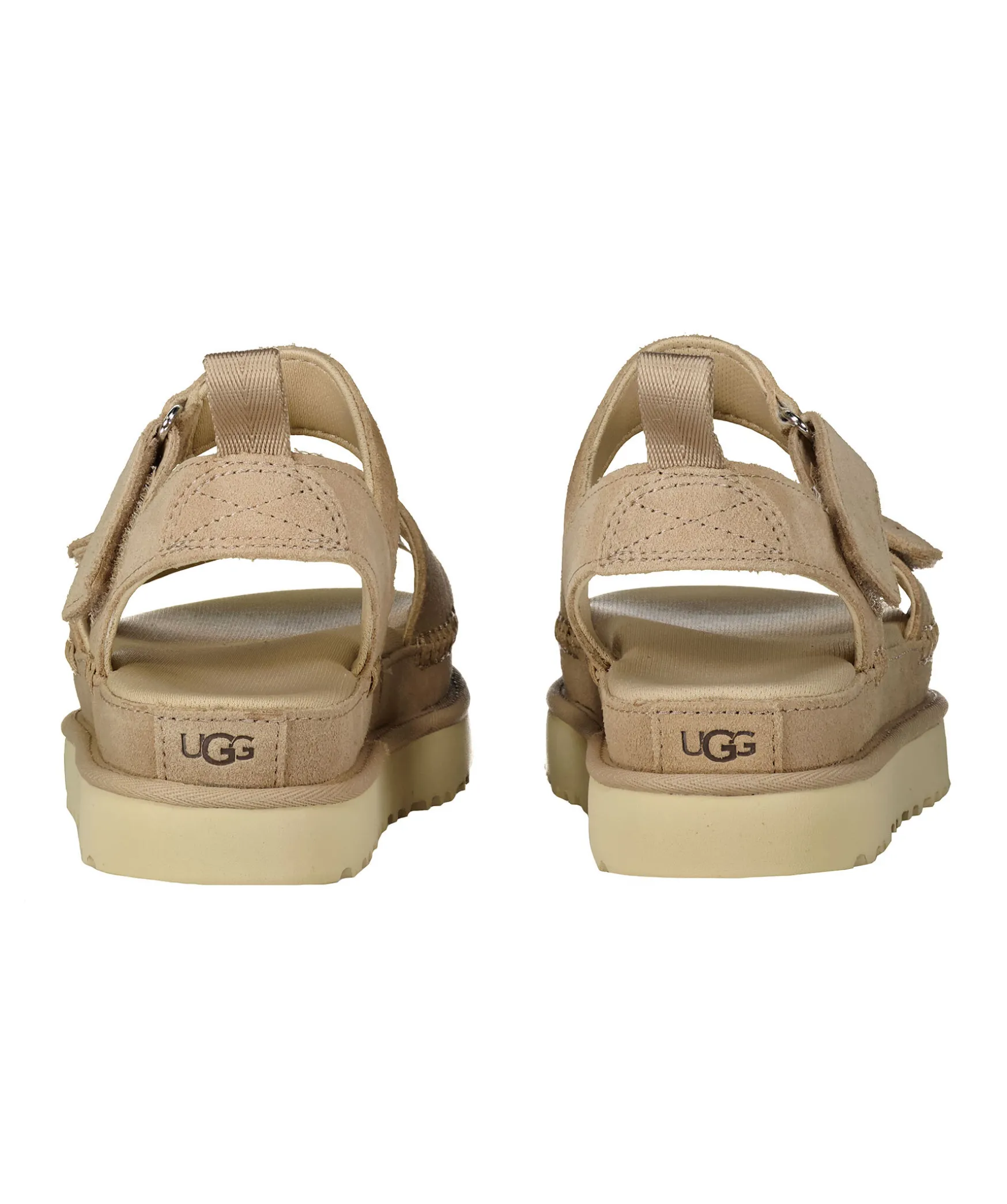 Ljusbeige Plattformssandal Fran Ugg. Tillverkad Av Fin Mocka Och Har Tva Justerbara Remmar Upptill Som Justeras Med Kardborreband Som Ger En Bra Passform. Platasula I Skumgummi Och Treadlite By Ugg™ Yttersula Som Ger Bra Stod Hela Dagen. Sulan Ar 4,5 Cm Hog.