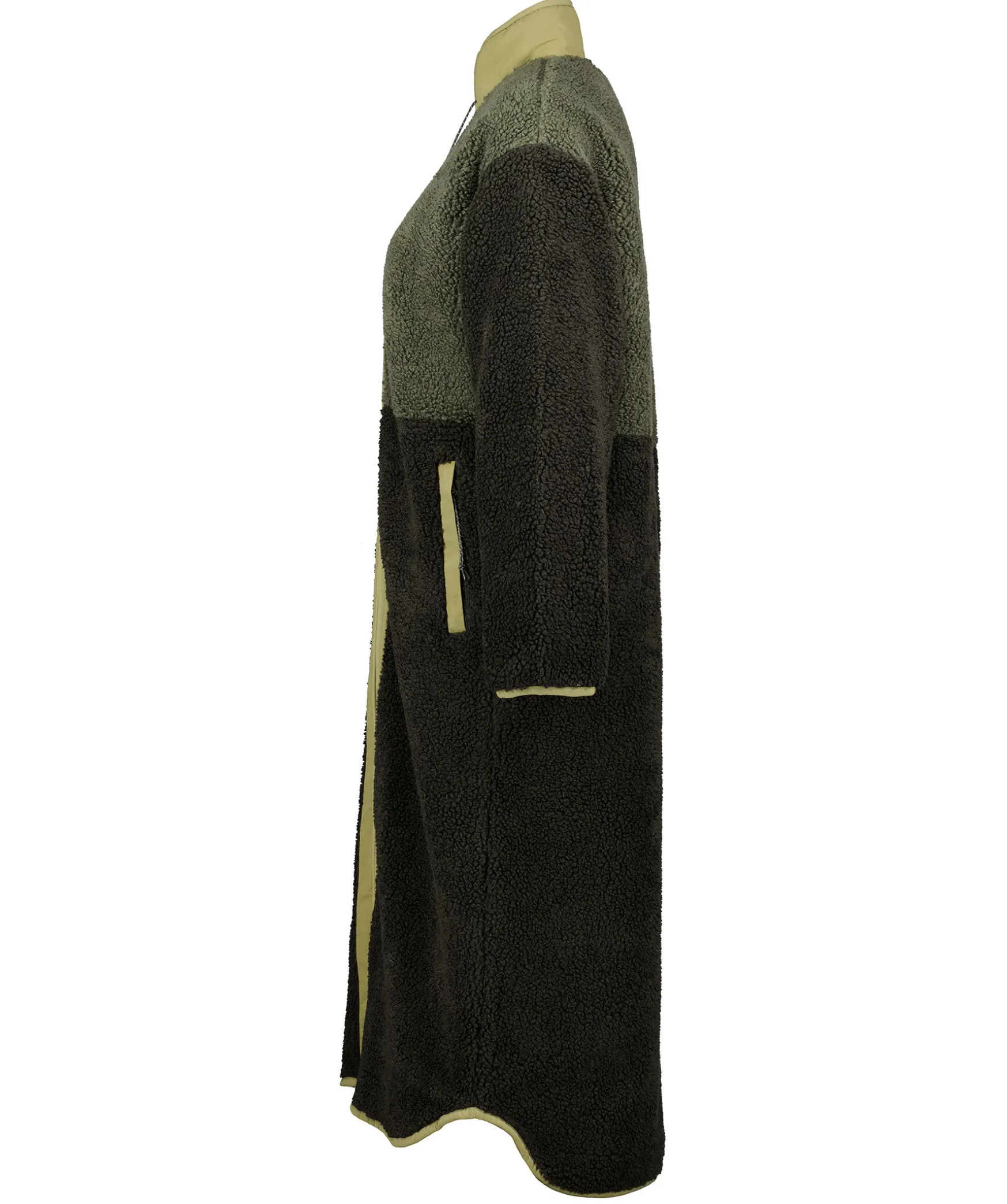 Lang Fleecejacka I Tre Grona Nyanser Fran Peak Performance. Jackan Har En Oversized-Design Och Kontrast Tyg Vid Jackans Dragkedjor. Stangs Med En Tvavagsdragkedja.Tva Framfickor Och Liten Elastisk Mudd Vid Arm- Och Plaggslutet. Plagget Ar Ca 126Cm Langt I Storlek S – Matt Fran Kragen Till Ryggslutet.