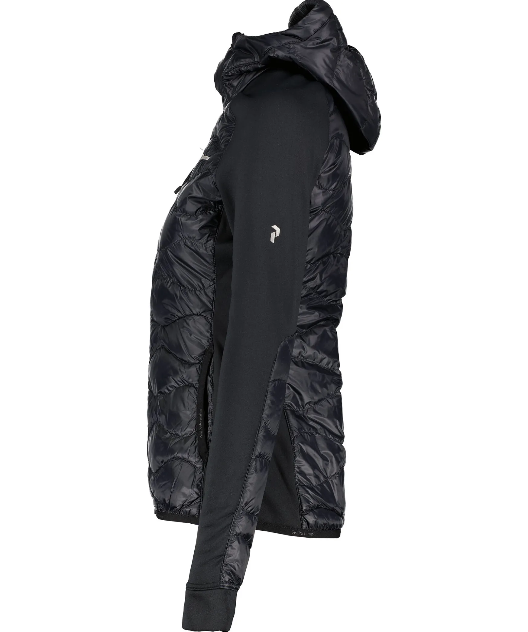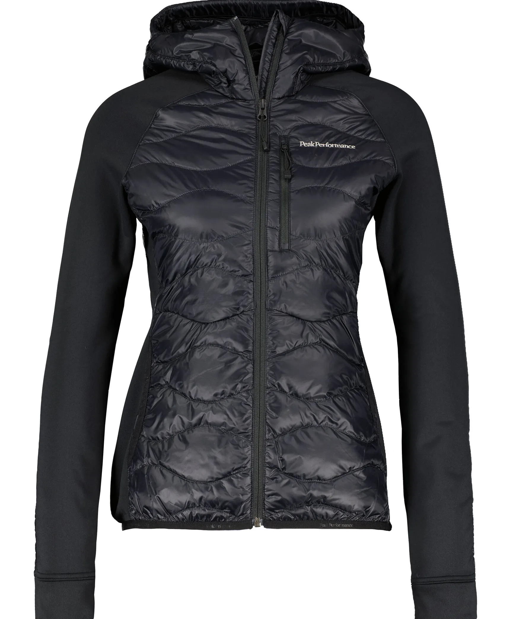 Svart Hybridjacka Fran Peak Performance. Paneler I Dun Pa Jackans Framsida, Ryggen Och Armarna. Stangs Framtill Med Dragkedja. Brostficka Som Stangs Med Dragkedja, Tva Fickor I Sidan. Broderad Logotyp Pa Vanster Arm Och Brost. Smal Resar Med Logotyp I Jackslut.