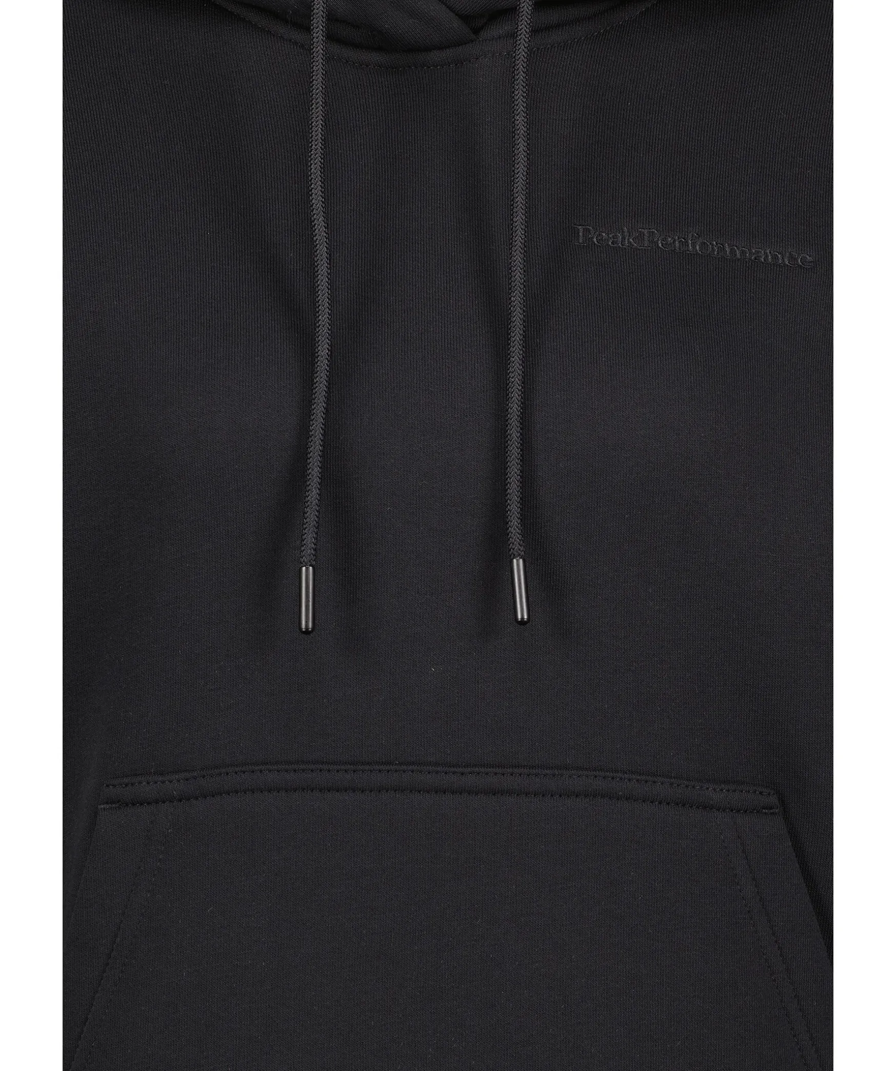 Svart Hoodie Fran Peak Performance. Tyget Ar Av Hogkvalitativ Bomullsjersey Och Har En Borstad Insida Vilket Gor Att Den Kanns Otroligt Mjuk Och Skon. Snorning I Luvan, Kanguruficka Pa Magen Och Broderad Ton-I-Ton Logga Pa Vanster Sida Av Brostet.