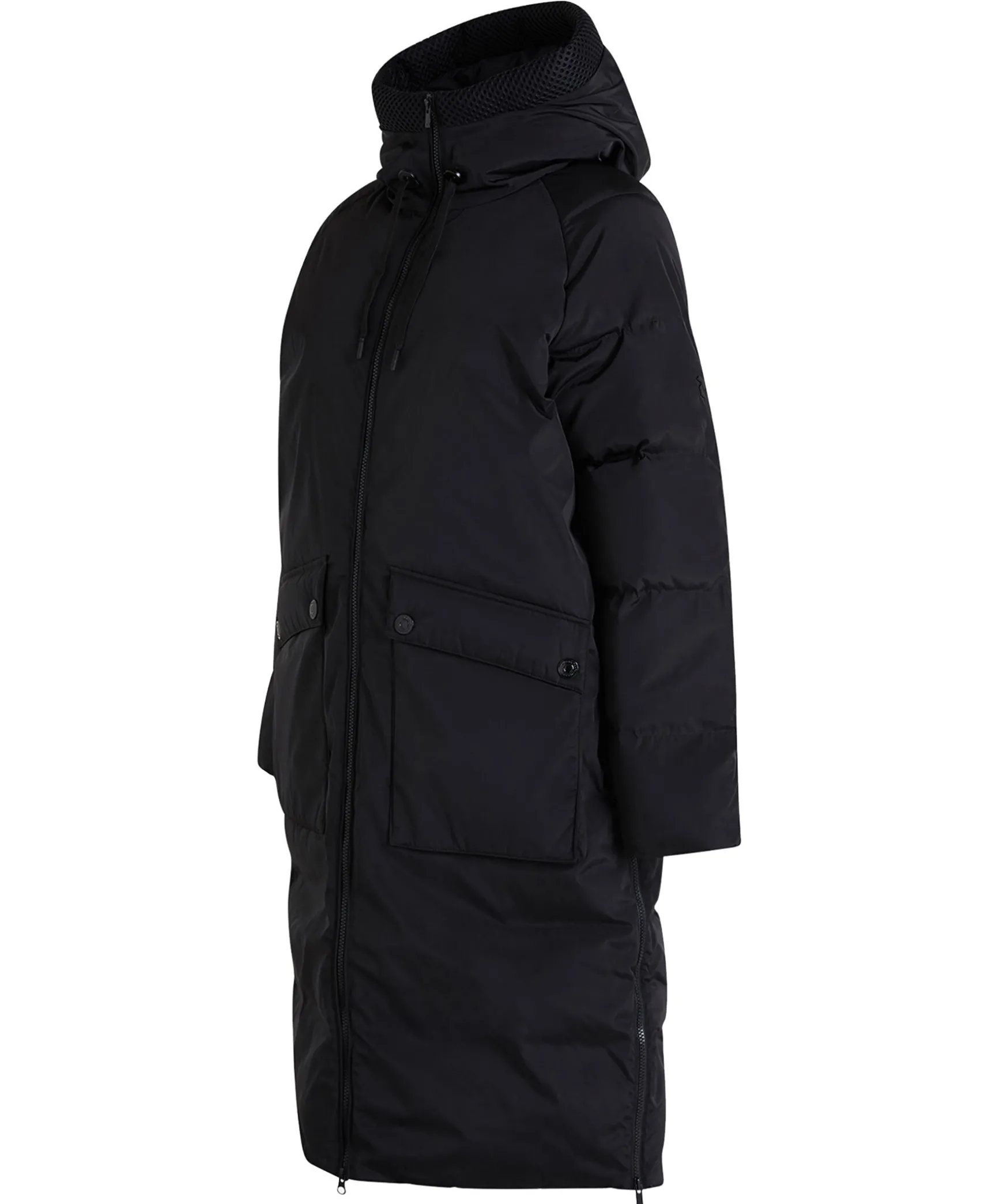 Svart Dunjacka Tillverkad Av Ett Glansigt Material Med Detaljer I 3D-Mesh Fran Peak Performance. Jackans Snygga Utseende, Design Och Den Stora Siluetten Skapar En Modern Form Som Kan Hantera Lager-Pa-Lager. Ansvarsfullt Producerat Dun Som Haller Dig Varm Med Gott Samvete. Generos Huva Med Meshdetaljer Och Dragsko Och Yttre Upphangningsogla I Nacken. Innerficka Med Dragkedja, Framfickor Med Ficklock Och Tryckknappar Samt Tvavagsdragkedja Hela Vagen Fram.