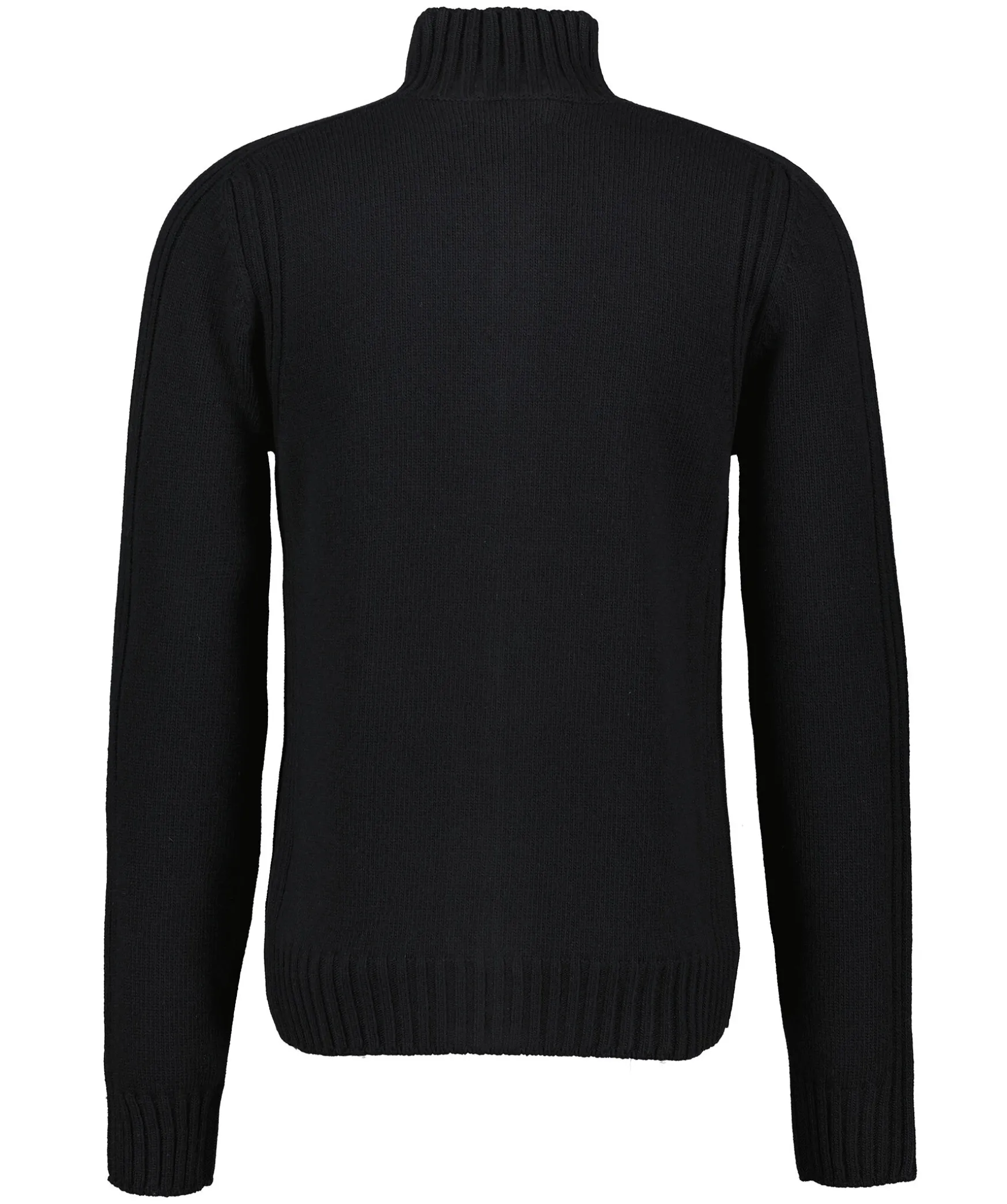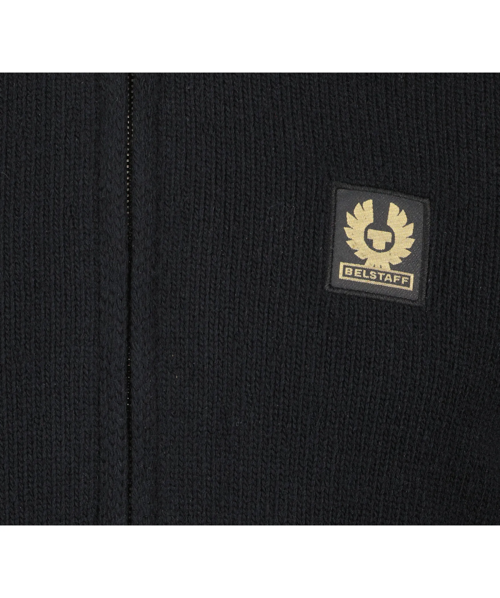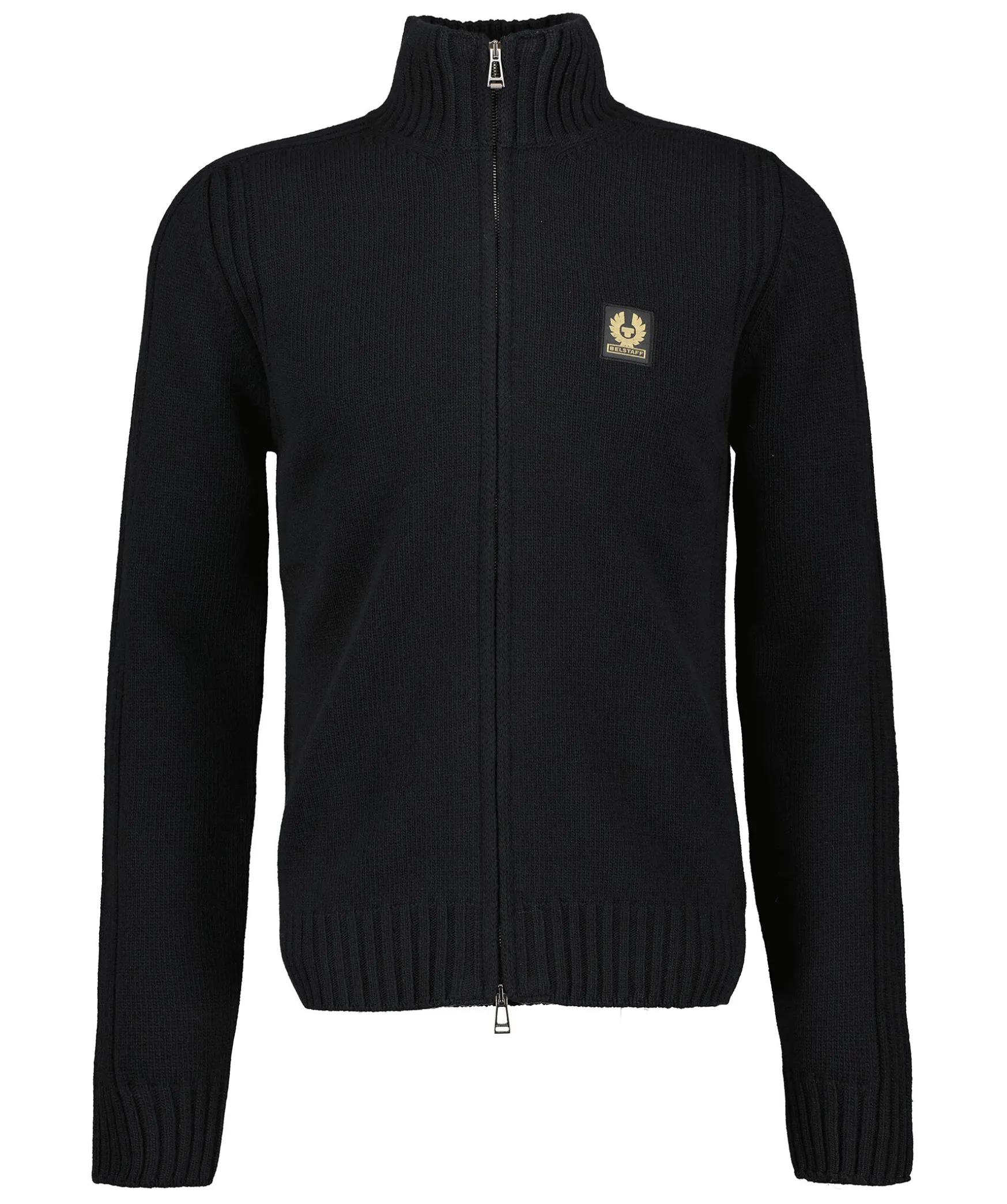 Svart Cardigan Med Tvavagsdragkedja Fran Belstaff. Ribbstickade Muddar I Kragen, Arm- Och Plaggslut. Broderad Logga Pa Brostet. Tillverkad I 100% Ull.