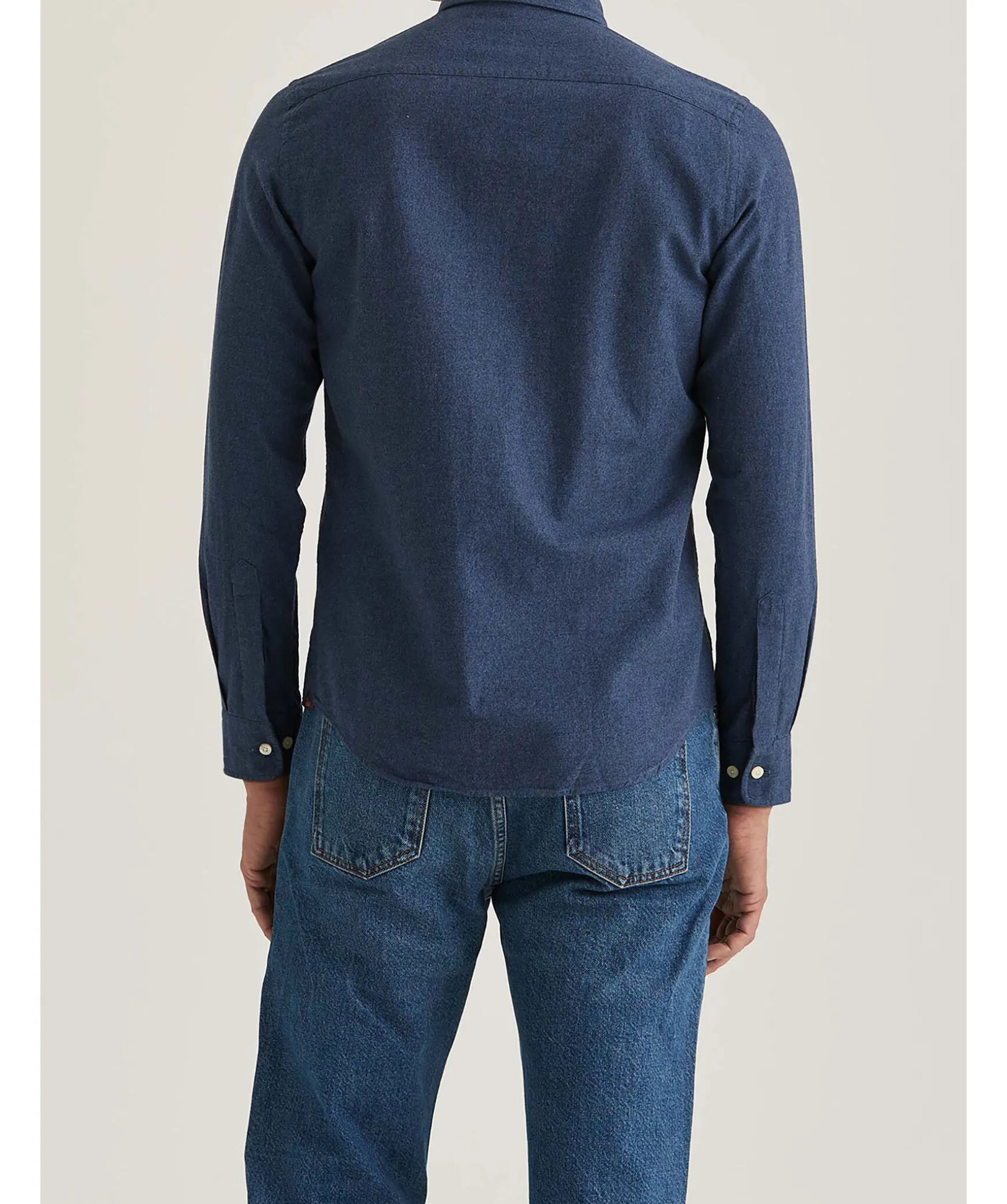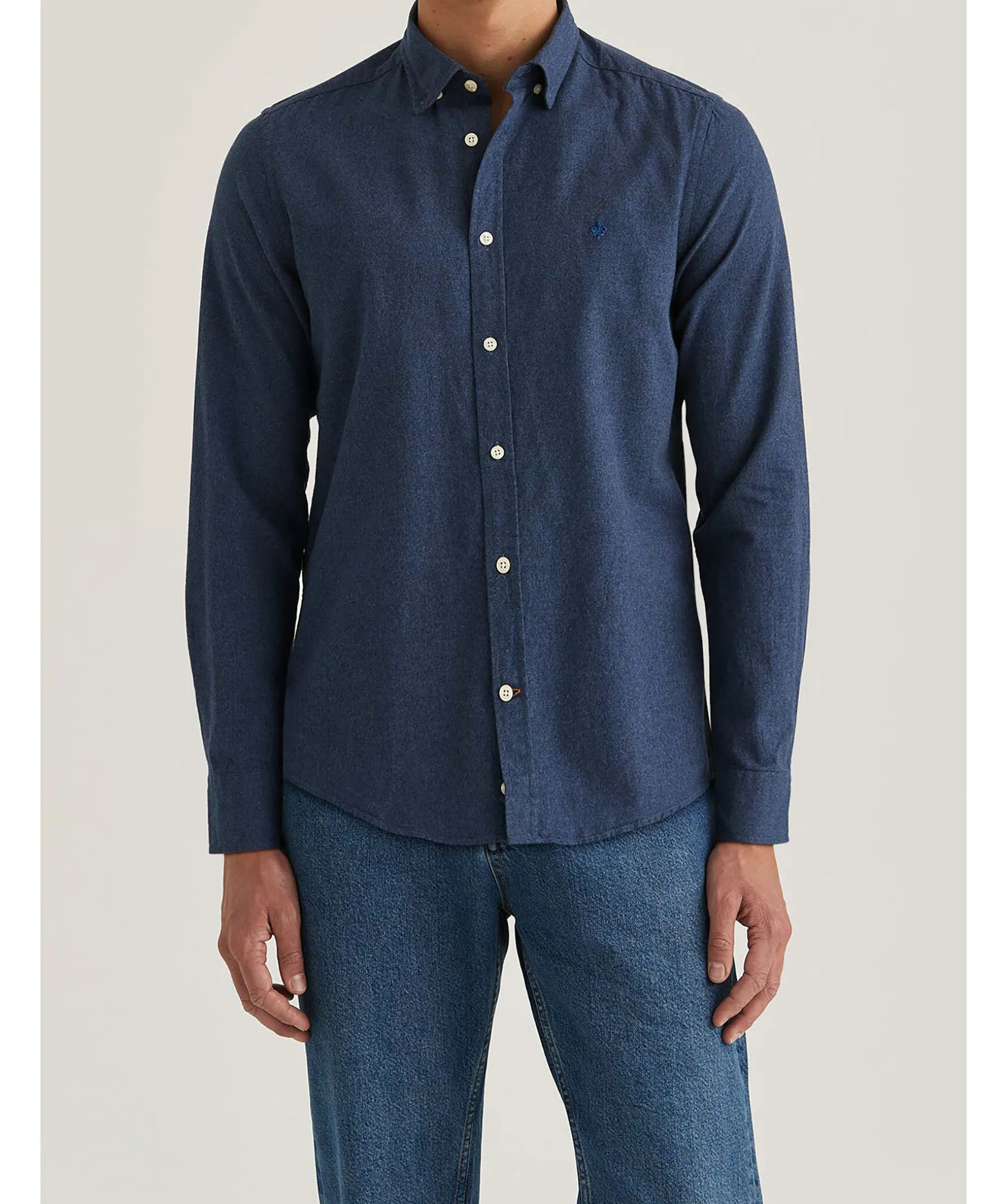 Morkbla Melerad Flanellskjorta Fran Morris. Skjortan Har En Slim Fit Passform, Broderad Logotyp Pa Brostet Och En Button-Down Krage. Tillverkad I 100% Bomull.