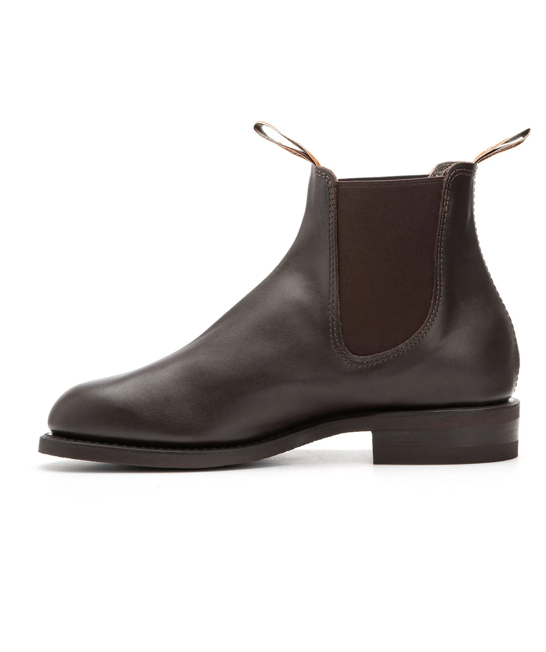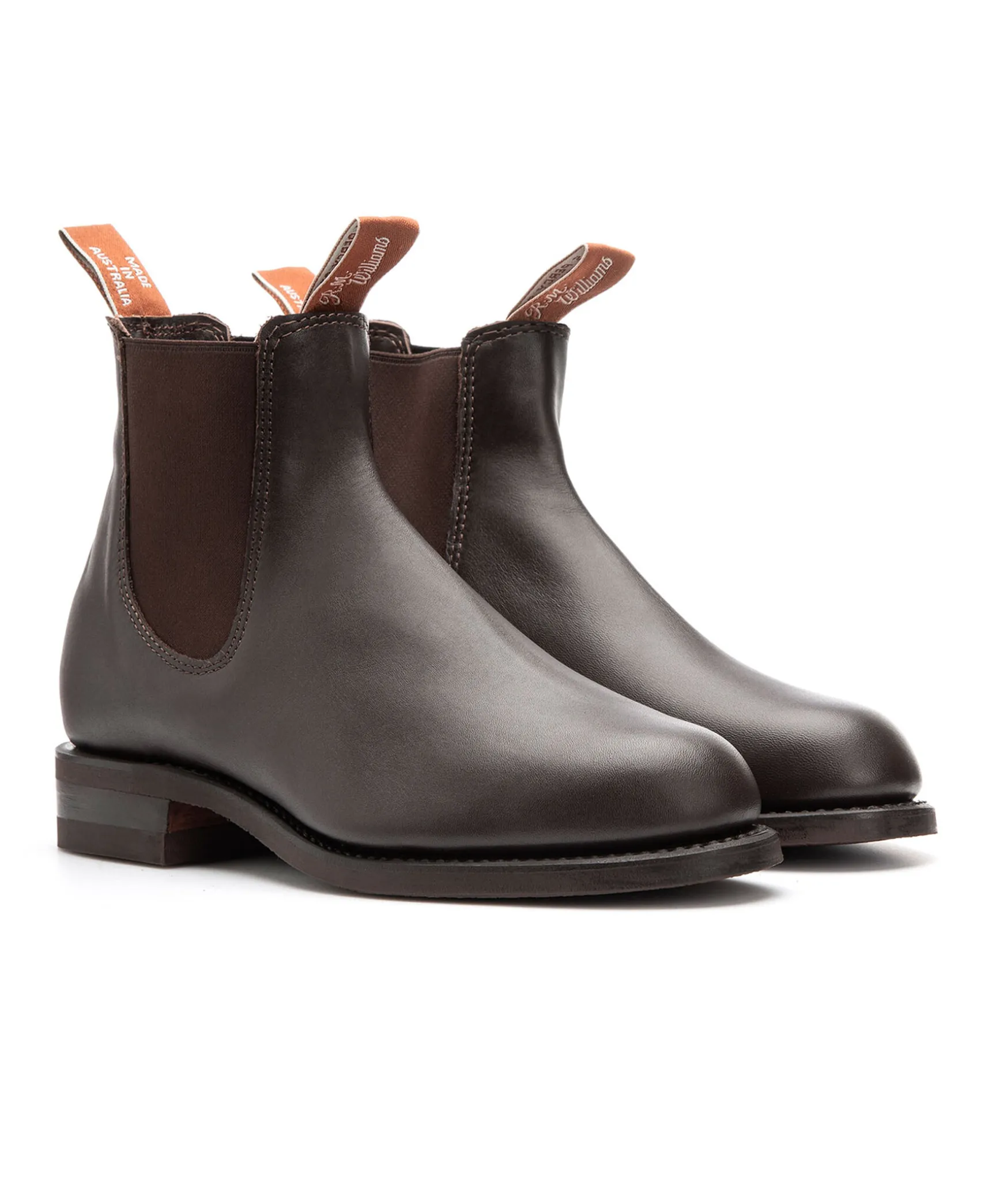 Handgjorda Boots Fran R.M. Williams Med Elastiska Sidopaneler. Elegant Silhuett Med Aningen Spetsig Framdel Och Fyrkantig Ta.