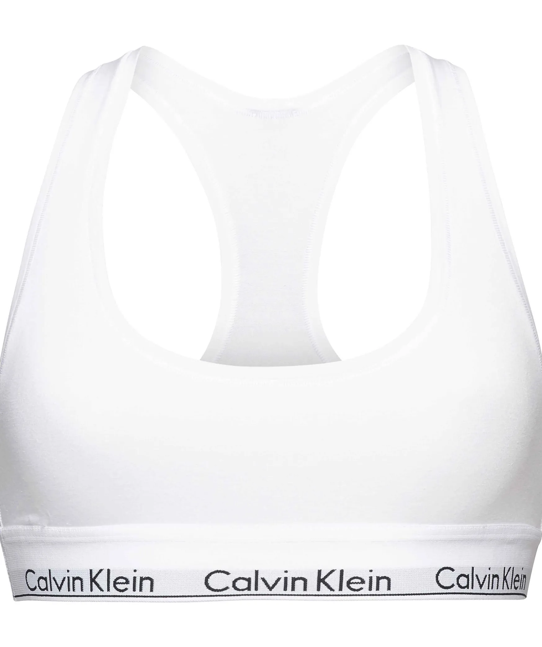 Vit Bh Fran Calvin Klein Utan Vaddering Och Bygel. Brottarrygg Och Resar Med Logga Nedtill.