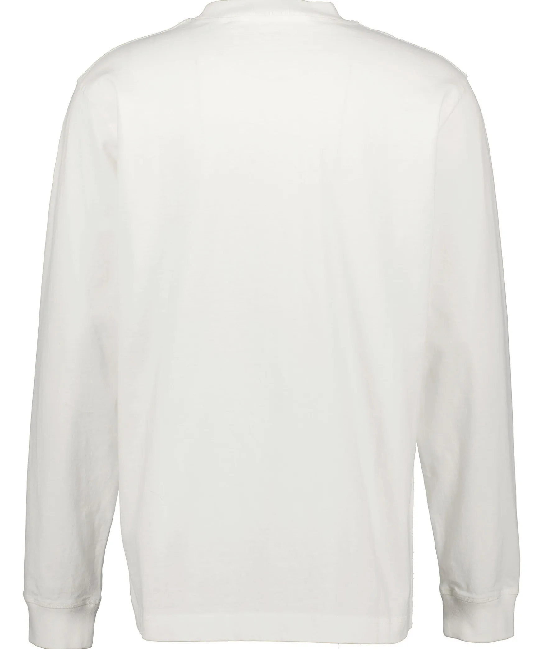 Vit, Langarmad T-Shirt Fran Acne Studios. Trojan Ar Gjord I Ett Kraftigt Bomullstyg Med En Ribbad Halsringning Samt Ribbade Muddar I Armslut. Liten Logotyp Tryckt Pa Brostet. Avslappnad Passform Med Droppade Axlar.