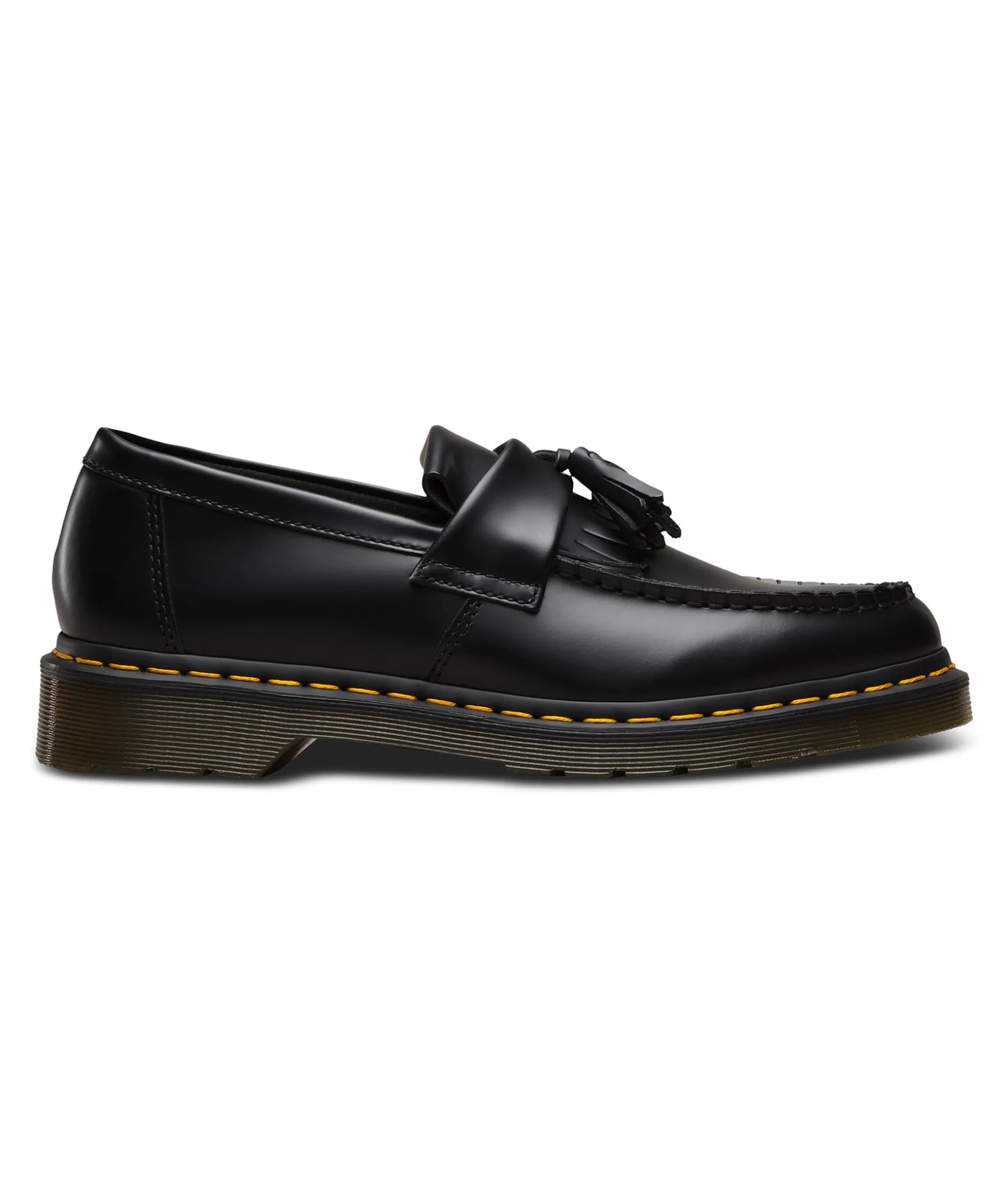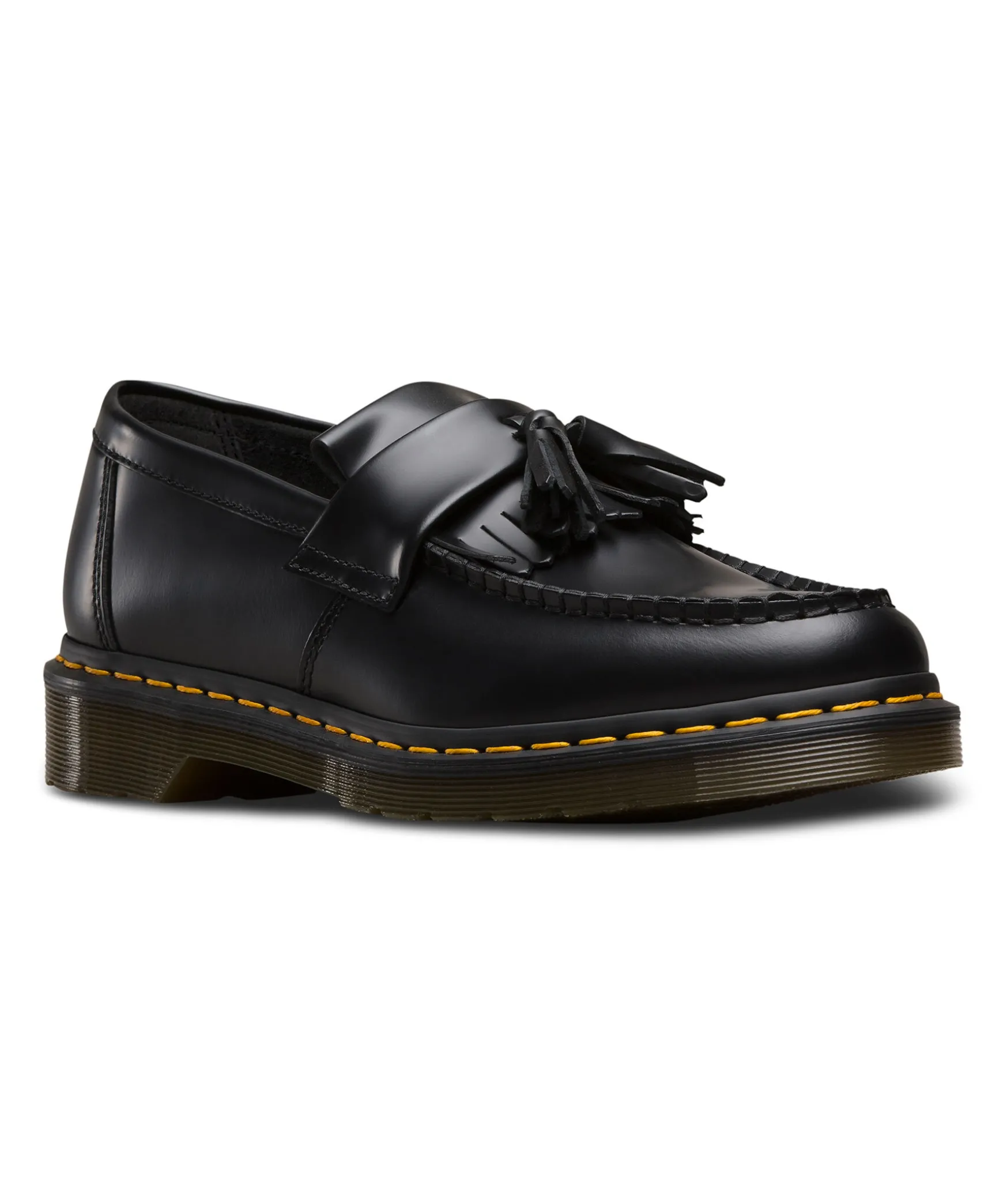 Svarta Loafers I Lader Fran Dr. Martens. Tva Tassels Och En Sa Kallad Kiltie Fringe Fram. Denna Sko Ar Goodyear-Svetsad, Vilket Betyder Att Skon Och Sulan Sys Ihop I Var Varmeforseglande Z-Welt-Som. Skorna Har Var Ikoniska Airwair ™ Sula, Som Ar Olje-Och Fettresistent, Med Bra Talighet Och Halkmotstand. Tillverkad Av Dr. Martens Beromda, Slitstarka Lader; Smooth, Ett Latt Texturerat, Mycket Slitstarkt Material Med En Latt Glans.