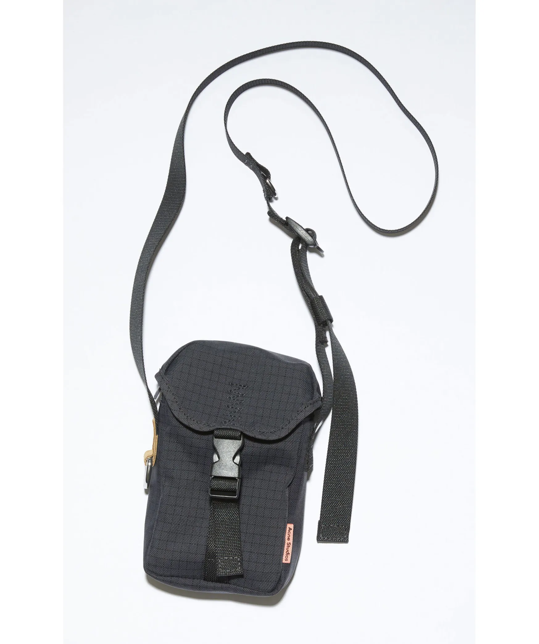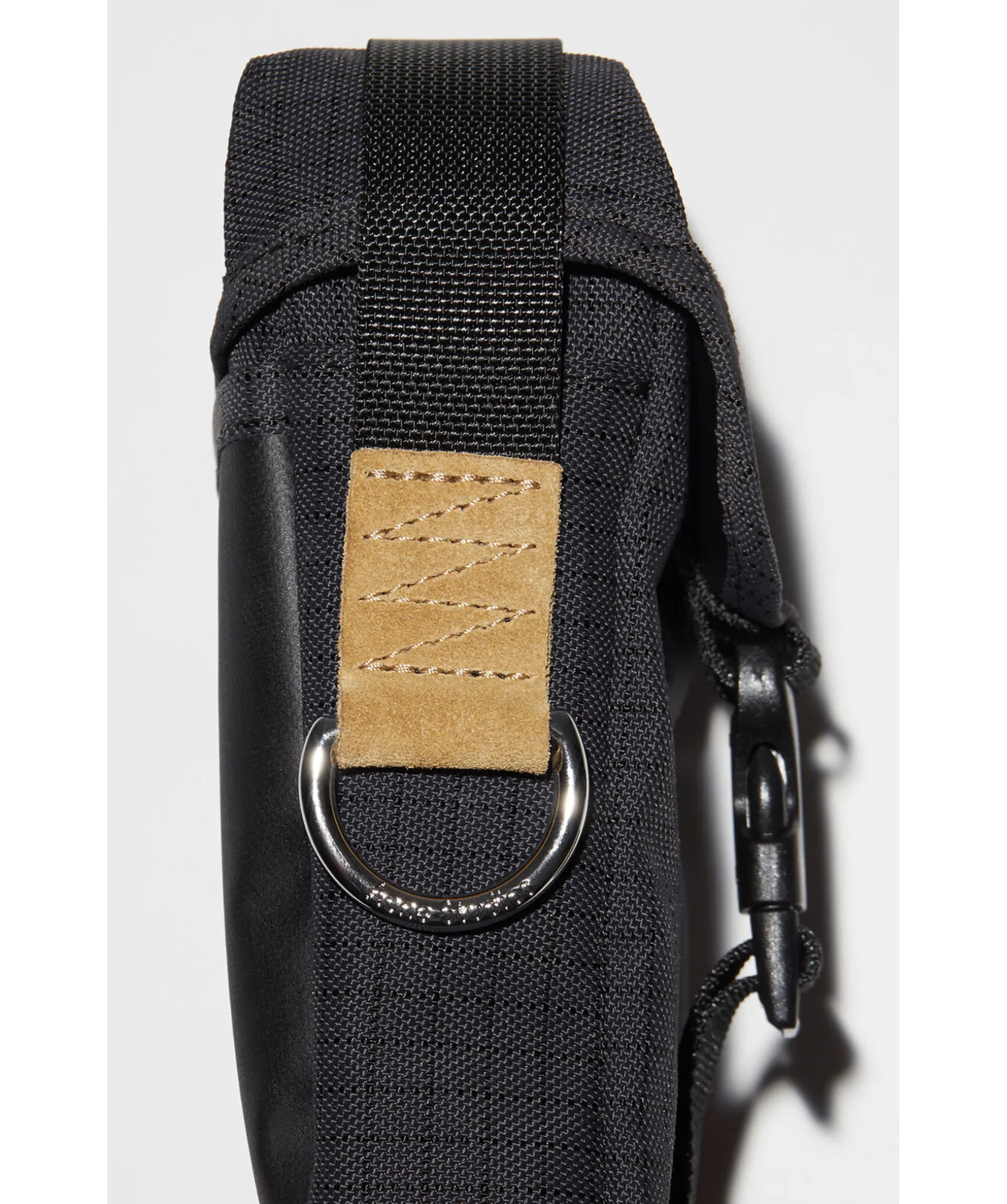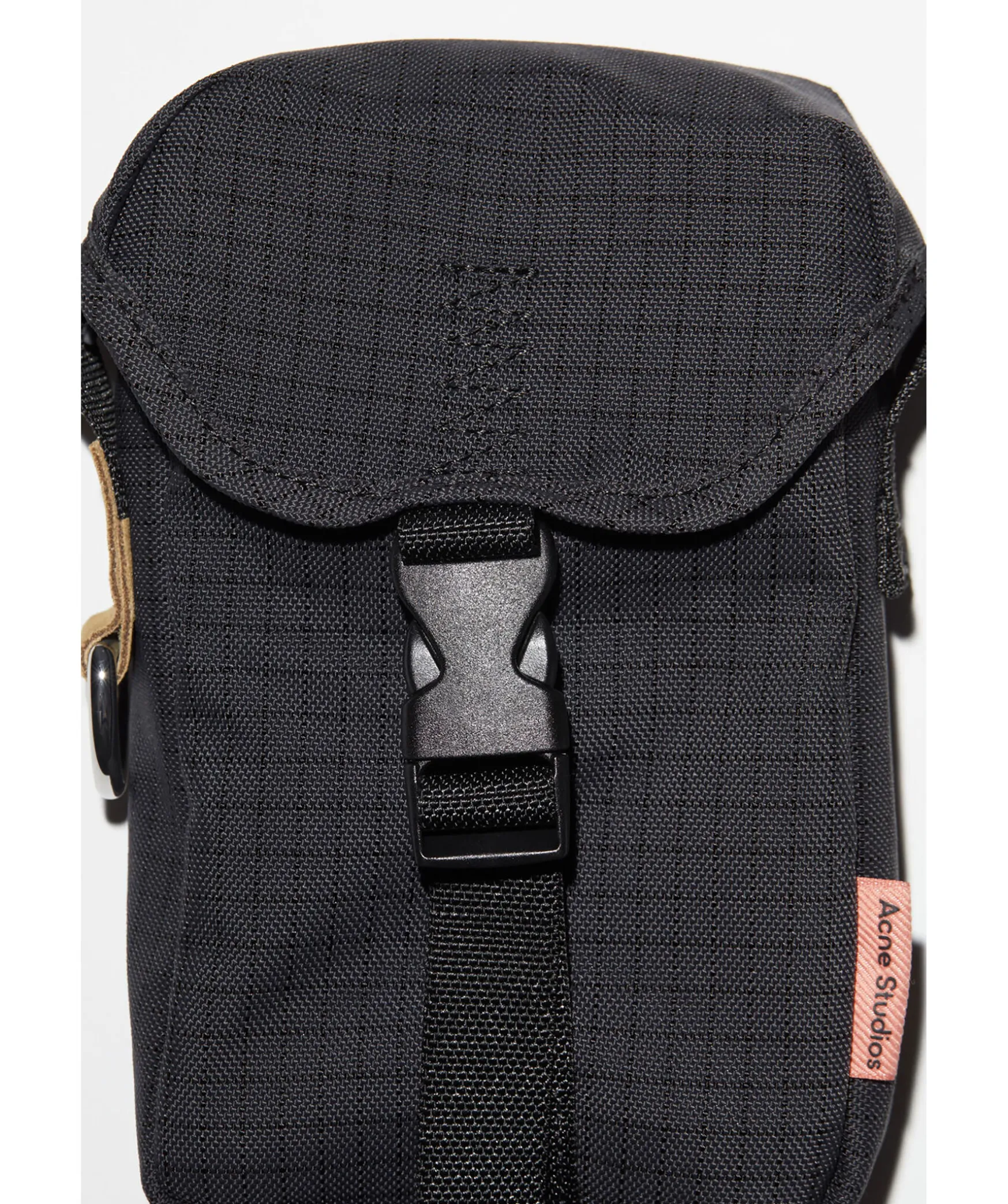 Svart Liten Vaska I Nylon Fran Acne Studios. Justerbart Spanne Och Axelrem. Ring I Metall Pa Vaskans Hogra Sida. Vaskans Matt: H 20Cm X B 12Cm X 4Cm.
