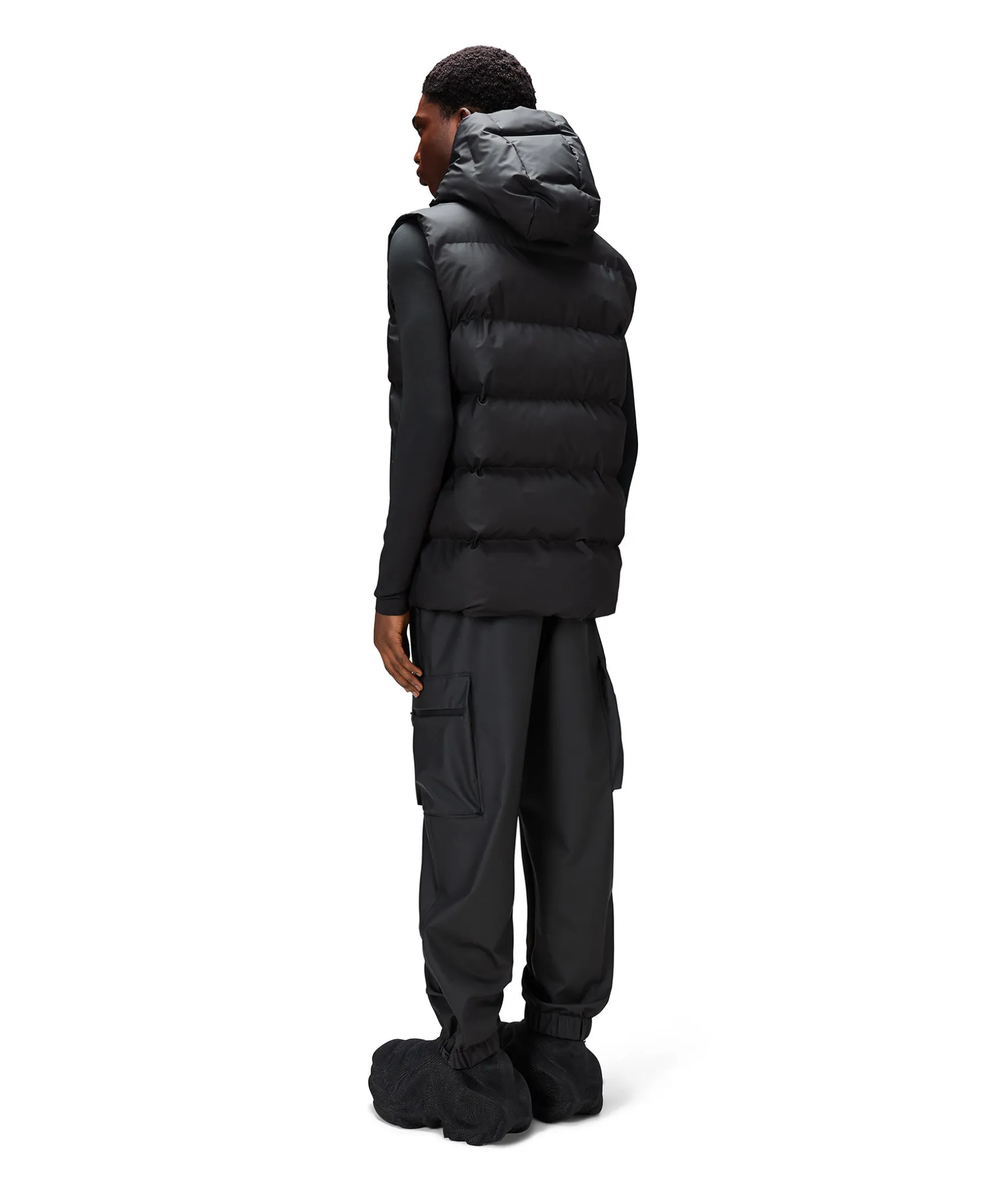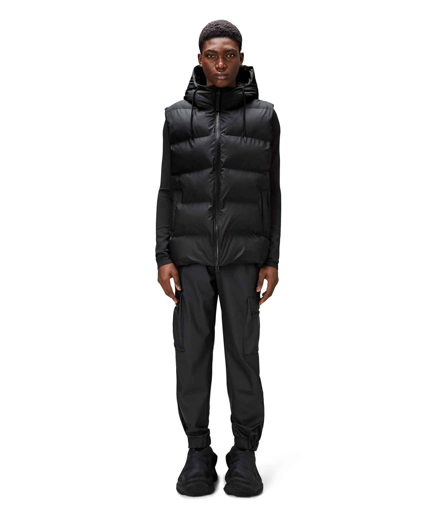 Svart Puffer Vast Fran Rains. En Vattentat Vast Med En Ren, Lattburen Puffer-Estetik. Som En Del Av Alta Puffer-Serien Kannetecknas Plagget Av En Raffinerad Silhuett, Breda Signaturkammare Och Avskalade Detaljer. Den Har Lyxiga Puffern I Vattentatt Signaturtyg Som Andas Bygger Pa Fjaderlos Kammarteknologi Som Haller Dig Varm Och Bekvam I De Kallaste Vadren. Vasten Har Gummerat Tvavagsblixtlas, Ultraljudsgjutna Sommar, Rymliga Fleecefodrade Sidfickor Och Inre Brostficka. Silhuetten Har Fodrad Huva Med Dragsko.