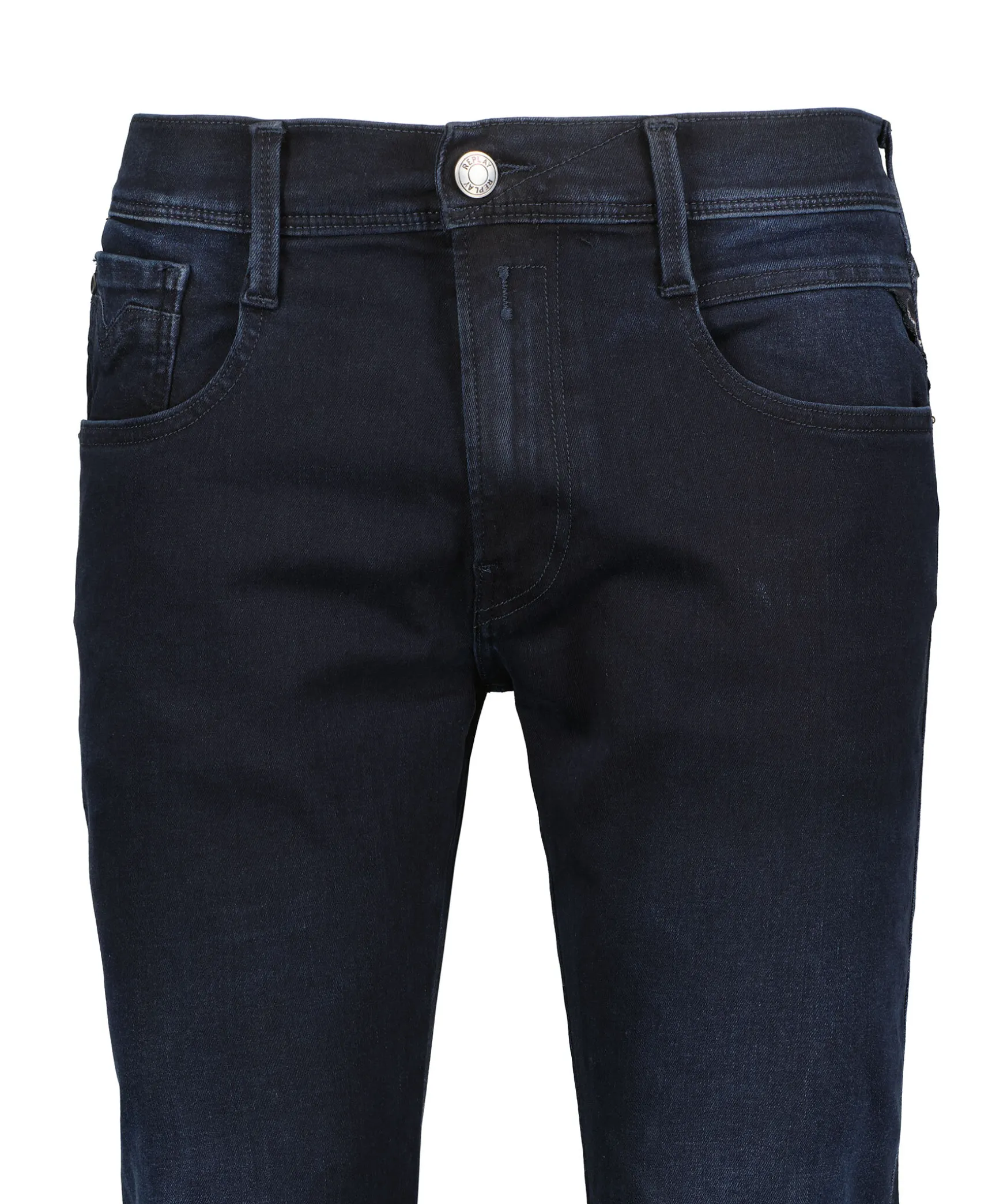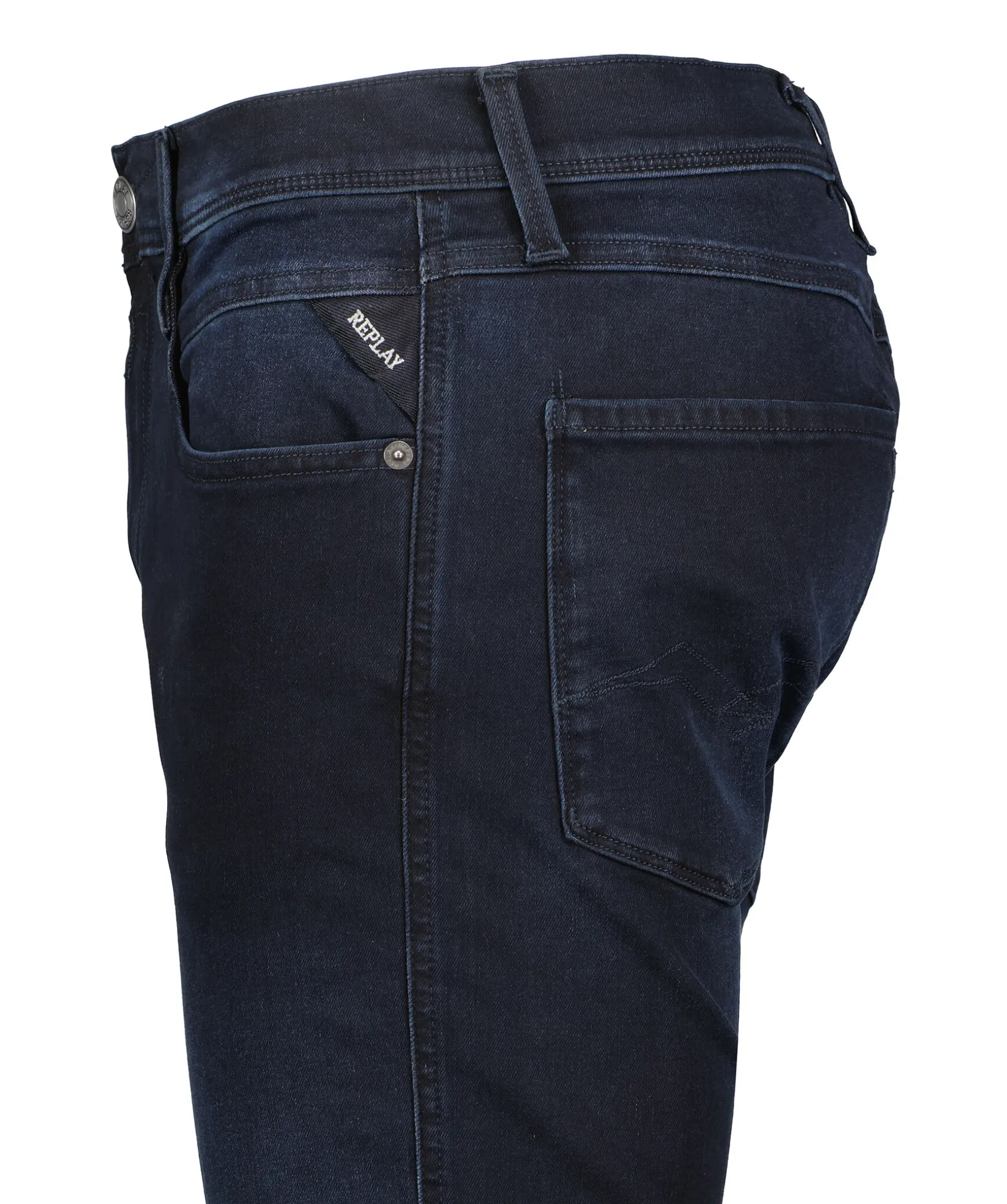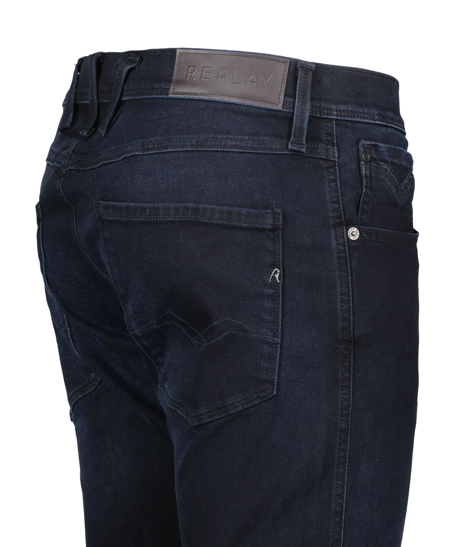 Morkblaa Slim Fit Jeans Fran Replay. Vanlig Midja Och Avsmalnade Ben For En Bekvam Passform. Triangelformad Replay-Etikett Pa Vanster Ficka, Mynt Ficka Och Bakfickor Med Ikoniska Replay-Sommar. R-Formad Logotyp Pa Hoger Bakficka, Lader-Logotyp Pa Linningen. Dragkedja Och Knappgylf Samt Hallor For Balte I Midjan. Innerbenslangd: 74Cm I Storlek 32’30.