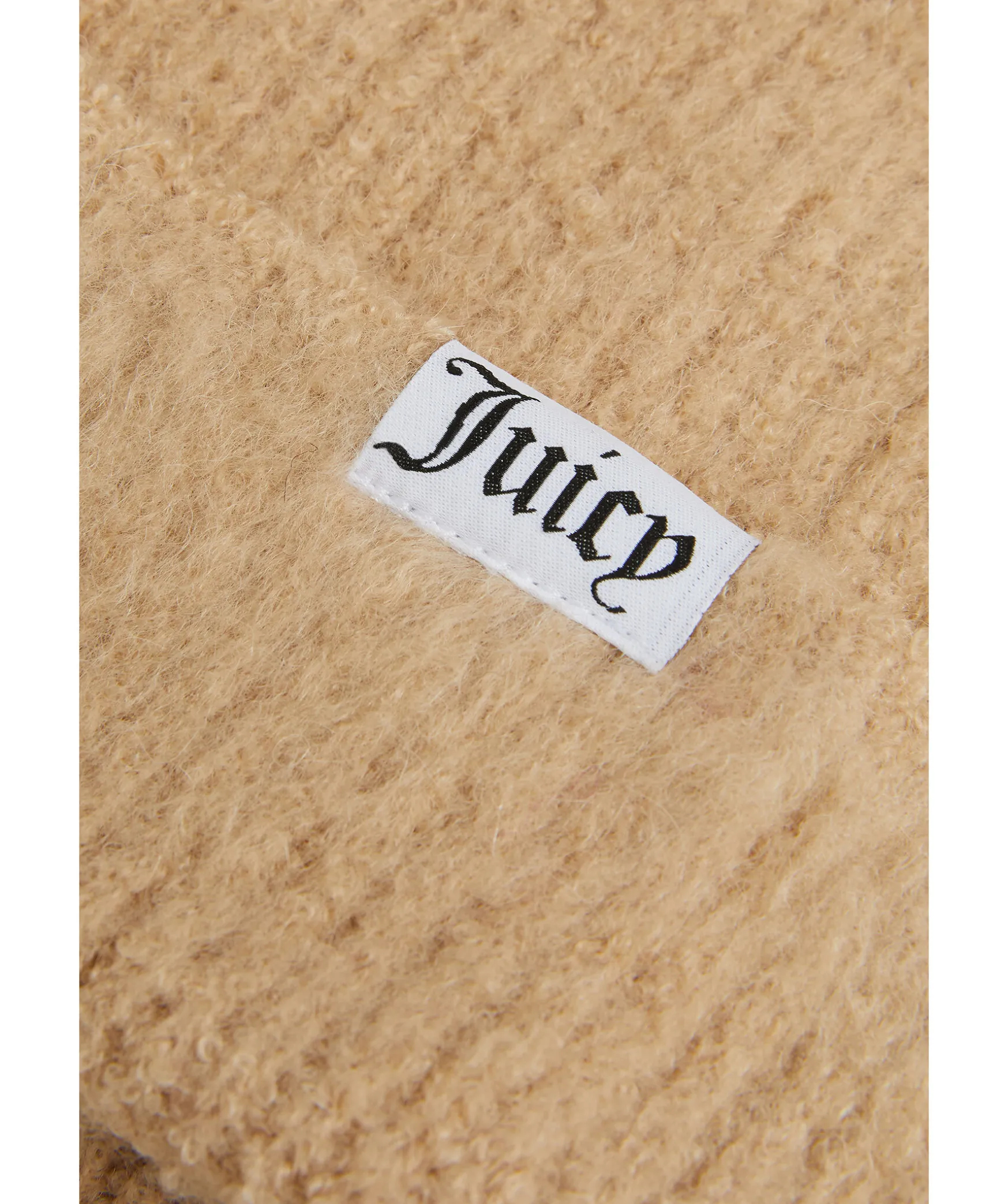Beige Texturstickad Mossa Fran Juicy Couture. Uppvikt Kant Med En Liten Tygpatch. Gjord I En Ullblandning.