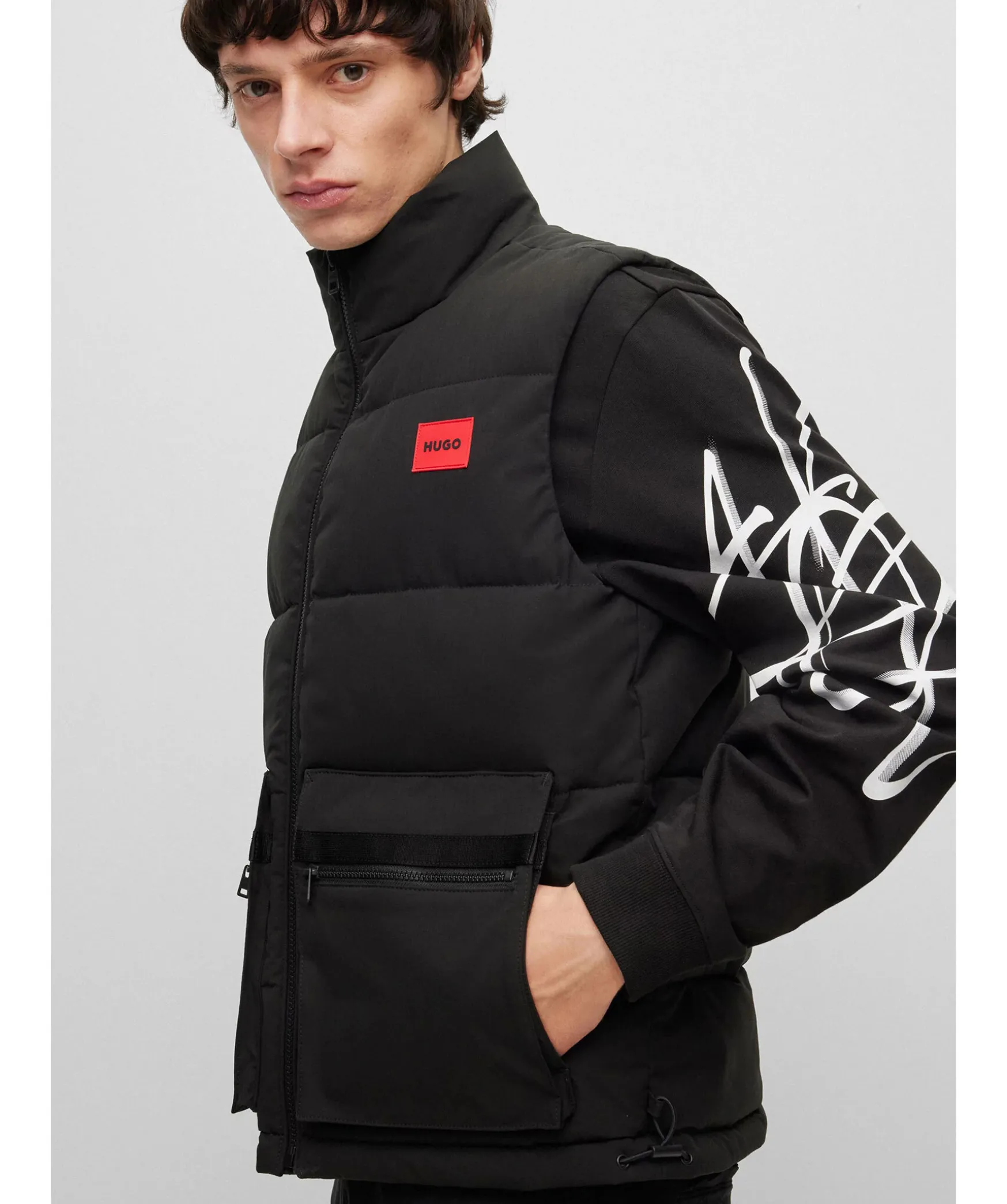 Svart Vast Fran Hugo. Tillverkad I 100% Polyester. Smal Passform I Vattenavvisande Ripstop-Material Med Dragkedjeforsedda Framfickor. Rod Gummerad Logotyp Fran Hugo Menswear. Vasten Har Stakrage Samt Ar Helfodrad. Standardlangd. Dragsko I Vastens Nederkant.