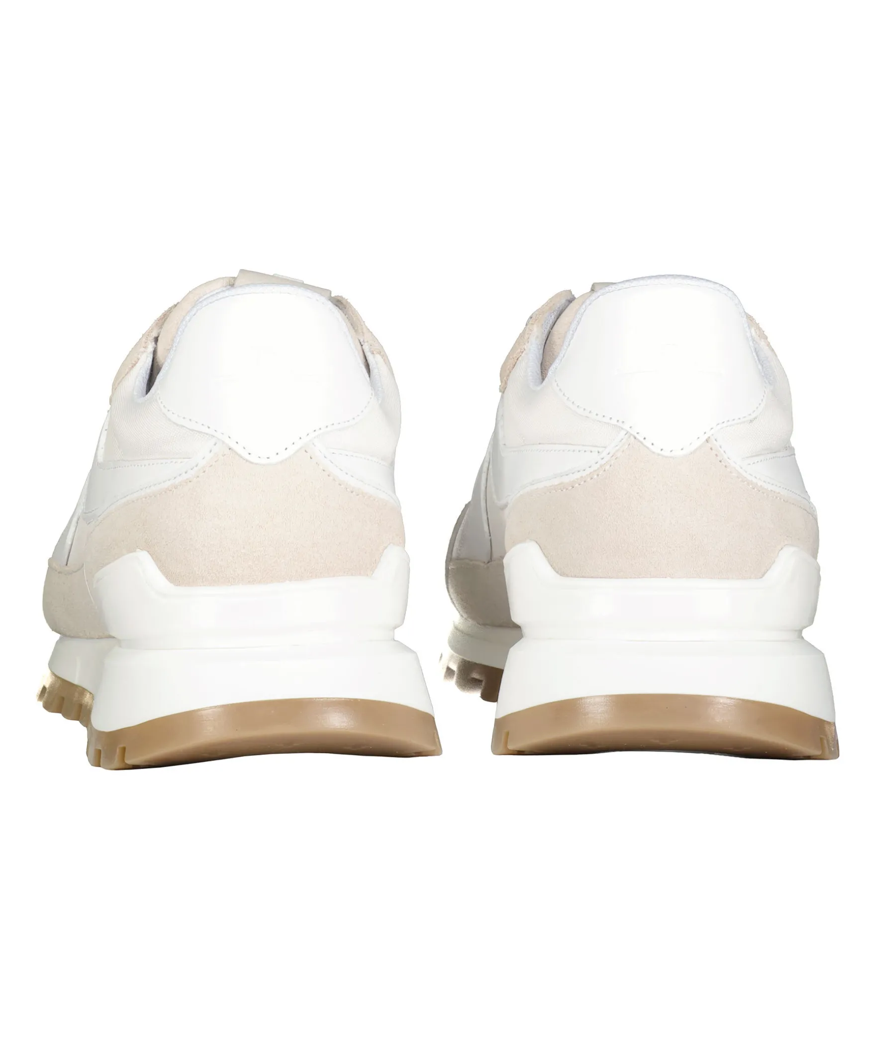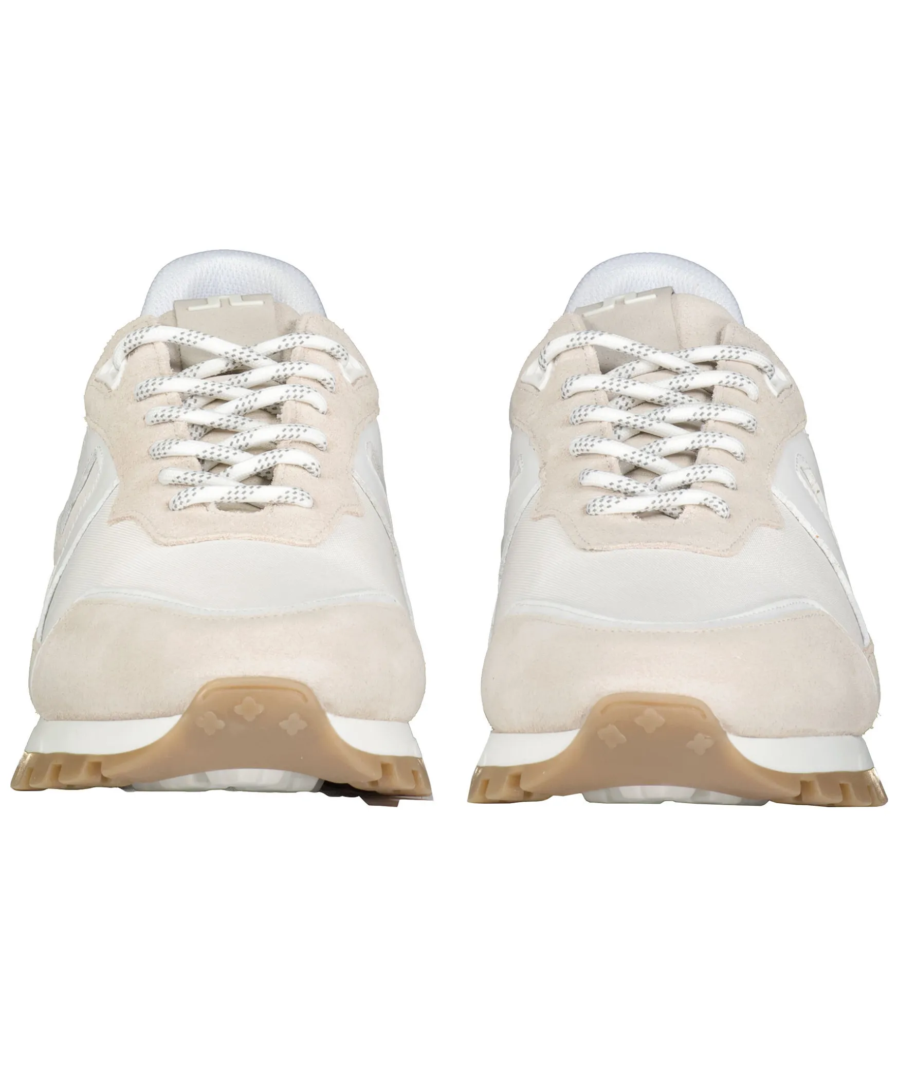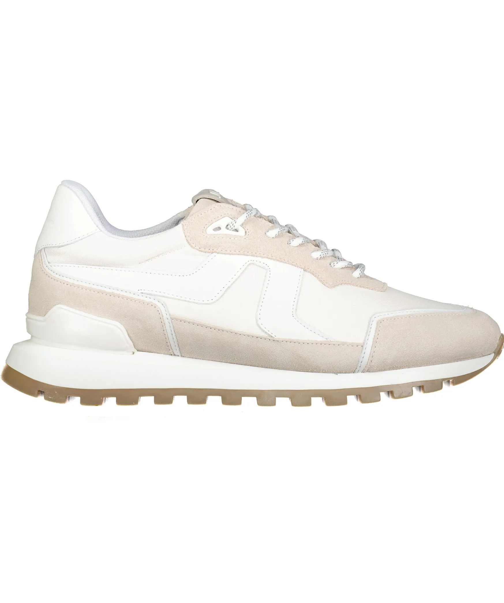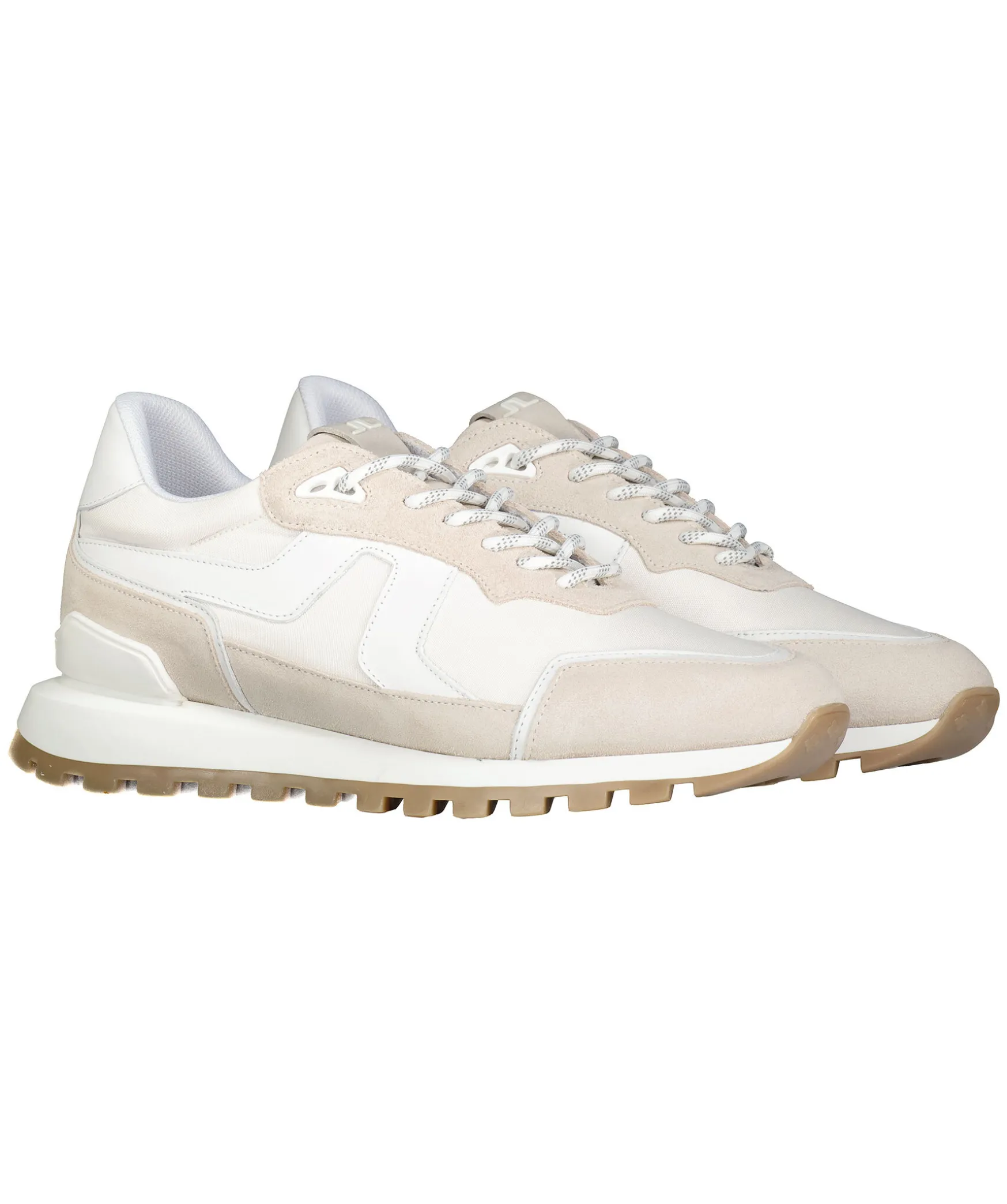 Beiga Sneakers Fran J. Lindeberg. Vita Detaljer, Tillverkade I Lader Och Textil Med Grov Sula I Gummi.