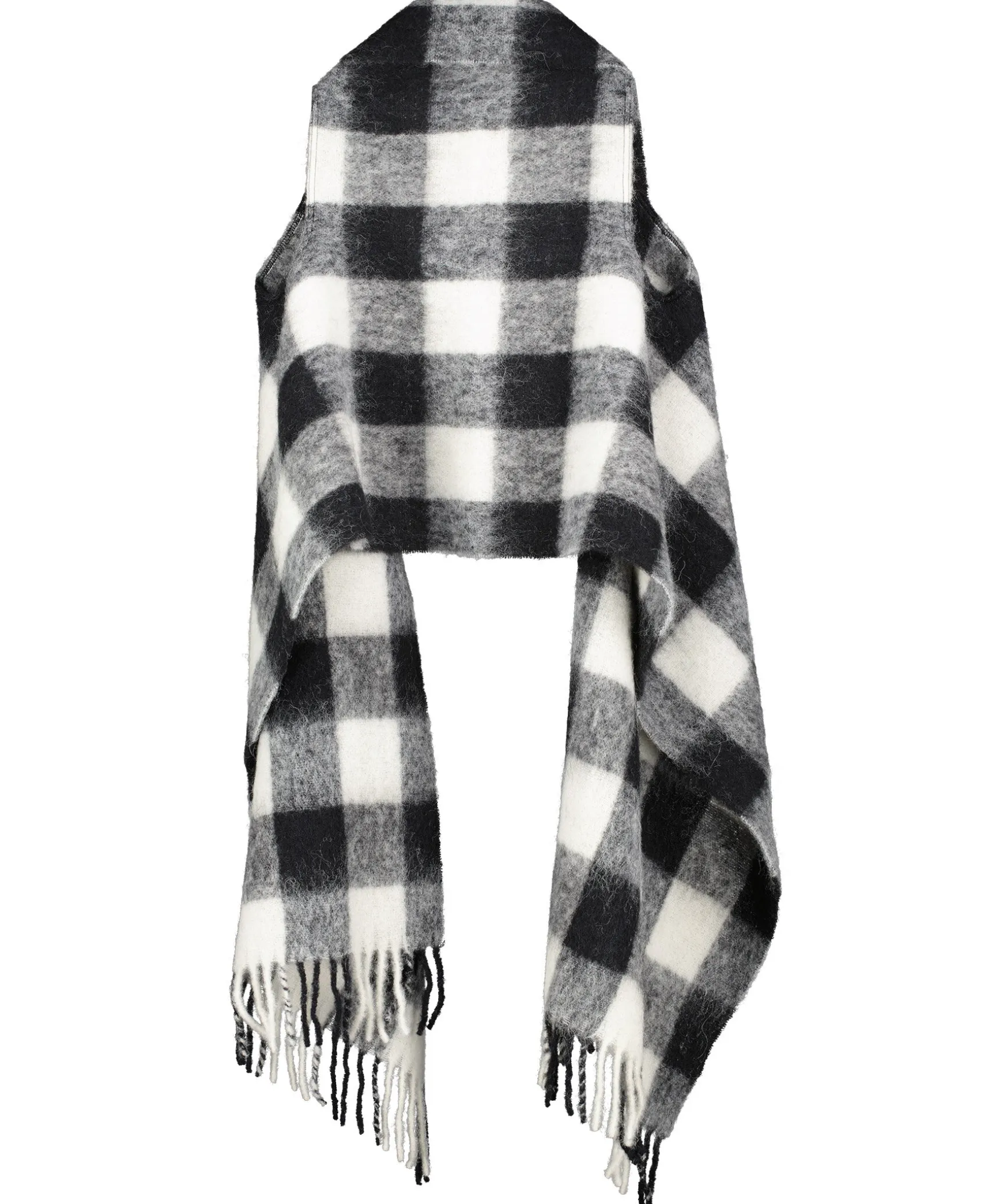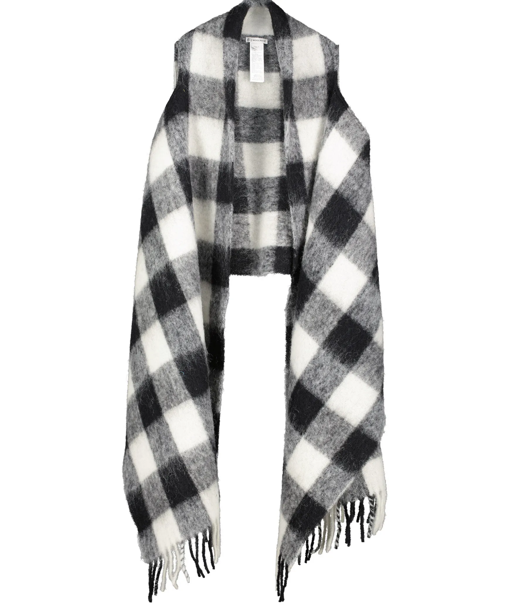 Vit Och Svart Stickad Cape/Scarf Fran Woolrich. Fransar Nedtill. Tillverkad I Ullblandning.
