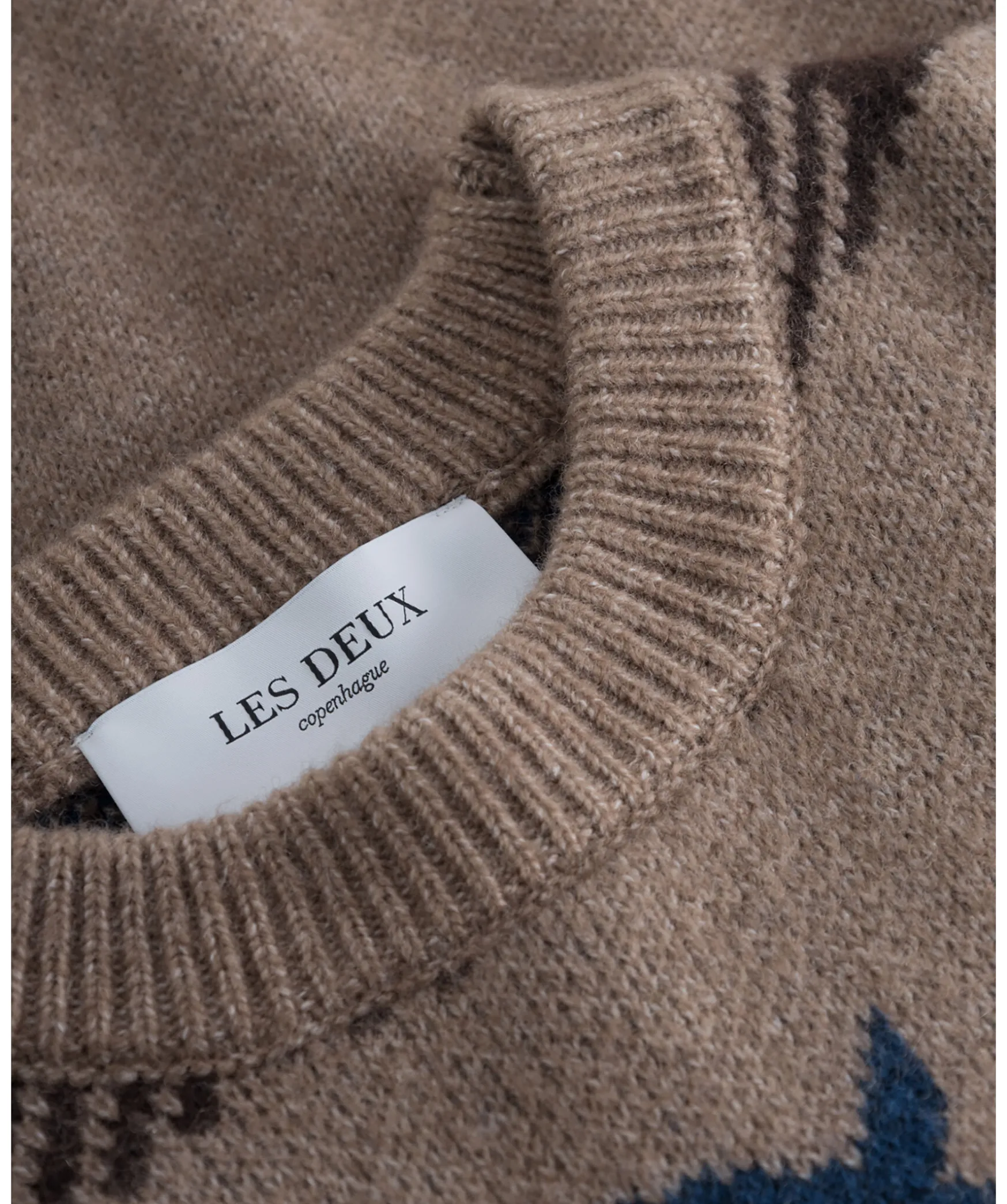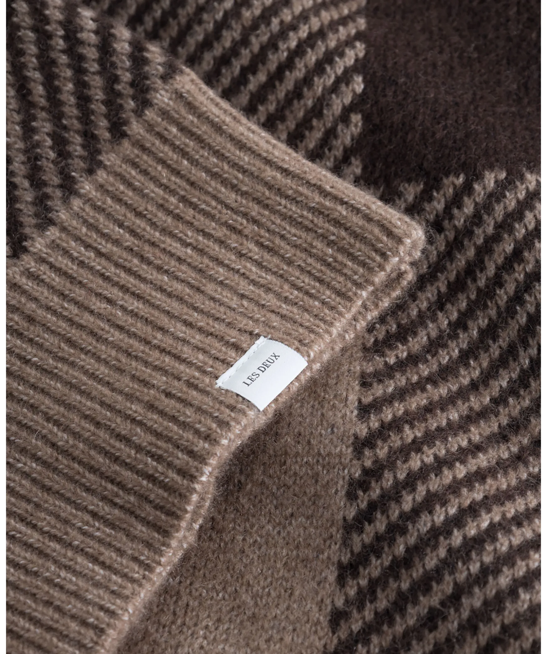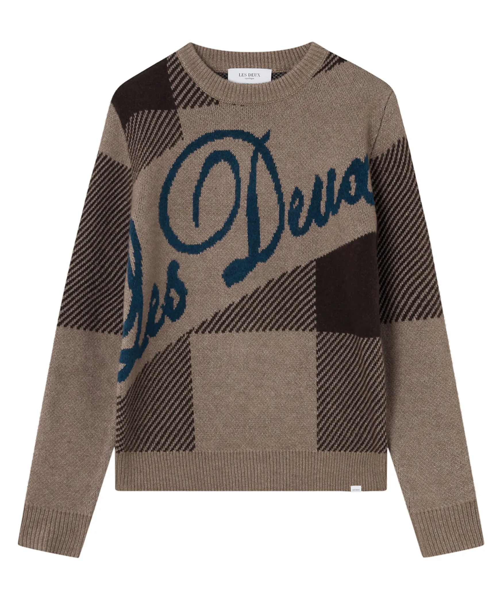 Stickad Troja I Brunt Fran Les Deux. Stor Logotyp Over Brostet I Blatt. Trojan Har Ett Rutigt Buffel Monster. Ribbstickade Muddar Vid Halsring, Arm- Och Plaggslut. Gjord I En Ullblandning.