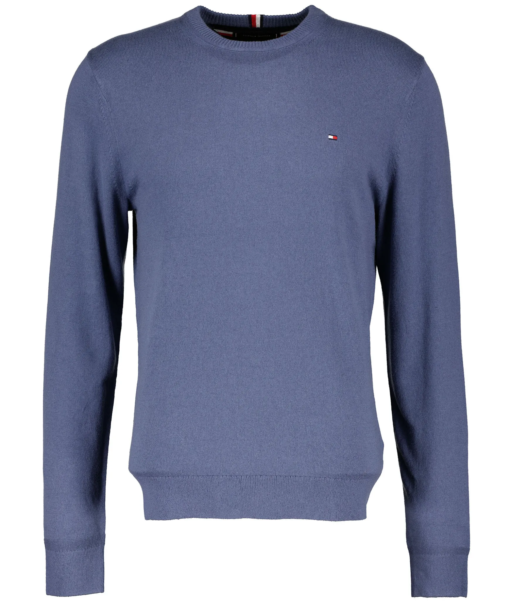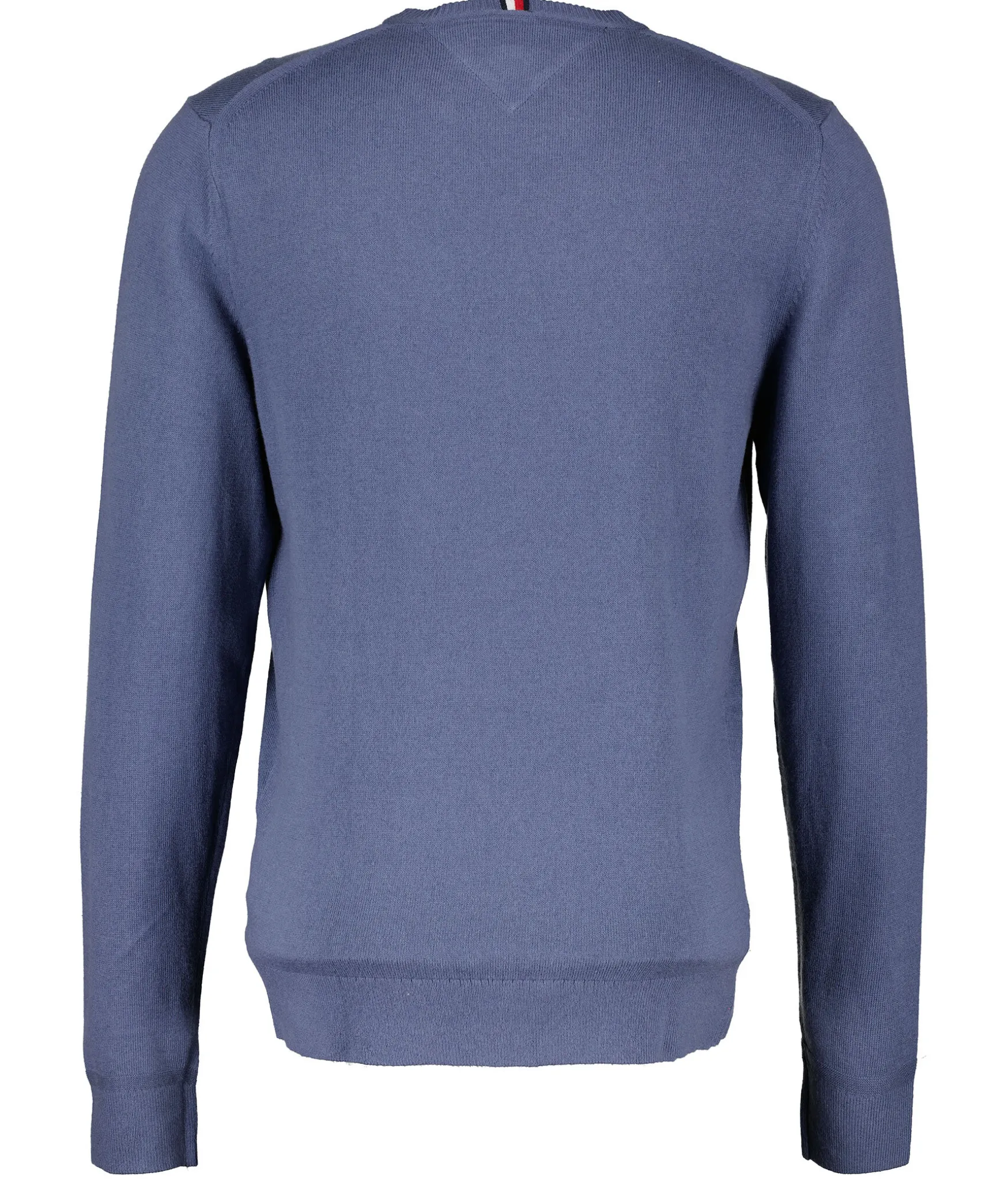 Indigofargad Stickad Troja Fran Tommy Hilfiger I En Kashmir Och Bomullsblandning. Ljungad Stickning, Rundad Halsringning Och Ribbstickade Krage, Arm- Och Plaggslut. Broderad Tommy Hilfiger Flagga Pa Brostet. Normal Passform.