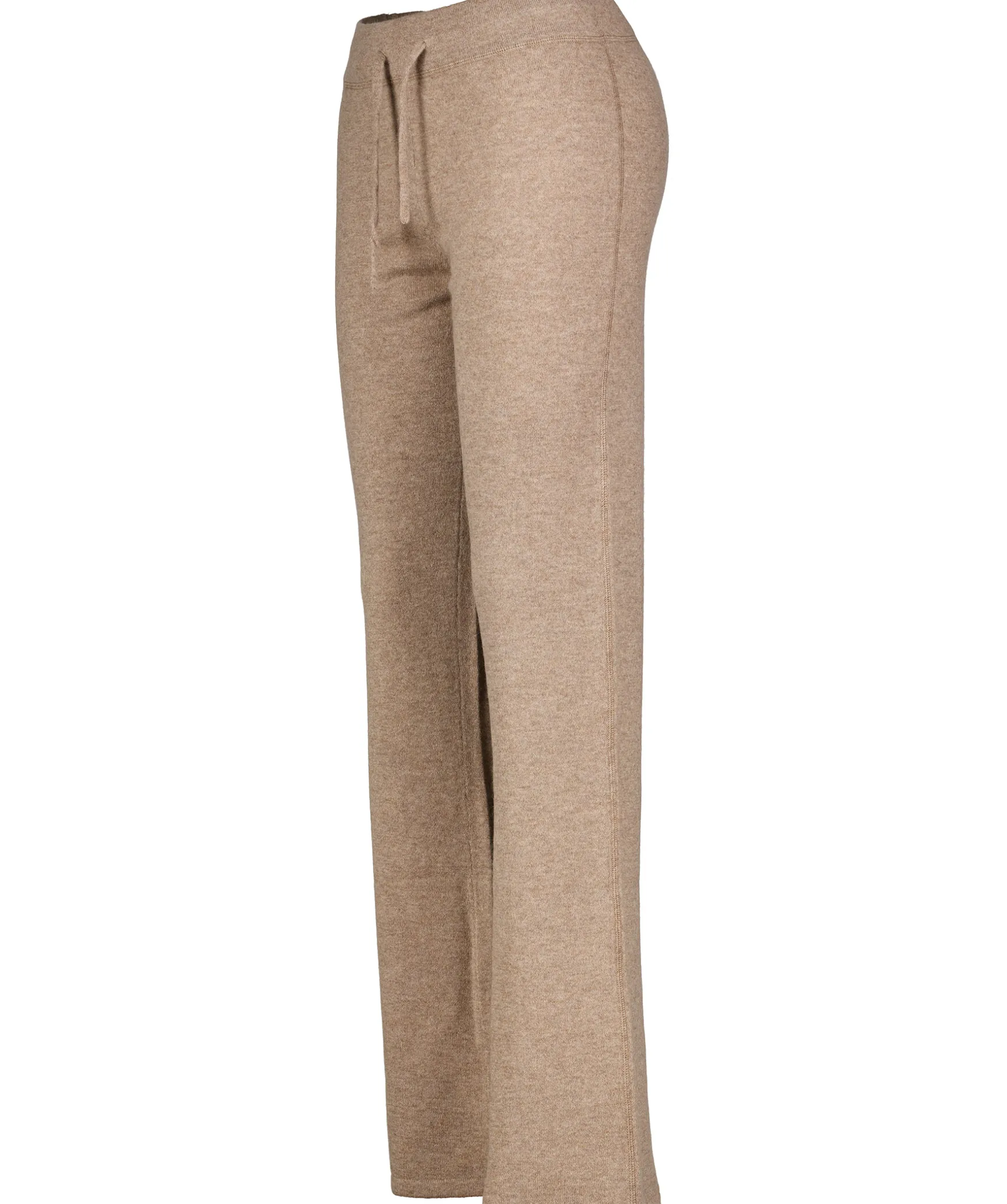 Morkbeigea Mjukisbyxor I 100% Kashmir Fran Davida Cashmere. Raka Ben Som Svanger Ut Lite Mot Benslutet Samt Mudd Och Dragsko Med Snore I Midjan.